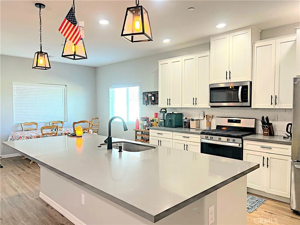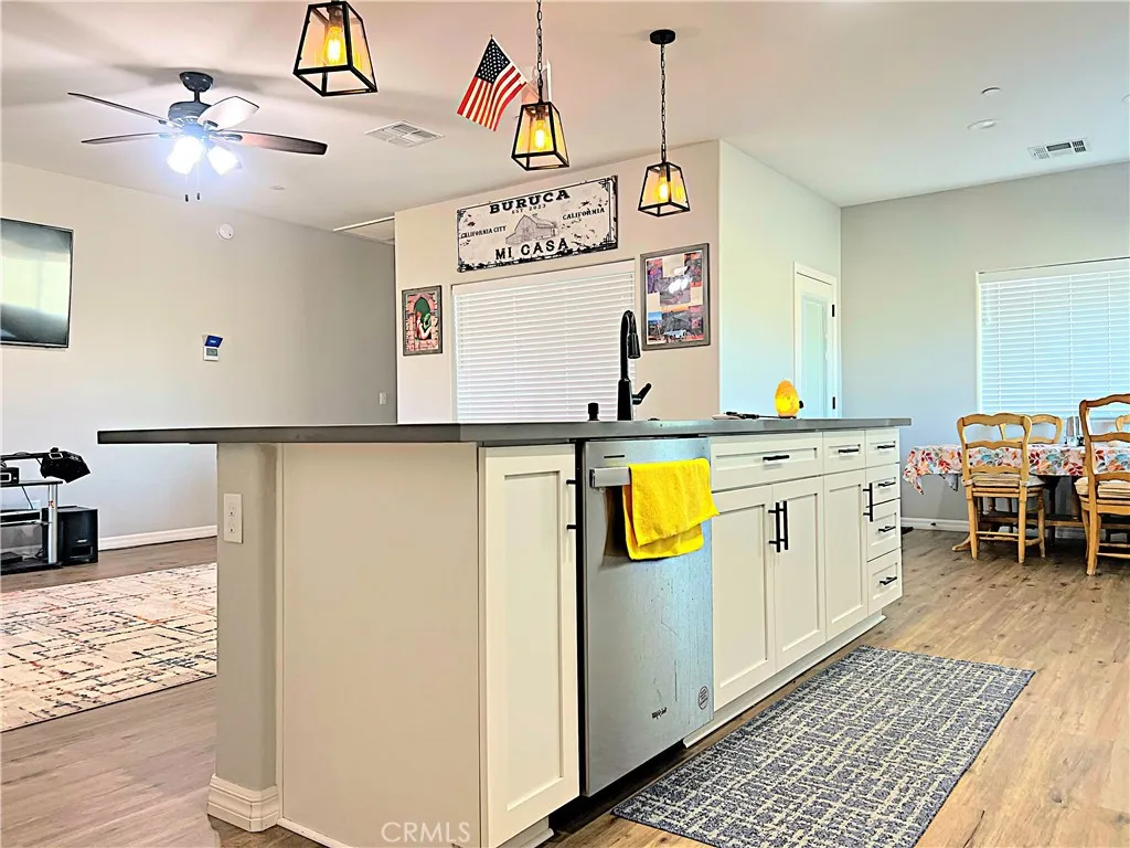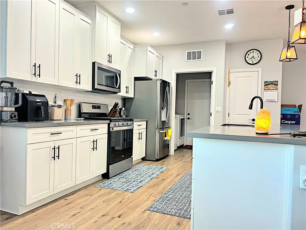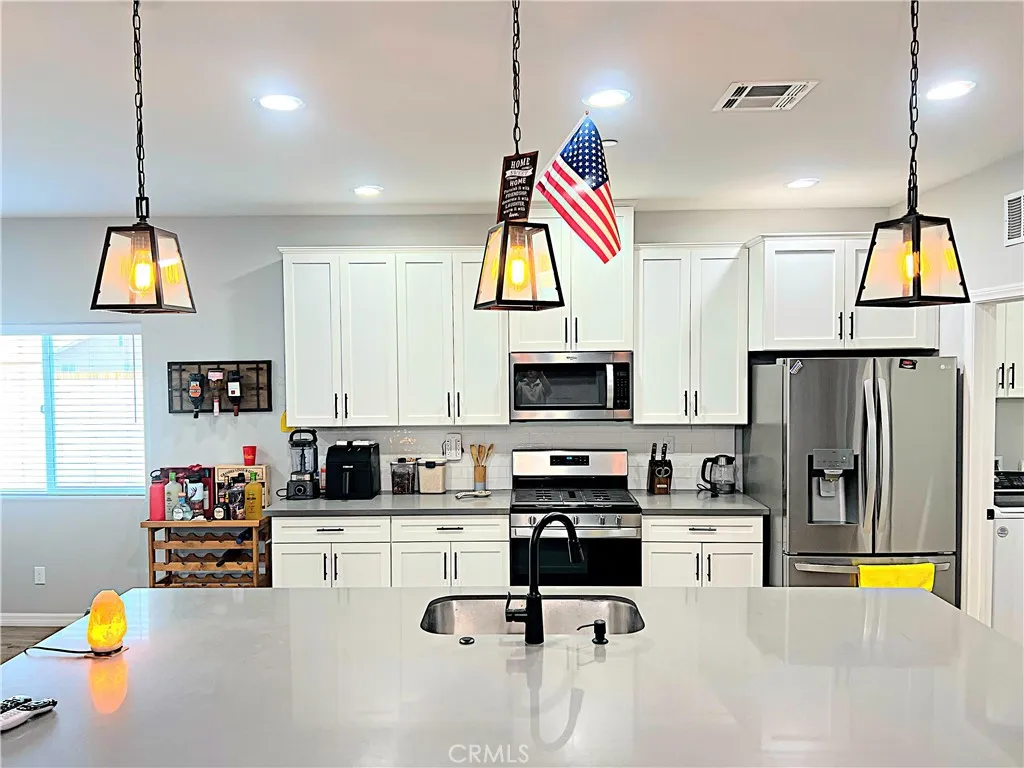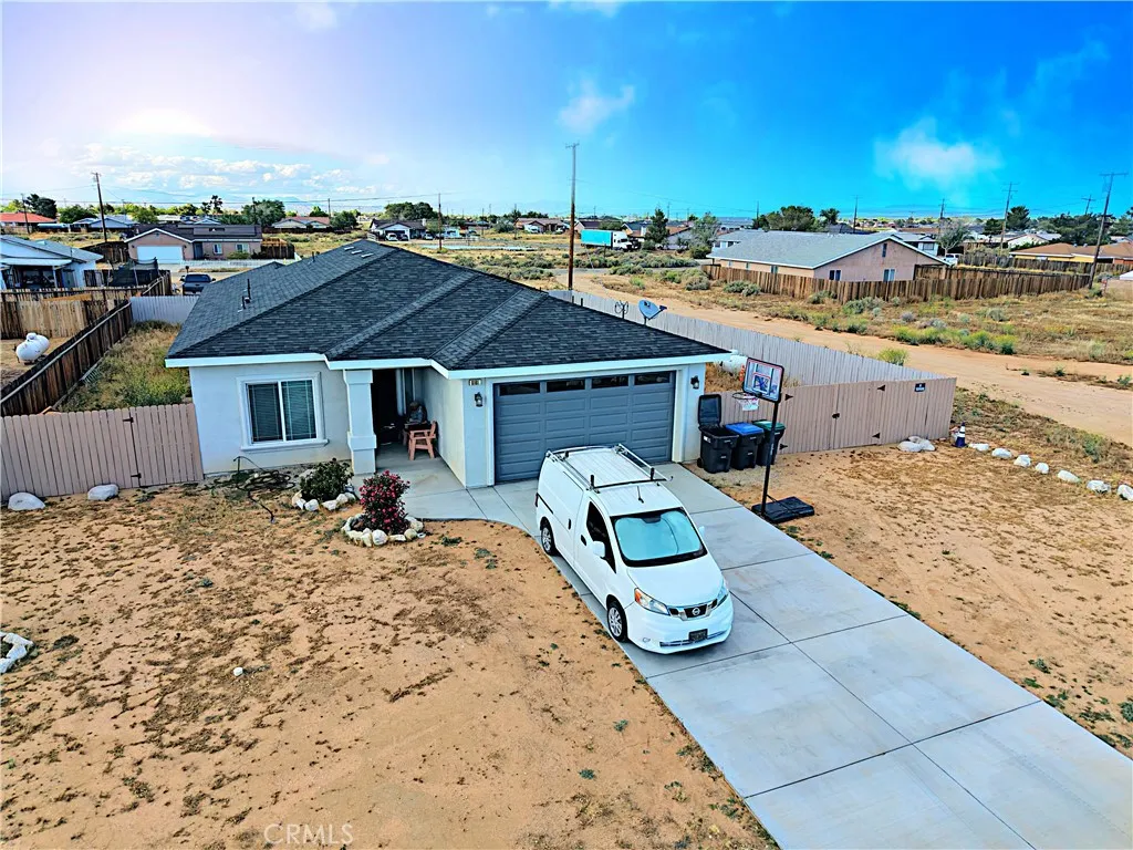 Welcome to California City — the Land of the Sun — where modern living meets comfort and style in this beautifully built 2023 single-story home. Step inside to discover a thoughtfully designed layout featuring three cozy bedrooms and two full bathrooms, all enhanced by neutral interior tones that create a warm and inviting atmosphere. The open-concept kitchen is the heart of the home, showcasing sleek quartz countertops, modern recessed lighting, and a seamless flow into the family room—perfect for entertaining guests or enjoying everyday living. Vaulted ceilings elevate the space, adding a sense of openness and natural light throughout the main living areas. Outside, the spacious backyard offers endless possibilities for outdoor gatherings, relaxation, or even customizing your dream entertainment space. There’s also potential RV access, adding extra flexibility and convenience. Energy efficiency is a bonus with solar panels installed on the roof, helping you stay cool and save on electricity during those sunny California summers. Ideally located and move-in ready, this home offers the perfect blend of modern features and everyday comfort. Don’t miss out—call today for more details