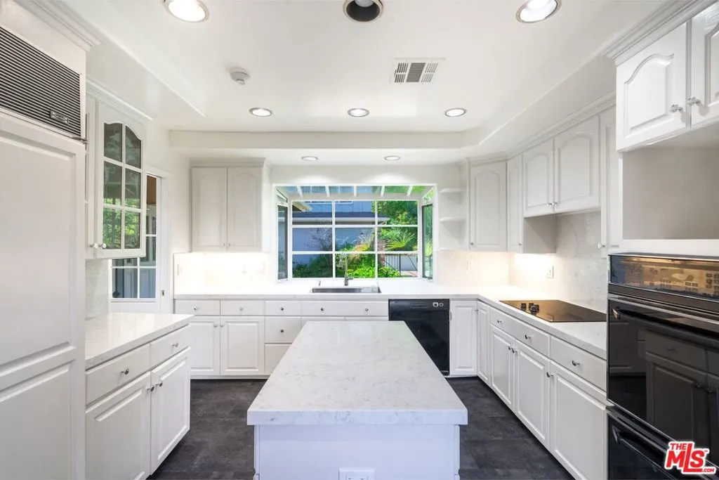 Welcome to 4645 Petit Ave, an exceptional hilltop retreat in the coveted Encino neighborhood.Perched atop a private hill and set behind a secure gate with a long, inviting driveway, this 4-bedroom, 3-bathroom home offers a rare blend of seclusion, breathtaking views, and effortless access to the best of Southern California living. Discover the tranquility of living above it all while being just moments from Ventura Blvd's vibrant dining and shopping scene and with convenient freeway access to the rest of Los Angeles.Step inside to be greeted by the warm elegance of beautiful wood floors that flow throughout the main living areas, creating a rich and inviting ambiance. The remodeled kitchen is the heart of the home, combining modern luxury with practical function. Featuring striking quartz countertops, a generously sized center island perfect for meal prep or casual gatherings, and sleek luxury vinyl tile flooring, this space exudes both style and substance. A stunning bay window over the sink bathes the room in natural light while framing serene views of the front yard, adding a touch of charm to your daily routine. High-end amenities include a new electric cooktop, a large paneled Sub-Zero refrigerator, and two spacious pantries that offer ample storage and organization.The thoughtfully designed layout offers both openness and privacy, catering to a variety of living and entertaining needs. The formal dining room seamlessly connects to the expansive living room, ideal for hosting memorable dinner parties or enjoying quiet evenings at home. The adjacent family room, framed by large windows overlooking the front yard, is bathed in natural lightperfect for relaxed, everyday living or casual get-togethers.Downstairs, you'll find three generously sized bedrooms and two beautifully appointed bathrooms. The Jack and Jill bathroom, complete with a luxurious tub and spa jets, ensures comfort and convenience. One of the bedrooms is truly a standout, featuring elegant French doors that open to a private outdoor space-an idyllic spot for morning coffee or winding down at sunset.Upstairs, discover a versatile space that adapts to your lifestyle. Whether envisioned as a serene primary suite, an inspiring office, or a vibrant recreation room, this expansive bedroom offers sweeping views of treetops and city lights, capturing the beauty of hilltop living. The large walk-in closet with custom built-in organizers ensures functionality while maintaining an uncluttered aesthetic. This flexible space provides endless possibilities for relaxation, productivity, or entertainment.Additional features include central A/C and heat for year-round comfort, dual water heaters for convenience, and a secure buzzer system at the gated entry to ensure peace of mind. Step outside to the inviting brick side patio, an ideal setting for outdoor dining, BBQs, or simply soaking up the Southern California sunshine in your own private sanctuary.Living at 4645 Petit Ave means enjoying the best of both worlds-a private retreat with panoramic views and an unbeatable location just moments from Ventura Blvd's renowned restaurants, trendy boutiques, and essential conveniences. With parks, golf courses, and quick freeway access nearby, your new home strikes the perfect balance between tranquility and connectivity.This unique property, with its prime hilltop position and adaptable living spaces, is a rare find in the heart of Encino. Don't miss your chance to experience this one-of-a-kind residence schedule your private tour today and discover the lifestyle that awaits you at 4645 Petit Ave!