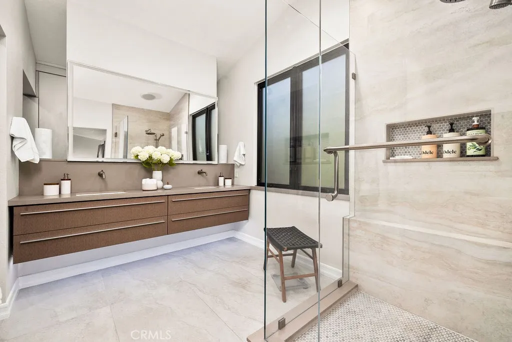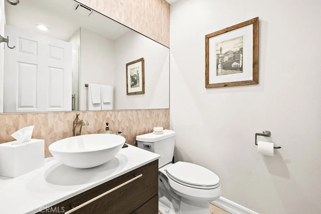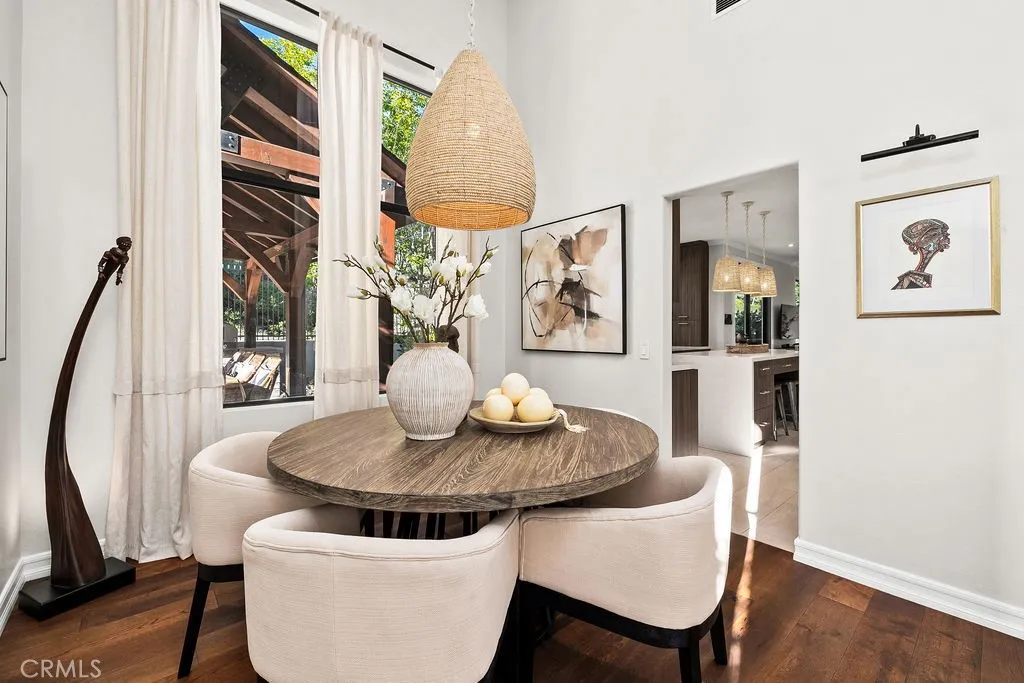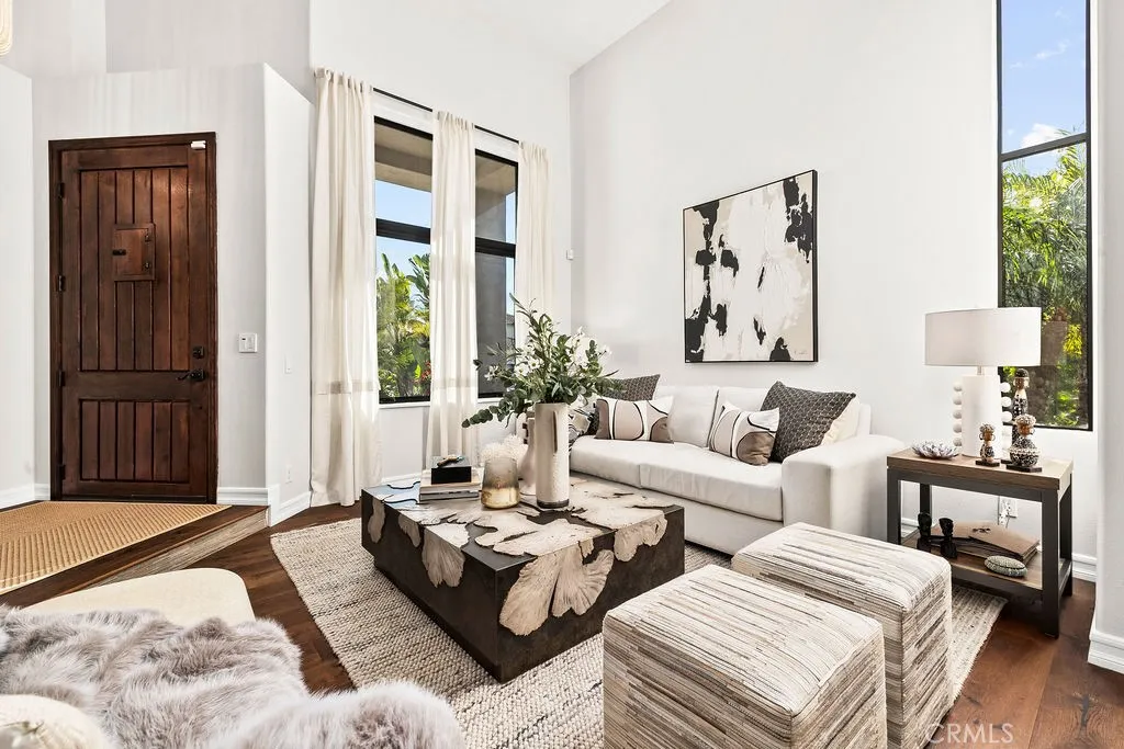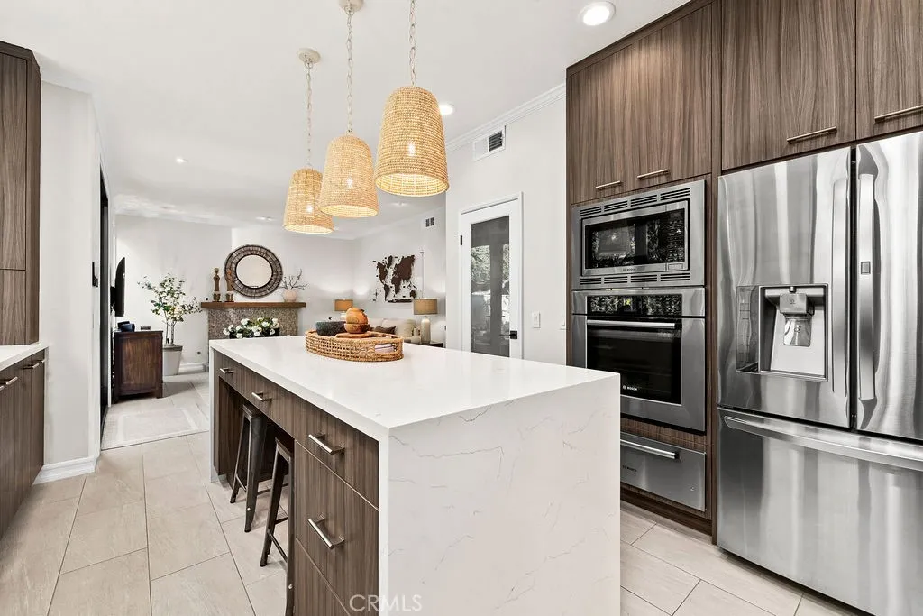 Look no further—this extraordinary luxury residence nestled on a 7500 sq ft lot on a quiet cul-de-sac in the prestigious hillside enclave of Foothill Ranch is a true statement of refined living. Meticulously reimagined with elevated design and premier finishes, this home offers an unparalleled blend of sophistication, comfort, and resort-inspired elegance. At the heart of the home, the designer chef’s kitchen is a masterpiece, appointed with a full suite of Bosch appliances, including a built-in coffee system and wine refrigerator, complemented by sleek quartz countertops, custom cabinetry, and a center island with dual sided seating. A bespoke, temperature-conscious wine display elegantly tucked beneath the staircase adds a striking architectural focal point. Every detail has been thoughtfully curated, with rich solid wood flooring throughout the home. Step outside to a private resort-caliber backyard retreat designed for the most discerning entertainer. Created for elevated outdoor living, the backyard is artfully divided into three distinct entertainment spaces, creating the ultimate private resort experience. Enjoy evenings gathered around the expansive seating area with a stone fire pit, perfect for intimate conversations under the stars. Host unforgettable dinners beneath a beautifully crafted covered wood structure, boasting a show stopping chef-caliber outdoor kitchen—featuring a premium Coyote BBQ, dual side burners, cocktail bar, wine and beverage refrigeration, ice maker, and a handcrafted pizza oven—designed to impress. Unwind poolside beside the sparkling resurfaced PebbleTec pool, recently enhanced with new coping, designer tile, and a saltwater chlorination system. Or, end your day soaking in the spa while taking in breathtaking sunset views, offering a daily escape that feels like a five-star retreat. Guests will appreciate the versatile main-level bedroom, (currently styled as an office)—ideal for both guests or multi-generational living. The primary suite captures tranquil backyard views and is complemented by a spa-inspired bath and an expansive wraparound closet. Two additional generous sized bedrooms and remodeled bath complete the upper level. Significant capital improvements include a new HVAC system, full PEX re-pipe, double-insulated Milgard windows, insulated garage doors, and an upgraded laundry room that reflects both style and functionality. This is more than a home—it is a luxury lifestyle experience!