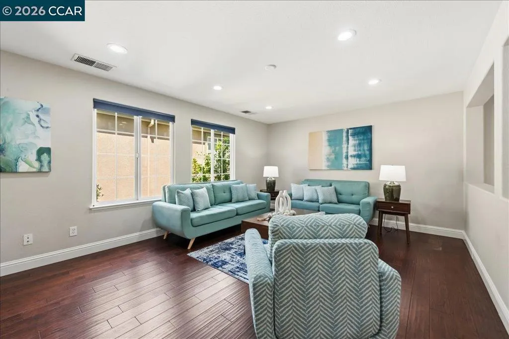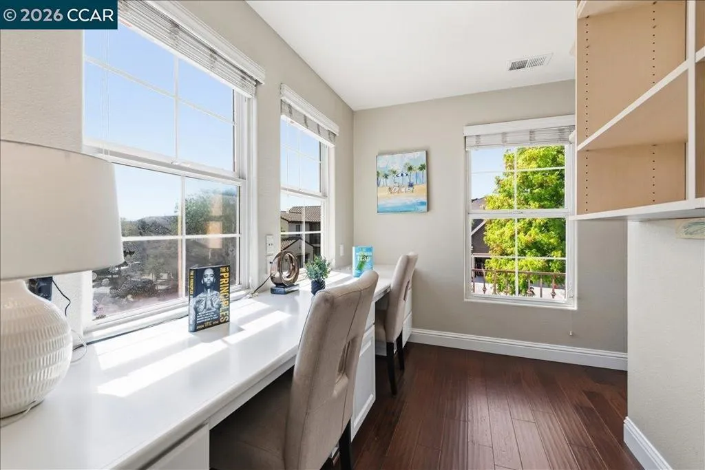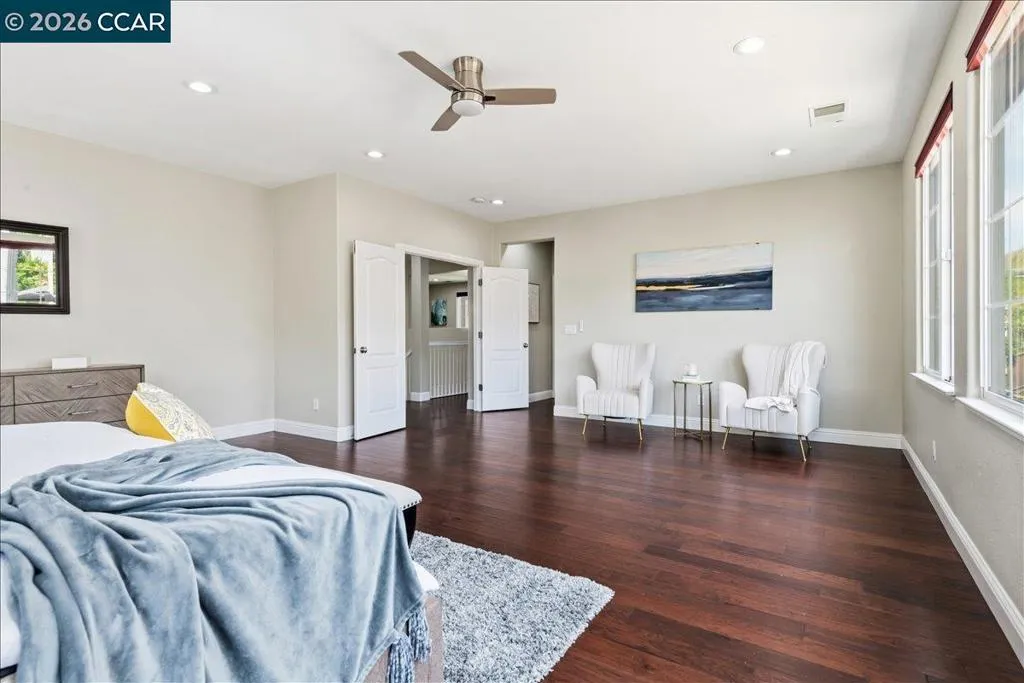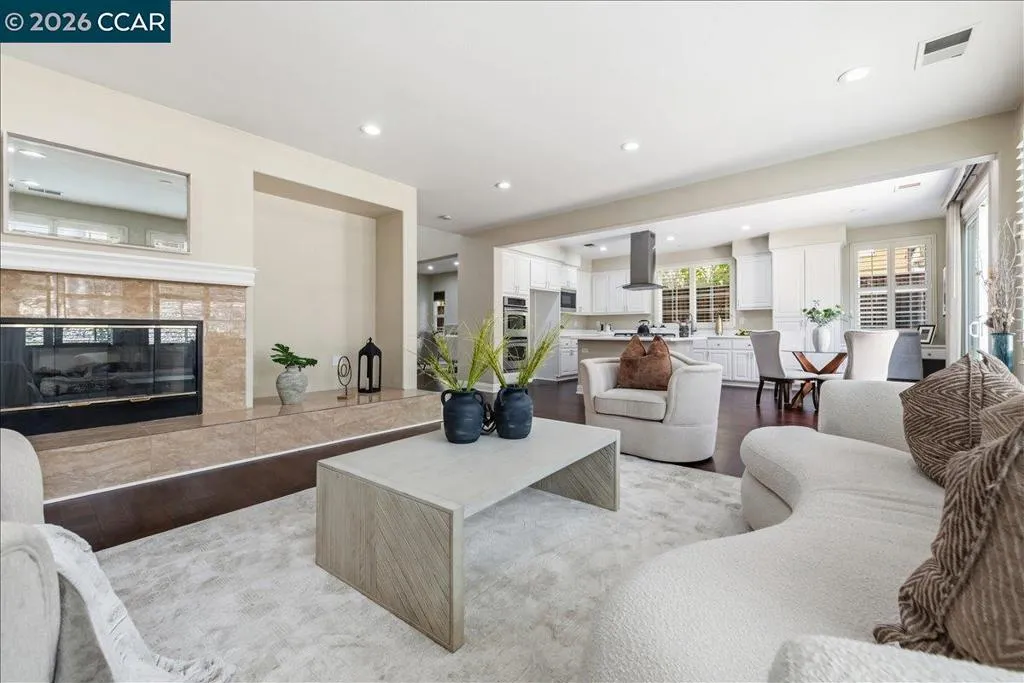 Welcome to your Windemere sanctuary just a step away from Bellingham Square Park—where luxury & modern efficiency meet in one of San Ramon’s most coveted neighborhoods. From the moment you step inside, 10 feet ceilings & designer touches create an atmosphere of sophisticated yet effortless living.Updated Hardwood floors, recessed lights & a stunning custom tile surround that anchors the media area in the family room. At the heart of the residence, the reimagined chef’s kitchen w/ sleek new countertops, a New Gas cooktop, New Sink & Hood, flowing naturally into the living spaces so you never miss a moment while entertaining. A full bedroom w/ Murphy bed, Desk & bathroom on the main level provide a retreat for guests or multi-generational living. Escape upstairs to a Master suite designed for relaxation. Enjoy Versatile large loft as vibrant media or retreat, a dedicated built-in tech center with balcony for a home office, & Space for Library. Most Bedroom closets w/built-in closet organizers. Embracing the future of comfort, this home comes equipped w/ solar panels. A low-maintenance yard for relaxing or entertaining. 3-cars tandem garage w/ Custom cabinets offer extra space. Best of all, you’re just a short stroll away from the Award-Winning Hidden Hills, Dougherty Valley High, Windemere Middle, Shopping & Parks. A Must See!