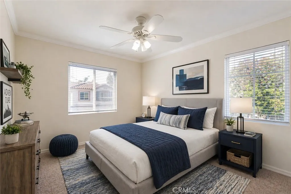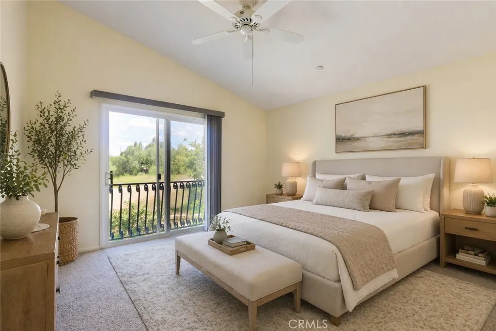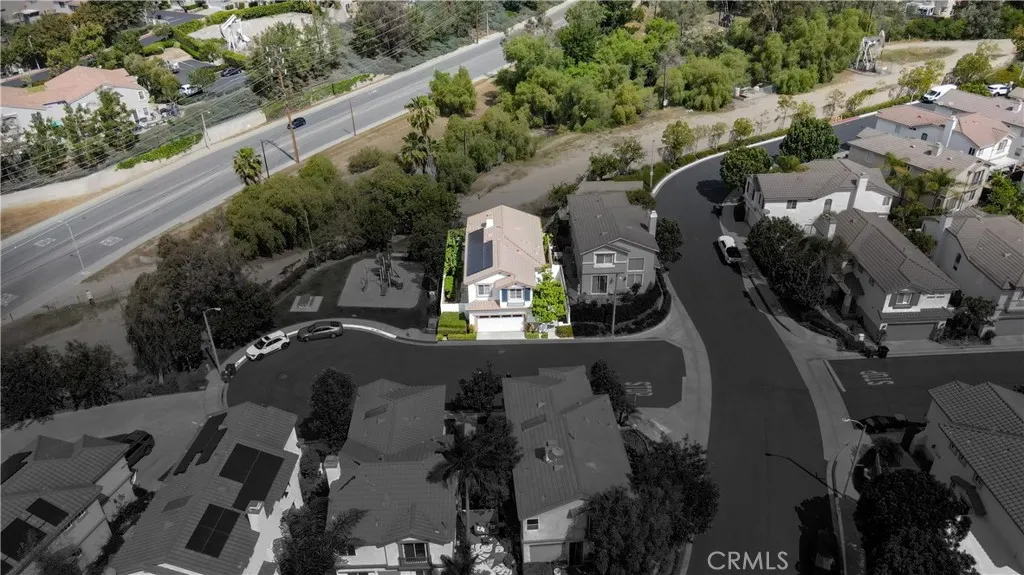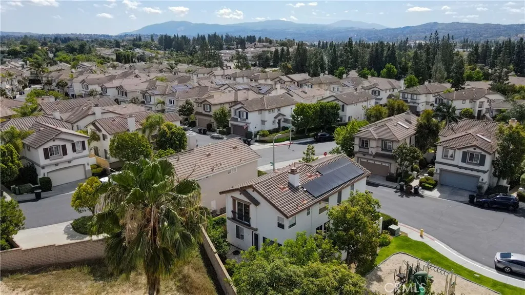 Beautifully maintained home for sale, built in 1998, located in the highly desirable gated Mariposa Lane community of Placentia, CA. This detached PUD residence offers 3 bedrooms, 2.5 bathrooms, and approximately 1,715 square feet of living space, including a fully paid off Tesla Solar System. Although it is classified as a condo, it gives the feel of a single-family detached home. Enter through a private courtyard into a light-filled interior featuring an open floor plan and dramatic vaulted ceilings. The main level includes a living room with a dining area and a family room, separated by a cozy dual-sided fireplace, creating an ideal space for entertaining. The upgraded kitchen shows new quartz countertops, a new stove, and direct access to the backyard. Additional highlights include a newly painted interior, recessed lighting throughout, a spacious powder room, and an attached 2-car garage with built-in storage and cabinets. Upstairs, all bedrooms provide privacy and comfort. The primary suite features scenic mountain views, a large walk-in closet, and an ensuite bathroom complete with a sunken tub, walk-in shower, and dual sink vanity. An individual laundry room makes life easier. The backyard is perfect for entertaining, offering ample space and multiple fruit trees. Ideally situated at the end of a cul-de-sac next to a play area, this home enjoys added privacy with no rear neighbors and is conveniently located near top-rated schools, shopping, dining, and with easy access to the 91 and 57 freeways. Community amenities include a swimming pool and playground. Low HOA dues and no Mello Roos.
