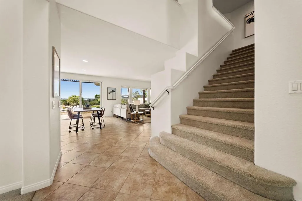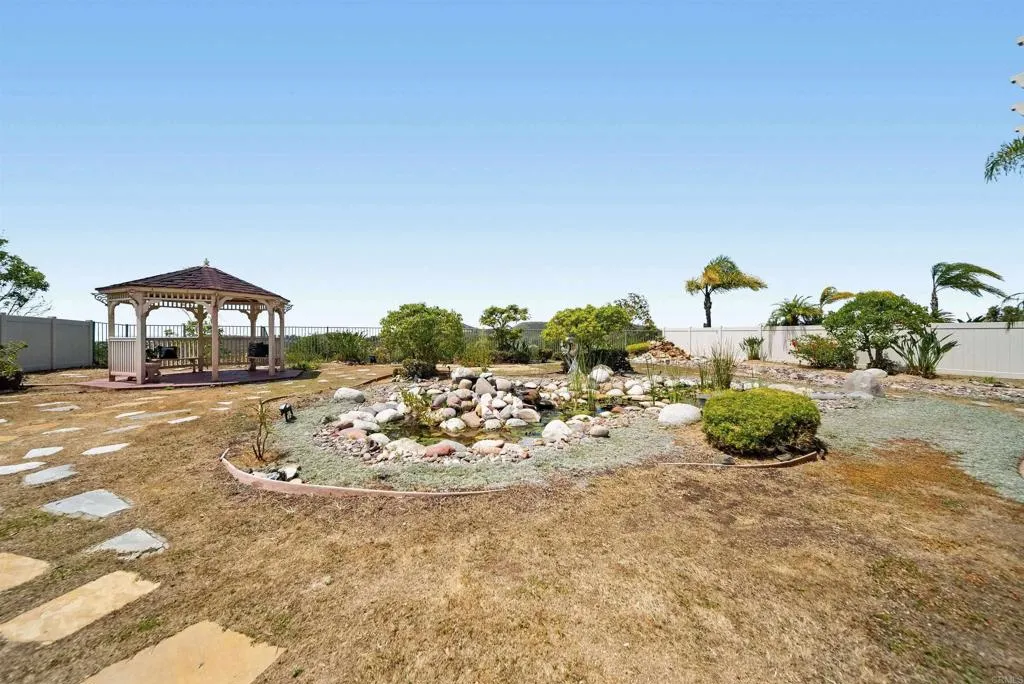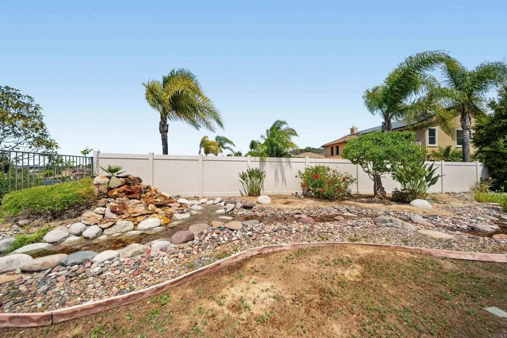 Rare opportunity to own an exceptional home with owned solar on a premium lot where privacy, space, and stunning views come together. Step inside where abundant natural light enhances the spacious open floor plan designed for both everyday living and convenience. The main level features a grand entry that opens to formal living and dining areas, a chef’s kitchen overlooking the oversized family room and picturesque views, plus a sought after first floor bedroom with a full bathroom that is ideal for guests or multigenerational living. Upstairs offers a versatile loft, two generously sized secondary bedrooms, and a tranquil primary suite complete with a private balcony to take in the panoramic views. Tucked away on a quiet cul-de-sac in the coveted Olive Hills Estates, the true highlight of this residence is the extraordinary oversized backyard with no rear neighbors and sweeping mountain views. This private oasis features custom ponds, cascading waterfalls, mature landscaping, fruit trees, and expansive open space that offers a rare sense of serenity with endless possibilities for a future pool, outdoor kitchen, or additional entertaining areas. Additional highlights include a 3 car garage and long driveway with ample parking. Ideally located near parks, scenic trails, shopping, dining, top-rated schools and colleges, and all the best of the thriving San Marcos community.