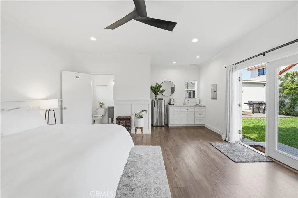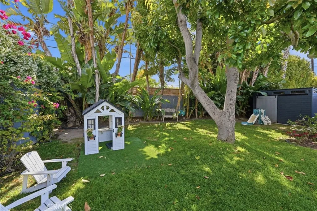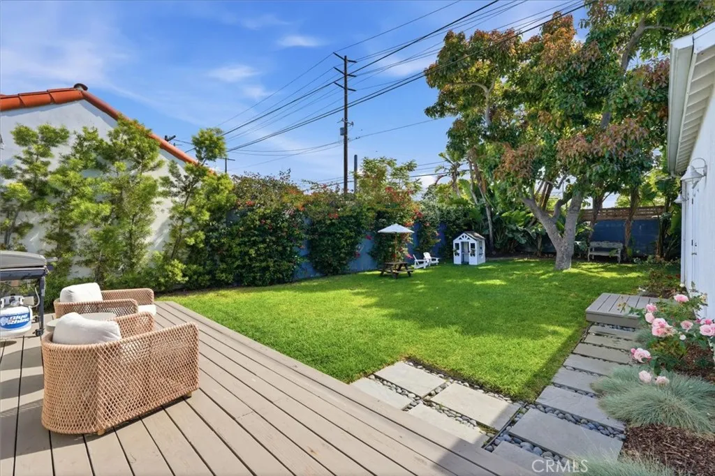 Filled with natural light and an easy coastal charm, this single-story home welcomes you in with an open floor plan, original hardwood floors, and timeless arched architectural details that give the space warmth and character. The living, dining, and kitchen areas flow seamlessly together and out to an oversized backyard deck, creating a layout that feels both connected and effortless, whether it’s a quiet morning at home or a full evening of entertaining. Step outside and everything softens. The backyard has an immediate sense of calm, with a lush, private setting that invites you to slow down and stay awhile. A large grassy lawn, mature avocado tree, and vibrant bougainvillea frame the space, offering the perfect backdrop for weekend gatherings, kids playing barefoot in the grass, or relaxed afternoons that turn into long, golden evenings. Inside, the home continues to feel bright, open, and thoughtfully laid out. Three well-sized bedrooms sit along the hall, leading to a spacious primary suite designed as a quiet retreat, complete with a large walk-through closet and sliding glass doors that bring in beautiful natural light. Adding to the flexibility of the property, a detached, remodeled ADU creates a space that can evolve with you, ideal for guests, a home office, or a creative studio. A full-size finished two-car garage and additional storage shed provide ample space for parking, storage, and everything that comes with an active coastal lifestyle. Set in a location that makes everyday living easy, you are just moments from the beach, local dining, shopping, and essentials like Trader Joe's. This is a home where comfort, charm, and lifestyle come together, offering a space that feels as good as it looks and lives even better over time.