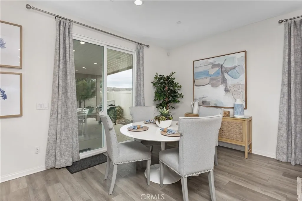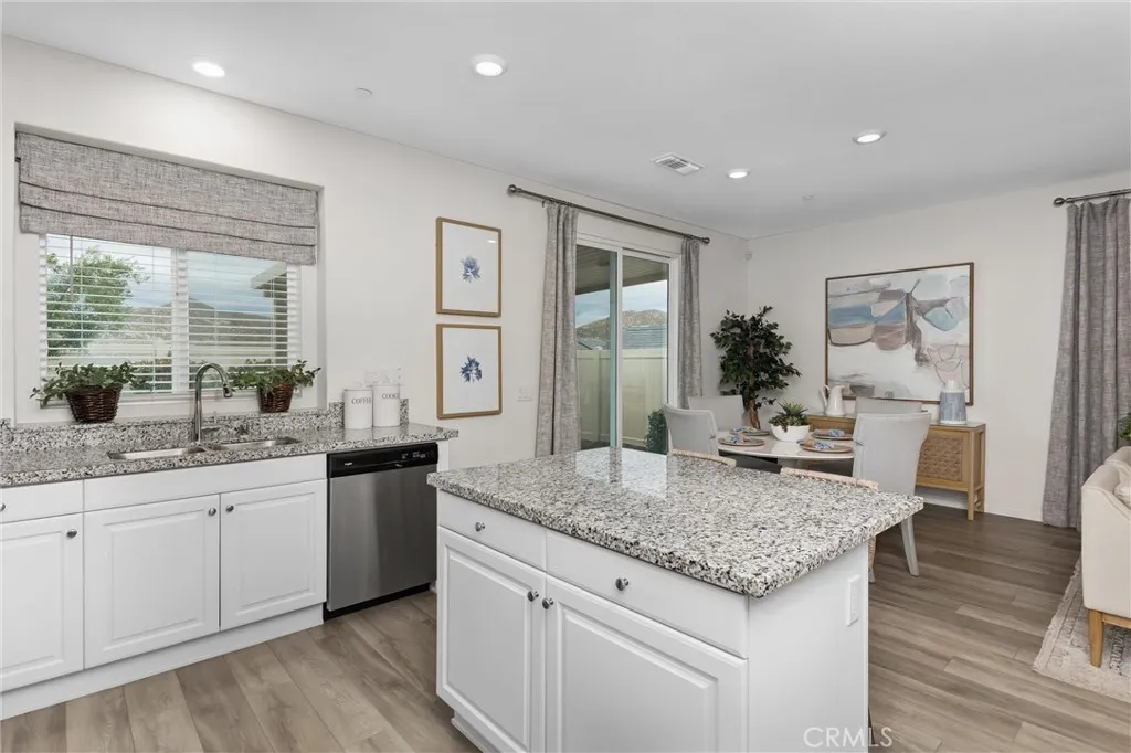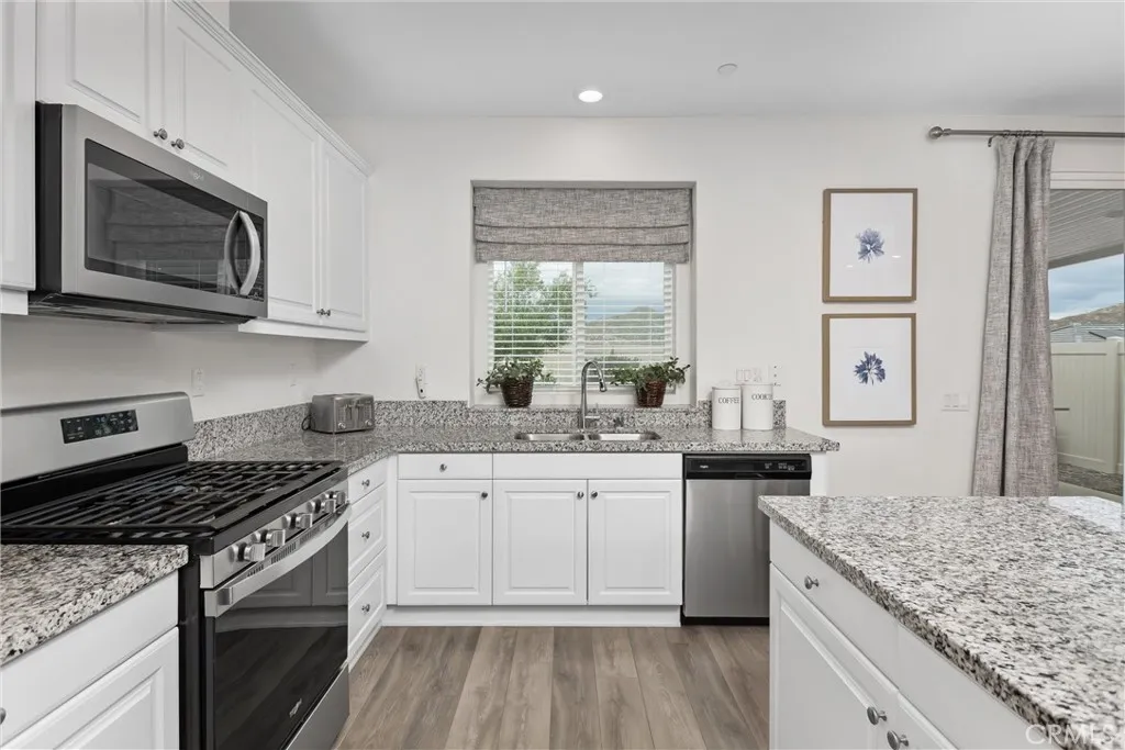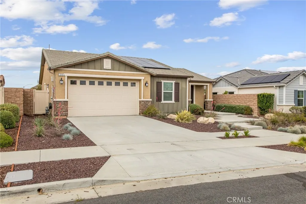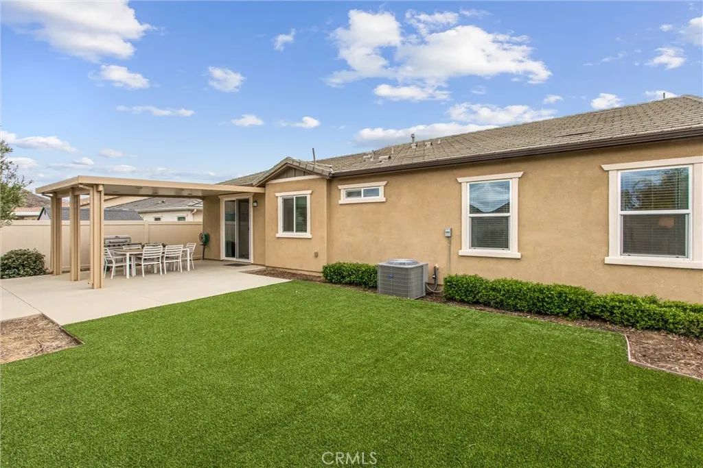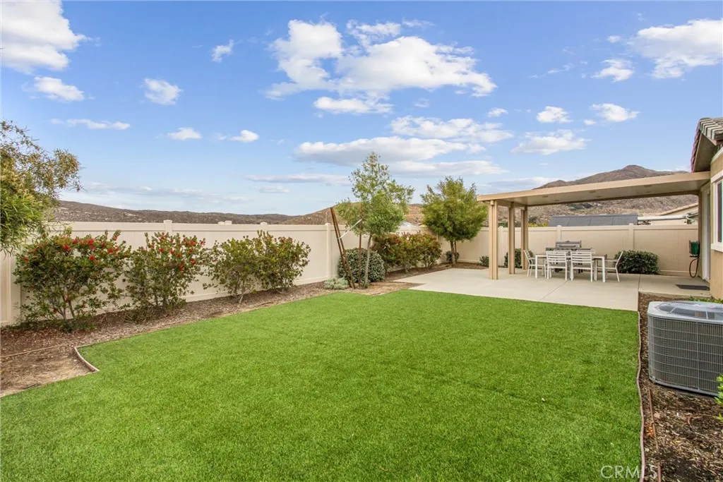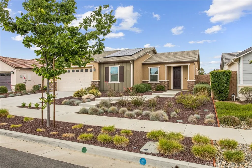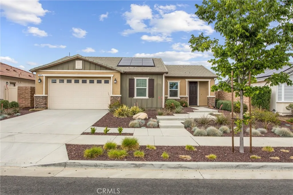 Welcome to 516 Farmstead St in the highly desirable McSweeney Farms community of Hemet—offered fully furnished and truly move-in ready! From the moment you arrive, you’ll appreciate the great curb appeal with well-designed, low-maintenance landscaping featuring decorative rock and drought-tolerant plants. Inside, this beautifully maintained home shows like a model, complete with thoughtfully selected décor, window coverings throughout, and all the extras included—refrigerator, washer, dryer, and even home utensils. The open-concept layout features durable vinyl plank flooring in the main living areas and plush carpet in the bedrooms. The spacious kitchen flows seamlessly into the family room, showcasing granite countertops, white cabinetry, and stainless steel appliances—perfect for both everyday living and entertaining. The primary suite offers a private retreat with a walk-in closet, dual vanities, and a walk-in shower. Additional highlights include a separate laundry room, whole house fan, smart thermostat, tankless water heater, and a two-car garage with epoxy flooring. Energy efficiency is a plus with 9 solar panels (PAID FOR) helping to offset utility costs. Step outside to a low-maintenance backyard designed for easy living, featuring a concrete patio, Alumawood patio cover with electrical for lighting, artificial turf, vinyl fencing, and peaceful mountain and hill views. Whether you're looking for a primary residence, second home, or investment opportunity, this turnkey property checks all the boxes—just bring your suitcase and settle in!