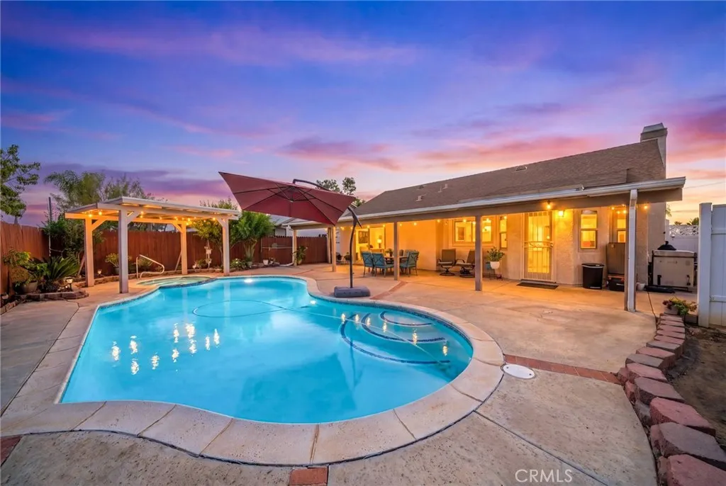 Coming Soon — 135 Bold Venture in Perris. Where summer days are spent poolside and evenings unwind under a covered patio, this single-story 3-bedroom home offers vaulted ceilings, a connected living space, and seamless indoor-outdoor flow. The primary suite opens directly to the backyard, while fruit trees and open space set the stage for entertaining. With energy-efficient windows, newer HVAC, PEX plumbing, no HOA, and just minutes to the 215, shopping, and dining — this one is worth the wait.
