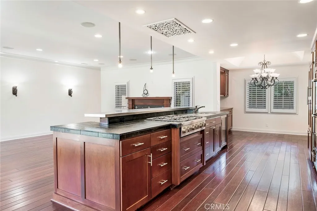 Welcome to a Truly Beautiful Craftsman Style Home in the Center of Rossmoor. This 3 Bedroom 2.5 Bath Home Features both Formal Settings as Well as an Open Floor Plan Concept for Todays Active Lifestyle. Greeted by a Traditional Front Porch you Enter into the Formal Entry Foyer with Coffered Ceilings, and Hardwood Floors. The Formal Living Room Features a Custom Fireplace Mantel with Limestone Surround and Hearth. Carpet Flooring, Recessed Lights and in Wall Speakers. A Separate Formal Dining Room with Hardwood Floors and Custom Chandelier. The Entry Hall Then Leads to a Huge Open Floor Plan Great Room Space with Family Room, Kitchen and Breakfast Room. Family Room Features a Custom Fireplace with Cherry Wood Mantel and Slate Tile Surround and Hearth. Hardwood Floors, Surround Sound Speakers, Recessed Lighting, Built in Cabinets and Custom French Doors Facing the Backyard Patio. The Kitchen has a Huge Island Featuring a Unique Stainless Steel Raised Bar Service Counter for Informal Dining and Entertaining, Six Burner Dacor Gas Cooktop, Beautiful Slate Tile Counter Top, Bar Sink, Wine and Beverage Built in Refrigerator. Dacor SS Double Oven and Warming Drawer, Bosch Dishwasher, and 42 in Refrigerator. Beautiful Custom Natural Cherry Wood Cabinets with Self Closing Hardware. Separate Step in Pantry. The Breakfast Room is Adjacent to the Kitchen and Family Room and Features Custom Built in Natural Cherry Wood Cabinets and Service Counter. Hall Bath Features a Cherry Finish Cabinet, Kohler Sink and Natural Stone Counter Top, Floor and Shower. Large Primary Bedroom with Carpet Flooring, Built in TV Cabinet and Dresser, Recessed Lights and Wall Sconces. Finished Walk in Closet. Beautiful Primary Bathroom, Large Soaking Tub and Walk in Shower all with Natural Stone Finishes and a Cherry Finish Vanity and Storage Cabinet. Large Covered Patio with Inlaid Brick and Stamped Concrete. Beautiful Stone Fountain and Water Feature Gas Fire Pit with Raised Stone Wall for Seating. 42" Twin Eagles Built-in BBQ with 3 SS Cabinets, Service/Dining Counter, Sink and Beverage Refrigerator. Large Backyard Grass Area Surrounded by Custom Landscaping and Exterior Lighting. Crown Moulding Custom Baseboards, Recessed Lighting, Dual Pane Windows and Cherry Finish Hardwood Floors Throughout the House. Large Laundry Room with Lots of Cabinets, Utility Sink, Hanging Bars and Slate Counters. 2 Added Storage Rooms. Large Garage with Pull Down Ladder for Attic Storage.