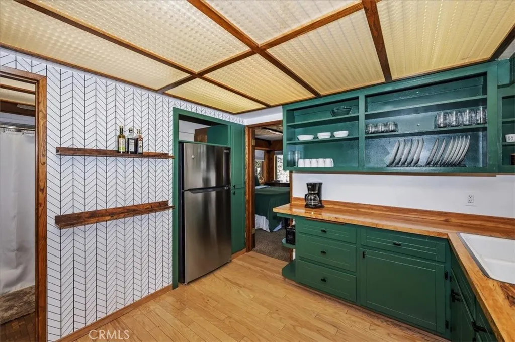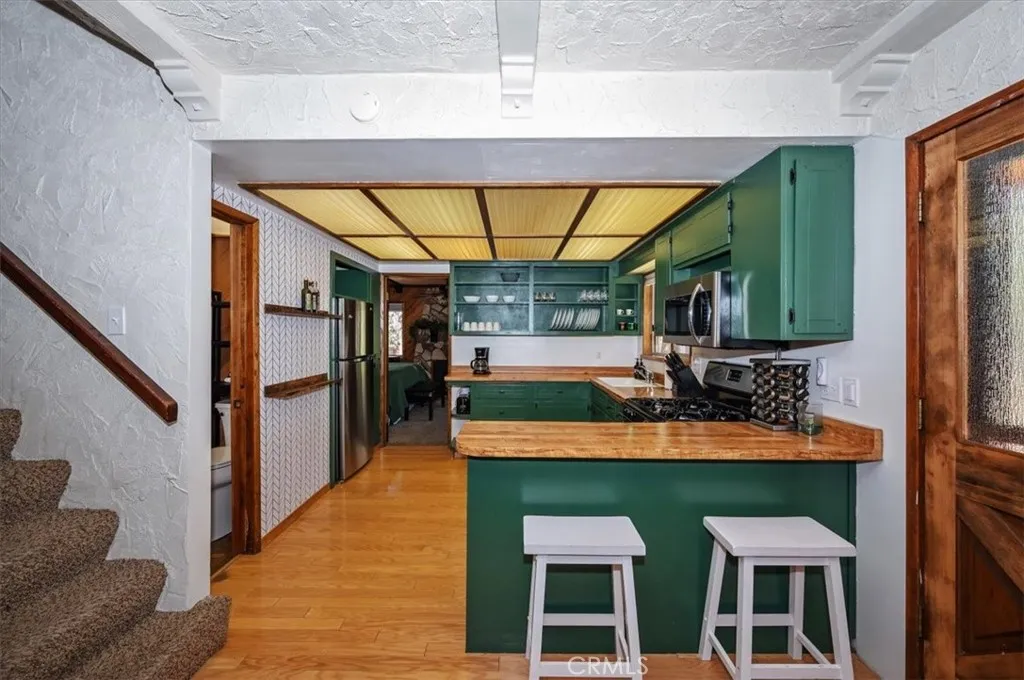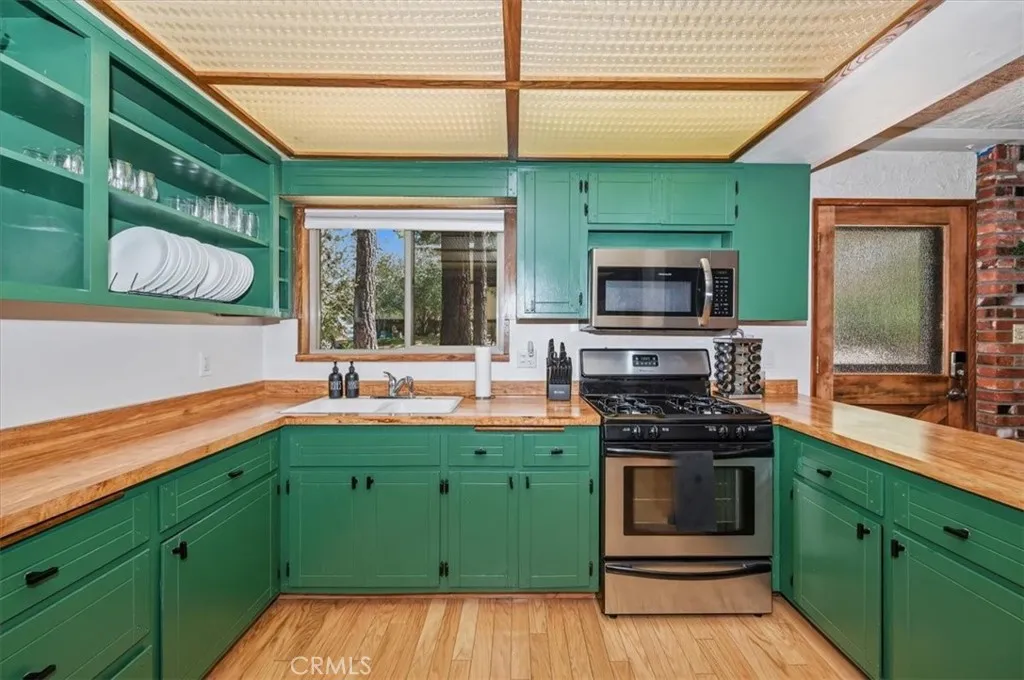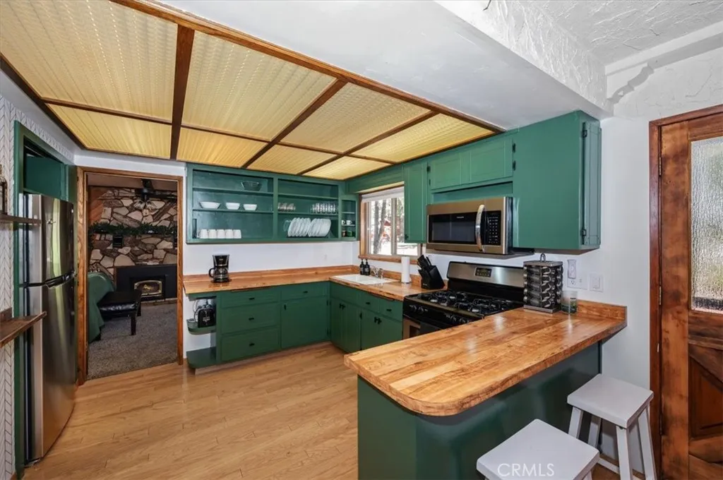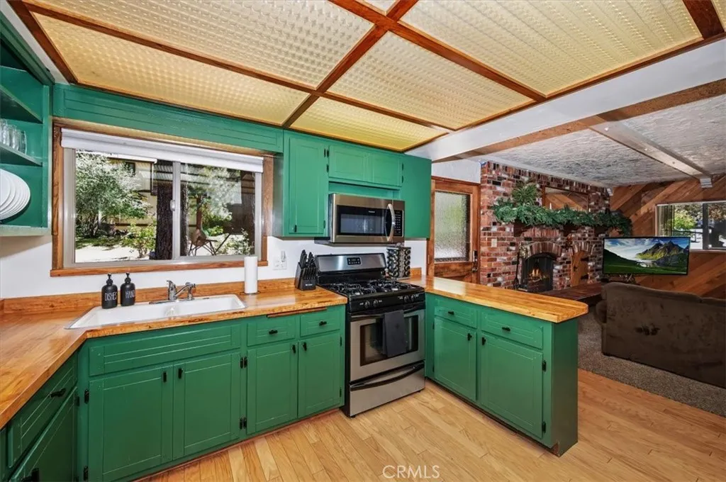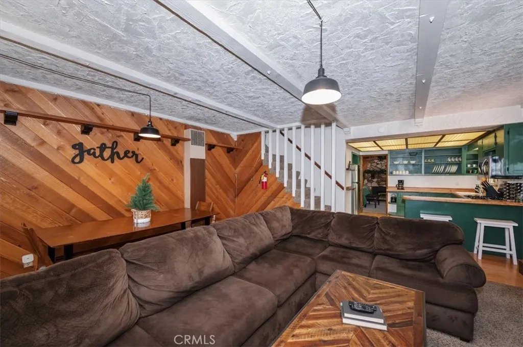Short term rental ready. Furnished and equipped. Cozy outdoor nooks to kick back and relax or enjoy the warmth in front of 1 of 3 fireplaces. 3 bedroom with main level bedroom and bathroom, concrete parking pad plus additional RV/ Boat parking. Short walk to Sugarloaf skate park, dog park and near Big Bear Highschool. Ideal location. National Forest up the end of the street. Fire department 1/4 mile from the home. Bear Mountain Ski resort and Snow Summit Ski resort/MTB (seasonal) all near by. Home being sold w/ furnishings, washer/ dryer and refridgerator. Must see in person! This Cozy spruce cabin is ready for family fun and to start renting as a vacation rental quickly. Buyer will need to get the permit.