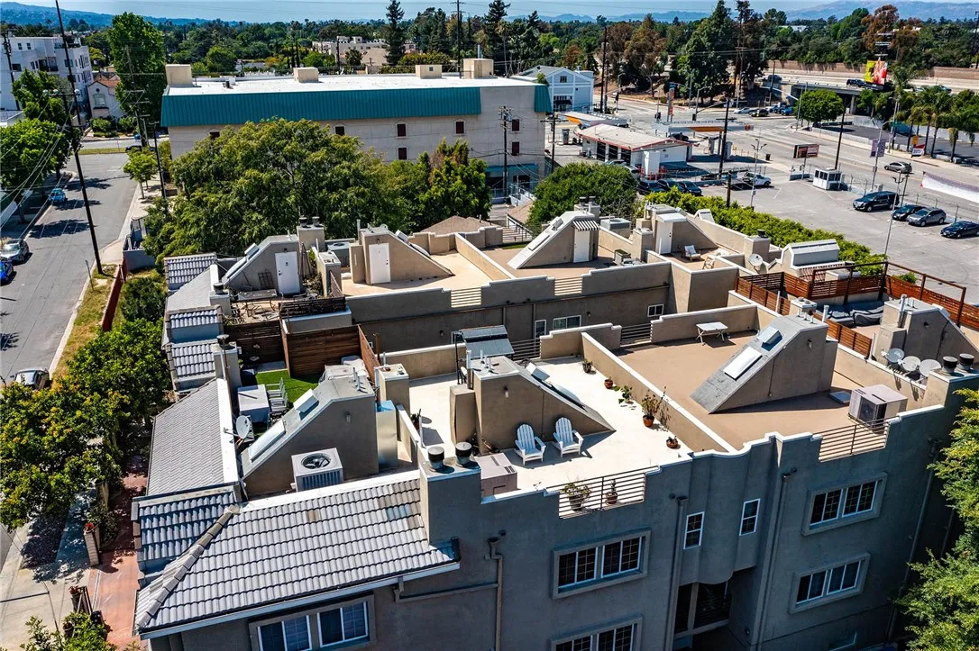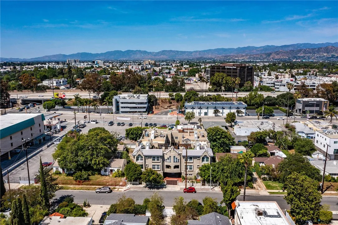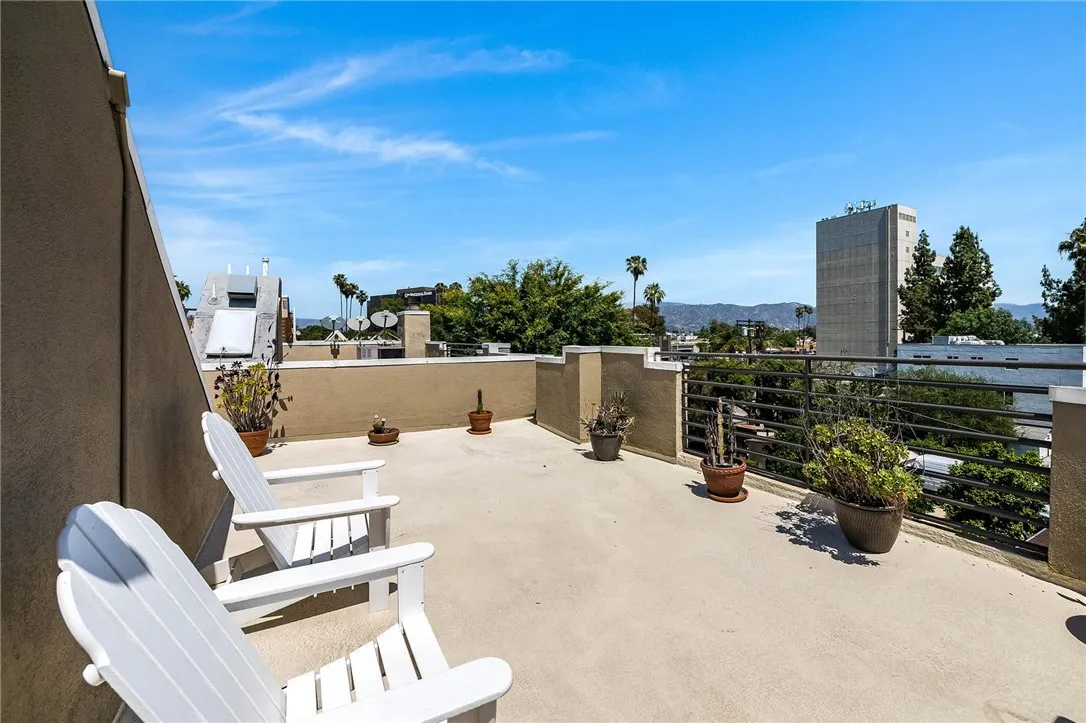 Located in one of the most sought-after neighborhoods in all of Los Angeles County, this stunning Toluca Lake townhome offers style, comfort and expansive views of the surrounding mountains. Enter to a formal foyer with tiled floors leading up a flight of stairs to the dark wood floored dining room with a beautiful fireplace and small balcony, large gourmet kitchen with expansive island, stainless steel appliances and plentiful cabinets and family room with sliding glass doors to a second of the three balconies. On the third floor, there is the massive master bedroom with walk-in closet, private balcony and beautifully tiled en suite bathroom, replete with glass shower and full, jacuzzi tub. The second bedroom, bathed in sunlight and spectacular views includes a finished walk-in closet and en-suite bathroom as well, with the same tile, tub and shower. Going up one more small flight of stairs, is one of the highlights of the home, a large decking roof perfect for entertaining or peaceful relaxation with stunning views of the Hollywood Hills and Verdugo mountains. The home also includes a third bedroom/office on the first floor with an en-suite bathroom and walk in closet and a two-car garage. Samsung washer and dryer, refrigerator and dishwasher and a recently purchased GE range and dual oven are all included. The home contains plenty of storage throughout and a powder room for guests on the 2nd floor. It is the ideal mix of indoor/outdoor living close to great restaurants, shops, cafes and bars and some excellent hiking and biking trails. Woodbridge and North Weddington parks are in close proximity along with the main strip of Toluca Lake, Tujunga and University Studios and City Walk. It is minutes away from Ventura Boulevard, Studio City, Burbank, North Hollywood and Sherman Oaks, with ready access to the 101, 134, 170 and 5 freeways. And just at the end of the street, The Last Bookstore recently opened a new location with plenty of free events. This is truly Toluca Lake living at its finest!