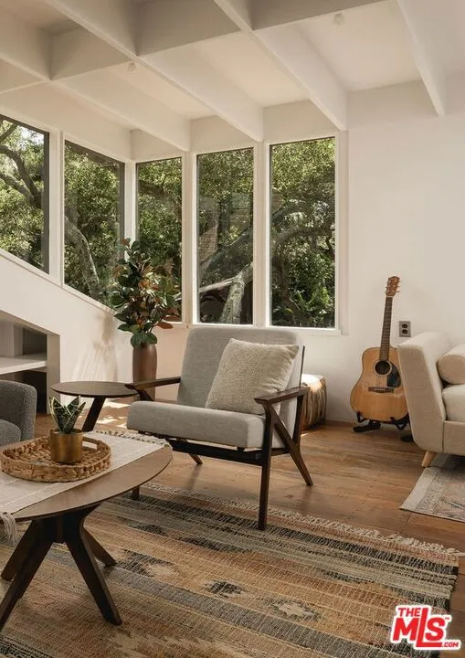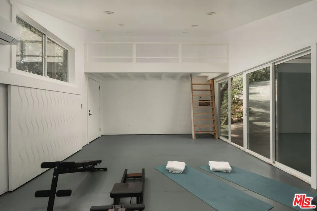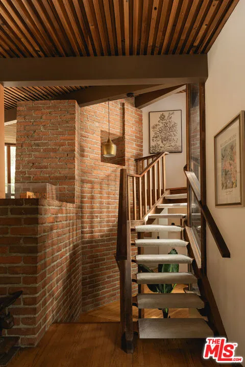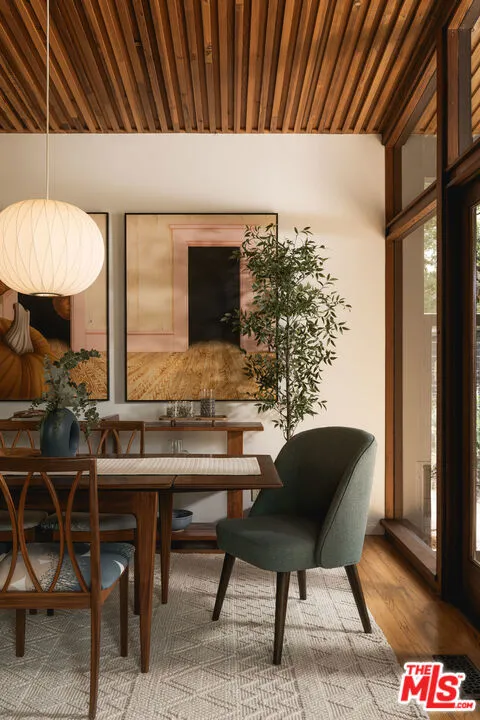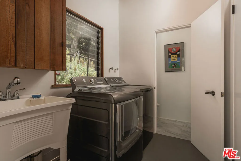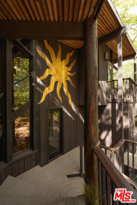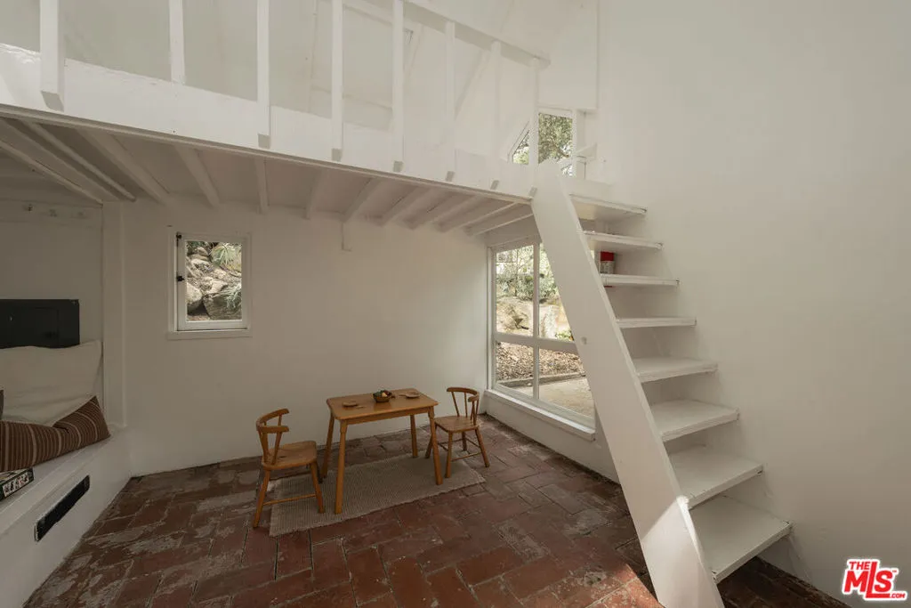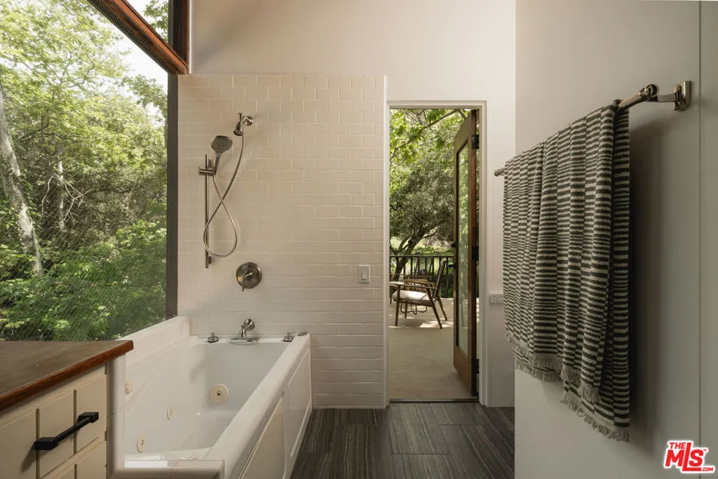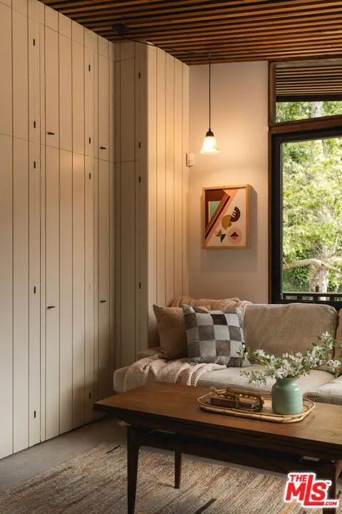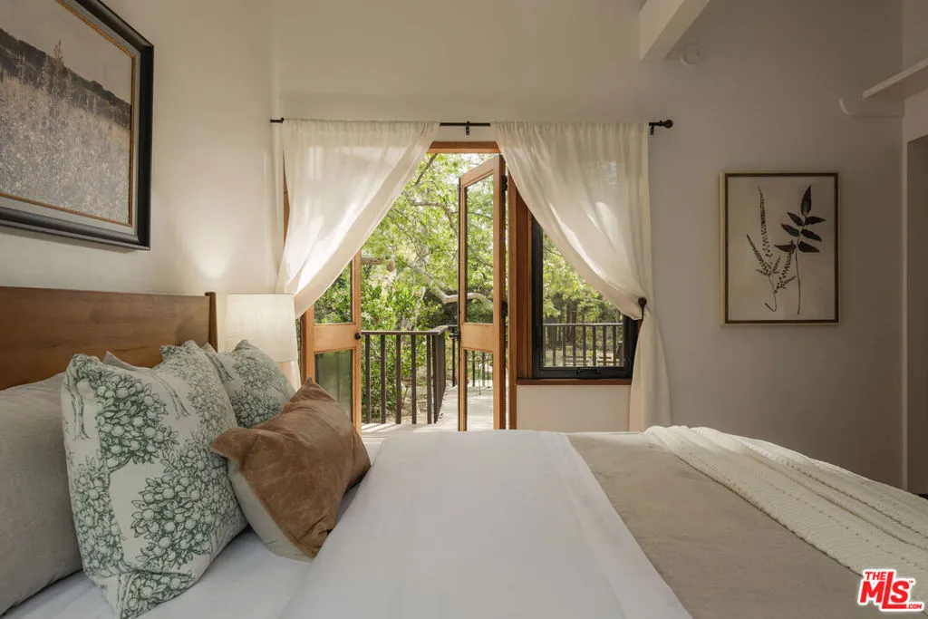 MID-CENTURY MODERN MASTERPIECE on a private lane in Mission Cyn. The 1964 Edwards & Pitman post-and-beam home is a secluded sanctuary on a wooded creekside acre. The multi-level, open floor plan is flooded with light. Brickwork, restored plank floors & rhythmic wood ceilings add linear flow & impeccable artistry. Updated kitchen retains mid-century charm, with modern amenities; step down into a den/office. The primary suite occupies the top floor with park-like views from the deck. Two bedrooms, playroom & full bath complete the lower level. Four stand-alone buildings include a sunny loft atop the garage, a large art studio & 2 petite cottages. Meticulously maintained to preserve its original integrity, this stunning property offers unparalleled peace moments from downtown's vibrancy.