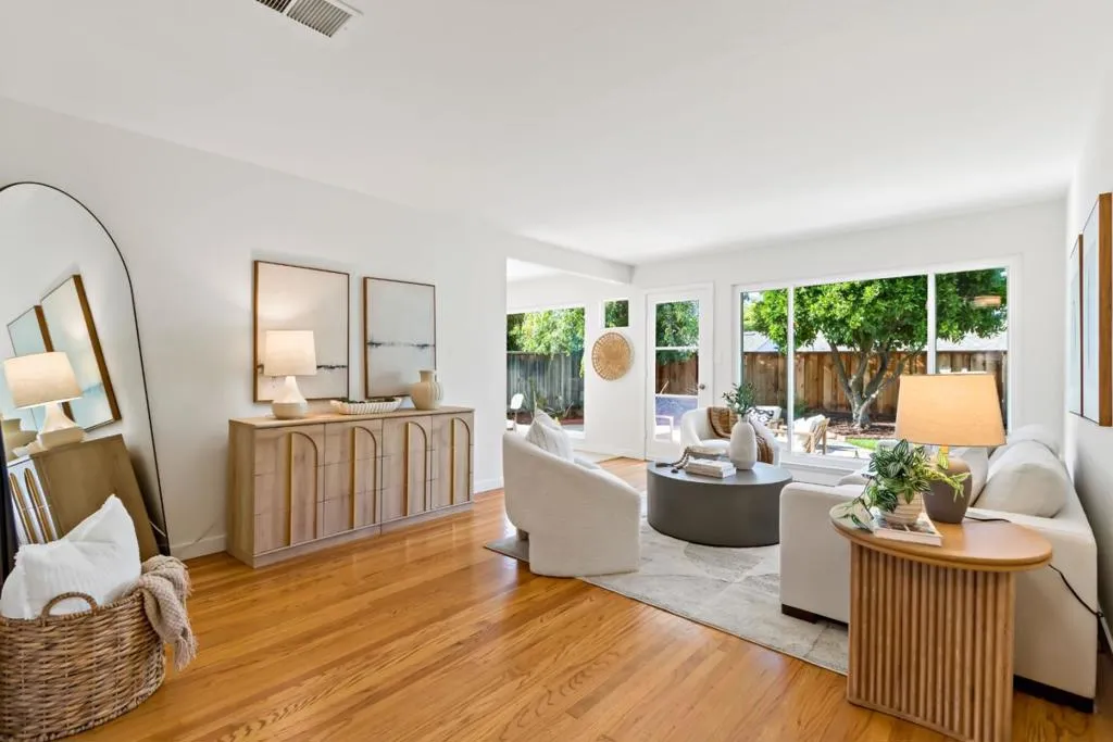 Charming single-story home nestled in the highly desirable Happy Valley neighborhood, served by award-winning County Lane Elementary. Set on a picturesque tree-lined street, this inviting residence offers a bright living room with a large picture window that fills the space with natural light. The eat-in kitchen features stainless steel appliances and a comfortable dining area perfect for everyday living. This well-maintained home includes 3 bedrooms and 2 beautifully remodeled bathrooms, complemented by hardwood flooring, dual-pane windows, and central heating and air conditioning for year-round comfort. A spacious laundry room provides additional storage and convenience. Step outside to a sunny backyard retreat with a flagstone patio and sun deck ideal for relaxing or entertaining along with a prolific orange tree. The detached finished shed offers versatile space, perfect for a home office, workshop, or creative studio. Ideally located near Westgate and El Paseo shopping centers, Sprouts, and Trader Joes, Saratoga Creek Park, and easy access to major commute routes, this home combines comfort, charm, and convenience in one exceptional package.