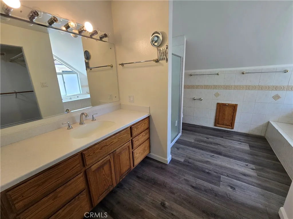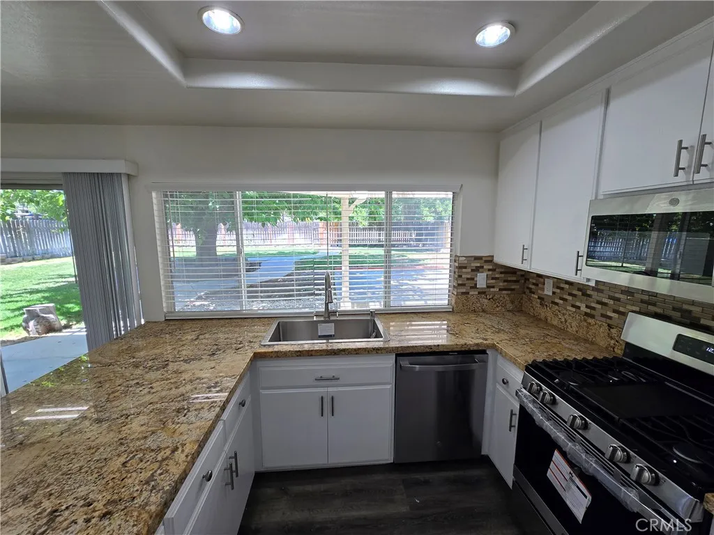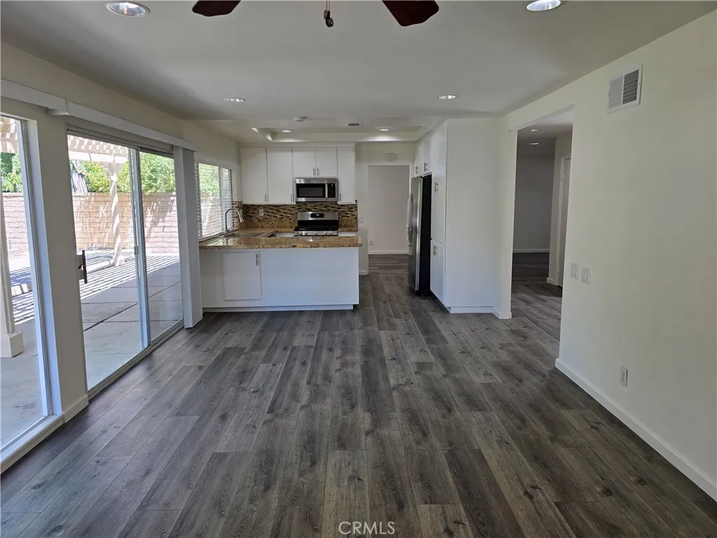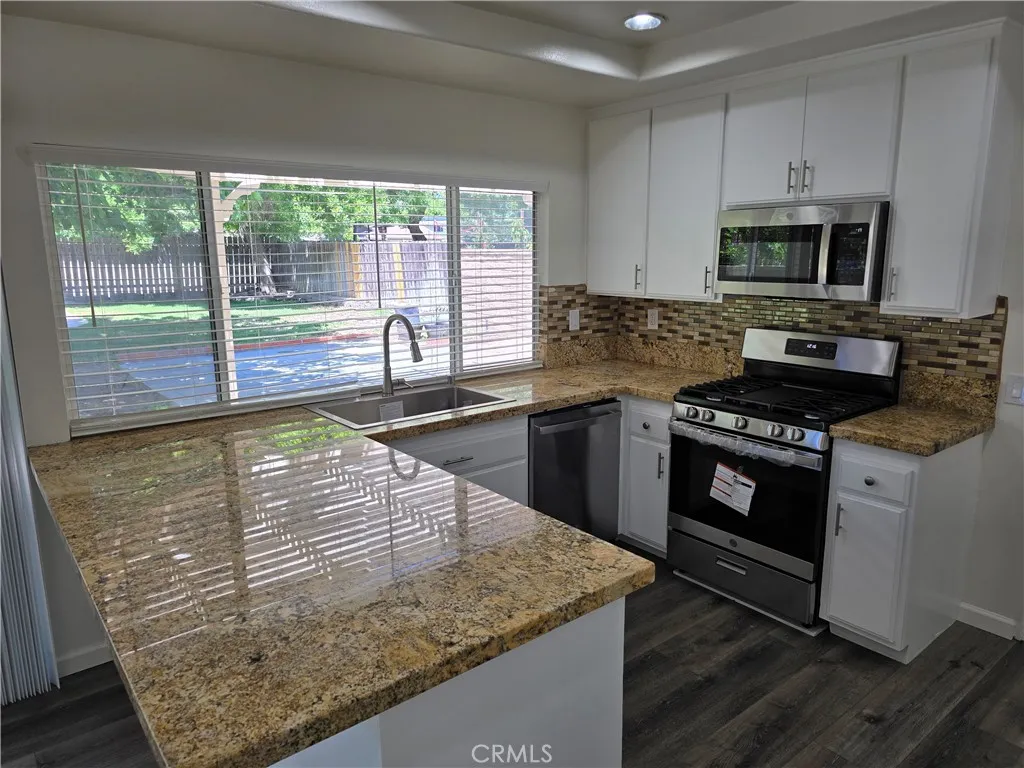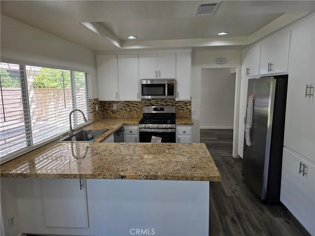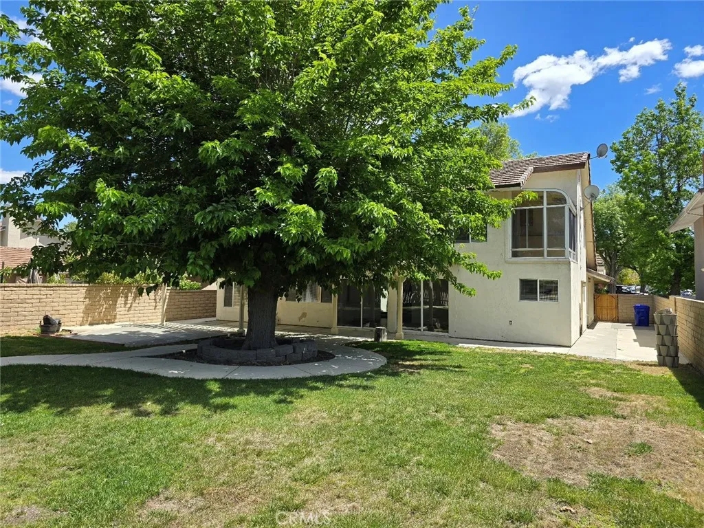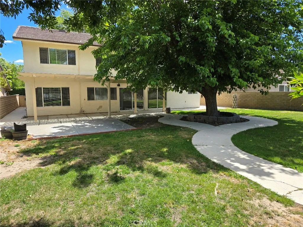 This property is a lovely 2 story, 5 bedroom 3 bath home that is spacious with a large back yard. It features one large bedroom & one full bath down, 4 bedrooms & 2 baths up. The primary bedroom has a sun room attached with a walk-in closet and oversize Jacuzzi tub. The house has brand new LVP flooring in the entire house except for tile floorings in the first floor bath and second floor hall bath. The only carpet is on the staircase and which is also new. The house has new paint in the interiors. All kitchen appliances are brand new. New blinds have also been installed. The home offers living room with fireplace, formal dining room, family room off kitchen and an open lite and bright kitchen with stainless steel appliances. Please note: kitchen counters have been updated to granite. A large size yard with mature tree, nice size grassy area to play & a concrete patio with the trellis newly painted. This home also offers a 2 car attached garage, no rear neighbors, close to shopping, award winning schools, and is near the 5, 14 and 126 Freeways.