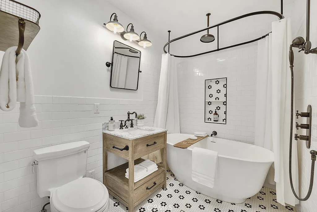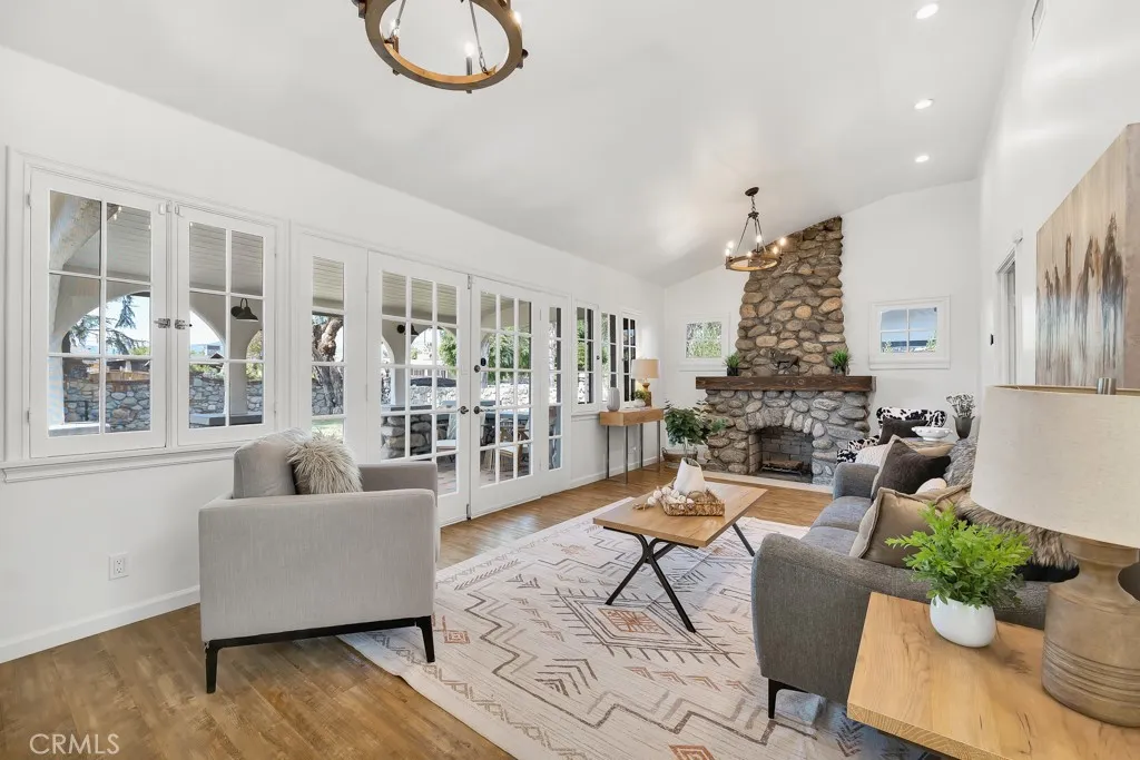 Rare equestrian zoned single family residence in Sun Valley, California offering 2 bedrooms and 1.5 bathrooms of fully renovated living space, plus turn key horse stalls, covered runs, a fenced rear paddock, and a utility shed on a flat, usable lot. This stone-accented ranch-style home has been renovated with expensive high-end quality farmhouse finishes throughout. Soaring vaulted ceilings with exposed dark wood beams, hardwood floors, and a dramatic floor-to-ceiling stacked stone fireplace with a reclaimed wood mantle anchor the open-concept living area. The remodeled chef's kitchen features white shaker cabinetry, white quartz countertops, a professional stainless steel range with a custom hood and pot filler, an apron-front farmhouse sink with matte black fixtures, shiplap accent walls, and open floating shelves. The spa-caliber full bathroom includes a freestanding soaking tub, ceiling-mounted rain shower, subway tile walls, mosaic hex tile flooring, a wood vanity with a marble countertop, and antique bronze hardware — while a separately finished powder room delivers its own farmhouse charm. A covered brick patio with an exposed beam ceiling and skylight panel creates a seamless indoor-outdoor living experience. The gated carport, arched stone colonnade, and manicured front lawn deliver serious curb appeal. Minutes from the 5 and 170 Freeways, Burbank, and the broader San Fernando Valley, this is a turnkey equestrian property unlike anything else on the market.