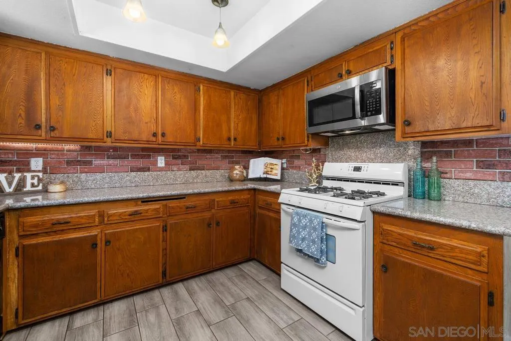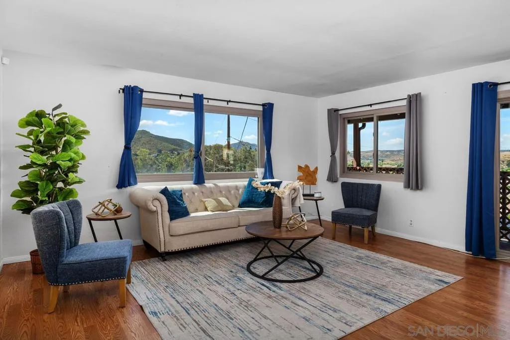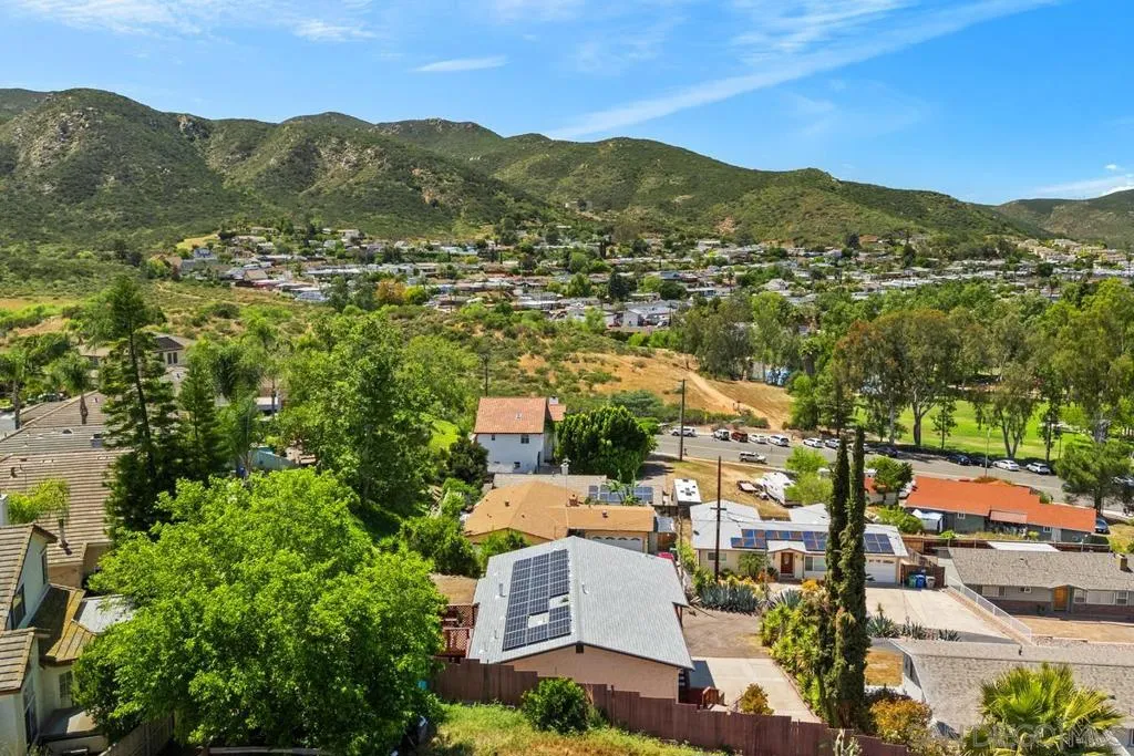 Spectacular VIEWS! Set on a large 8,500 SF lot, this home offers space, value & potential. Enjoy modern comforts like forced air heat & A/C, paid solar with battery & newer roof (2021). Efficient floorplan maximizes space. Ideally located near Big Rock Park, Santee Lakes Recreation Preserve, Walker Preserve Trail, & Santee Trolley Square for shopping, dining & outdoor fun. Assumable VA loan at 2.5%! Loan balance is $330,349 - a rare opportunity! Solar is owned & has 19 panels! The solar has a battery system as well. New floors in kitchen and bathroom, new shower in master bath, newer windows, and newer garage doors. The stucco was redone in 2018. The roof and solar were installed in 2021. Roof is GAF Timberline HDZ Reflector singles which is considered a "Cool Roof." The house is tucked in away from a main road, providing privacy & quiet. The garage is very spacious with room for two cars and still have room for workbenches and storage. VA assumable loan - a rare opportunity!