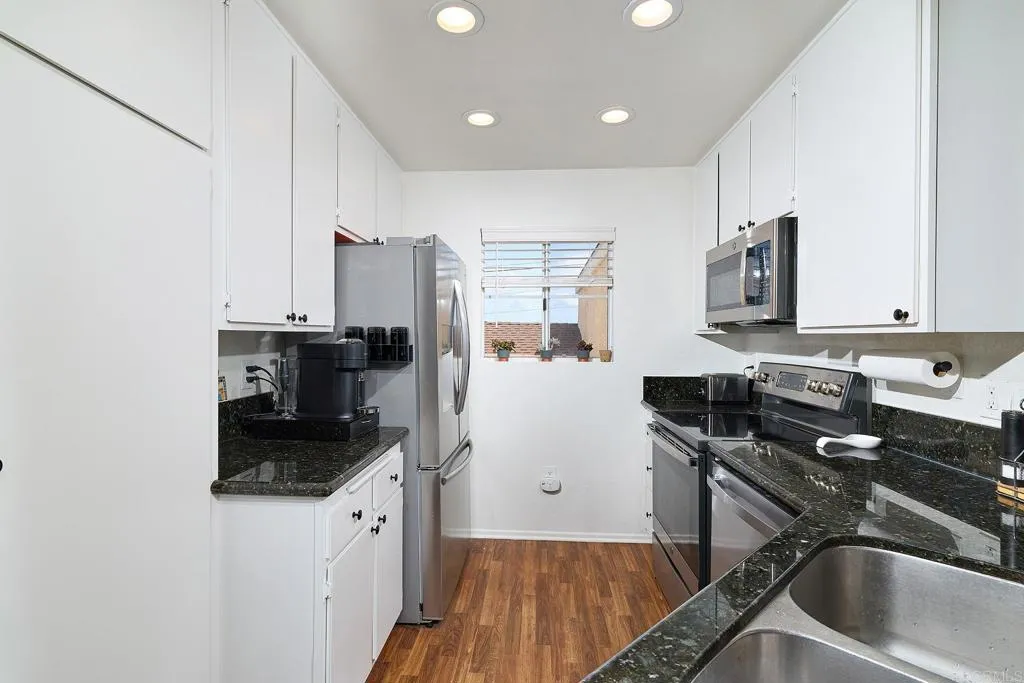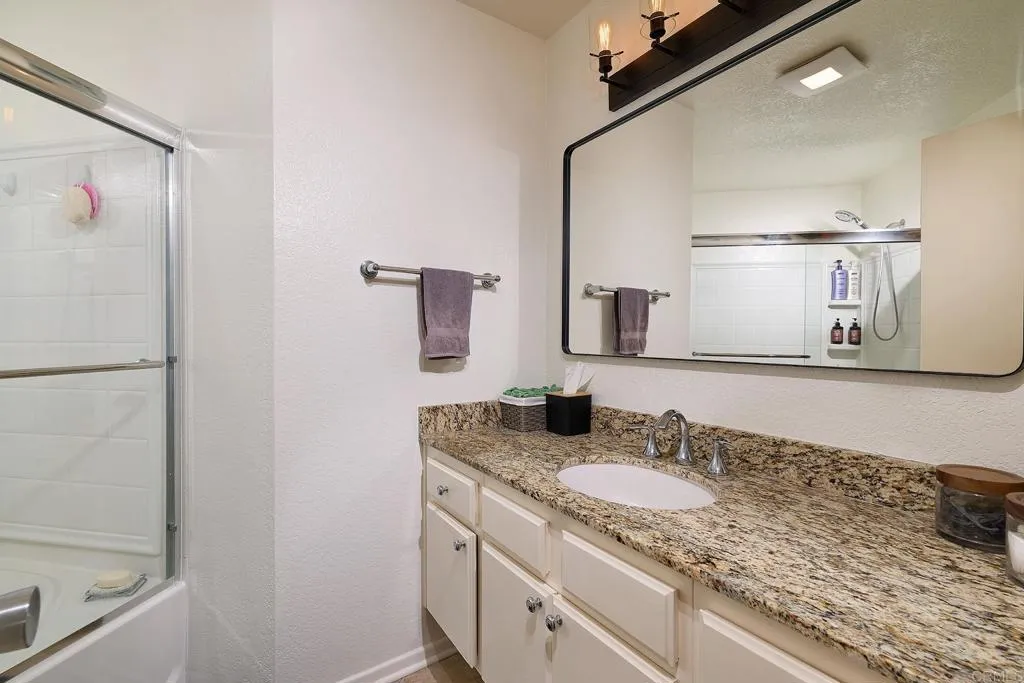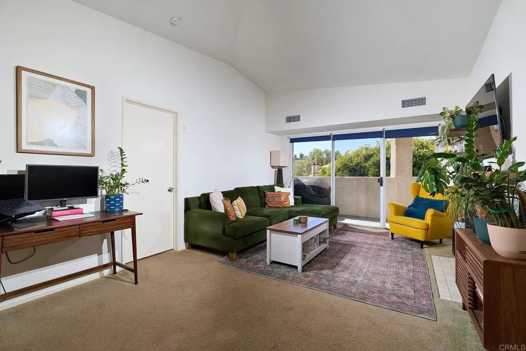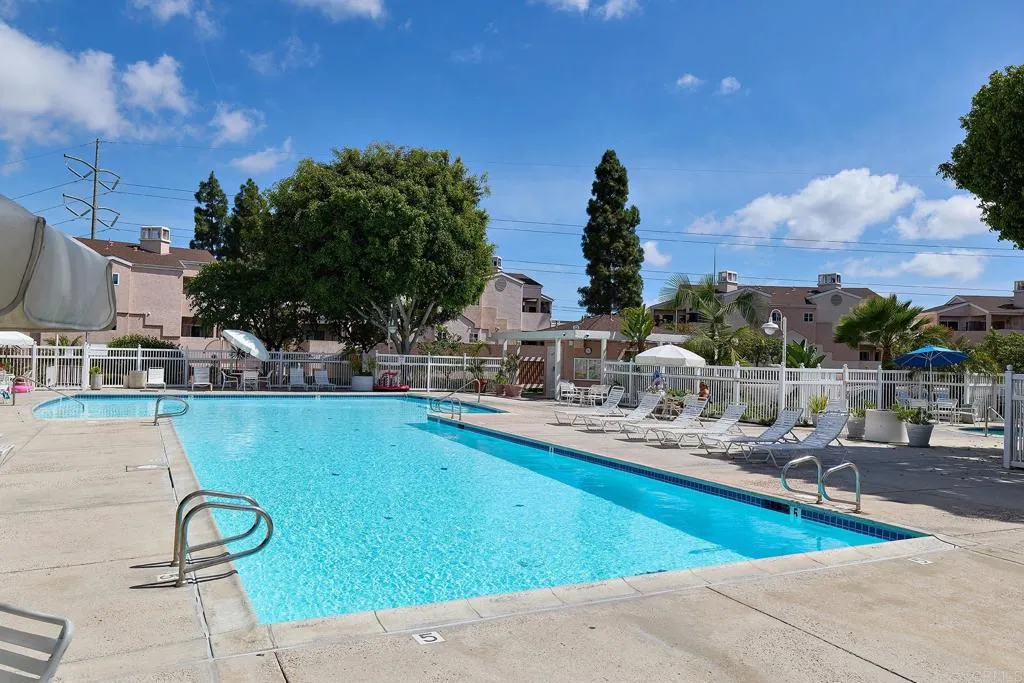 Welcome to your private top-floor retreat at City Scene, a spacious and light-filled home offering an open floor plan with soaring ceilings and abundant natural light. This 2 bed, 2 bath corner unit sits on the 3rd floor with no neighbors above and only one shared wall--total privacy and peace. The living, dining, and kitchen areas flow seamlessly, with a cozy gas fireplace in the living room. The modern kitchen, with a new stove, microwave, refrigerator and dishwasher, is perfect for entertaining or relaxing at home. The split-bedroom layout provides ultimate privacy, with a generous primary retreat featuring ample closet space and an en-suite bathroom. Sit outside and enjoy morning coffee on your own private balcony that’s accessible from both bedrooms and the living room. Bonus perks: newer air conditioning unit, in-unit laundry with newer stackable washer/dryer, side-by-side two-car garage, access to a resort-style pool, spa, and gym, and HOA assessment will be paid at close of escrow. Conveniently located with easy freeway access, you'll be minutes from Mission Valley's shopping, dining, and entertainment, as well as USD, SDSU, and San Diego's beautiful beach communities.