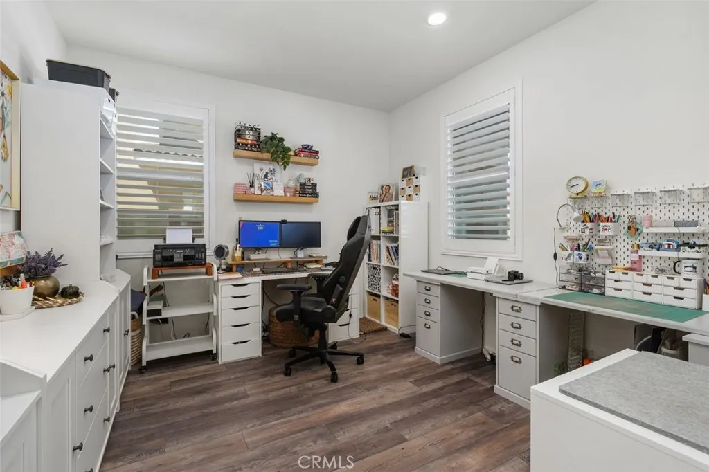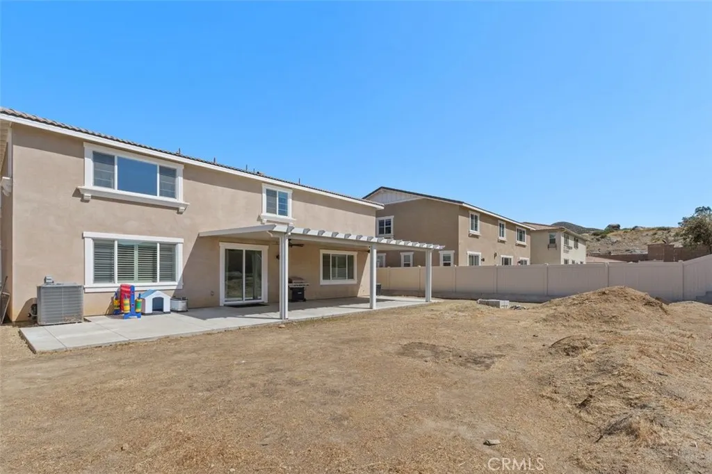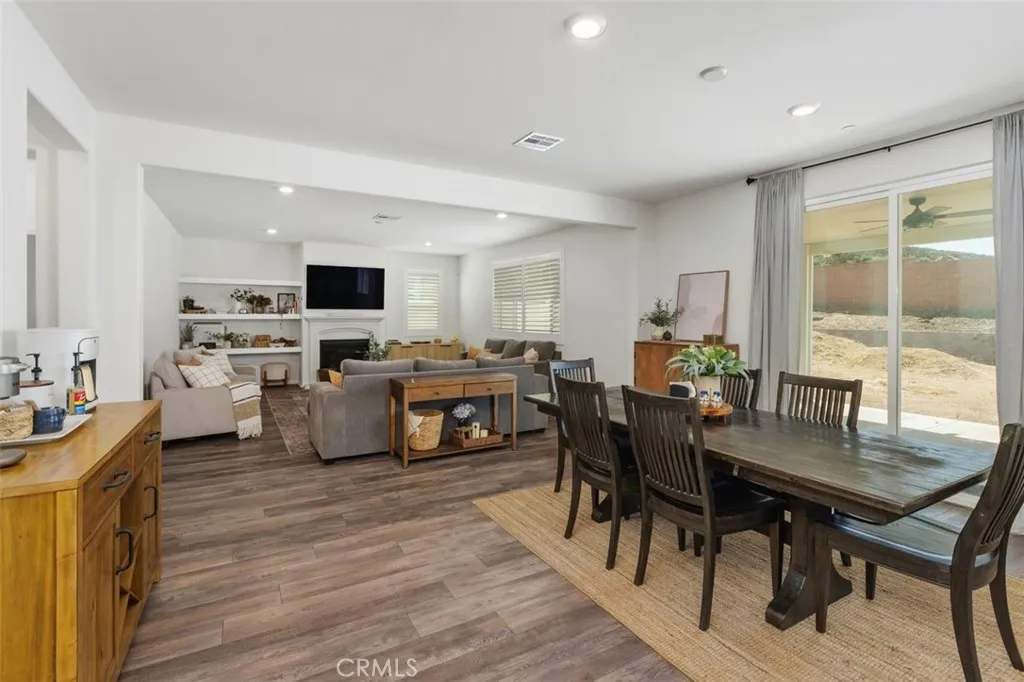 Welcome to 27239 Hideout Court, a beautifully upgraded home tucked away on a quiet cul-de-sac in the growing city of Menifee—offering NO HOA and a highly functional floor plan designed for today’s lifestyle. From the moment you enter, you’ll appreciate the timeless elegance of white shutters featured throughout the home, adding both style and privacy. The open-concept layout is filled with natural light and seamlessly connects the spacious living area to the dining space and kitchen, creating an inviting environment for both everyday living and entertaining. The main level offers a formal dining room perfect for hosting gatherings, along with a versatile flex space currently used as a home office, ideal for remote work or additional living needs. A highly desirable downstairs bedroom and full bathroom provides excellent flexibility for guests, multigenerational living, or extended stays. Upstairs, you’ll find well-appointed bedrooms including a spacious primary suite complete with a private ensuite bath and walk-in closet, offering a relaxing retreat at the end of the day. Additional bedrooms provide flexibility for family, guests, or a home office. Step outside to an oversized covered patio complete with ceiling fans, perfect for year-round outdoor enjoyment. The backyard offers plenty of space to personalize and create your ideal outdoor setting. Enjoy energy efficiency and long-term savings with paid-off solar, a valuable upgrade for modern homeowners. Conveniently located near parks, schools, shopping, and commuter access, this home combines comfort, functionality, and exceptional value.