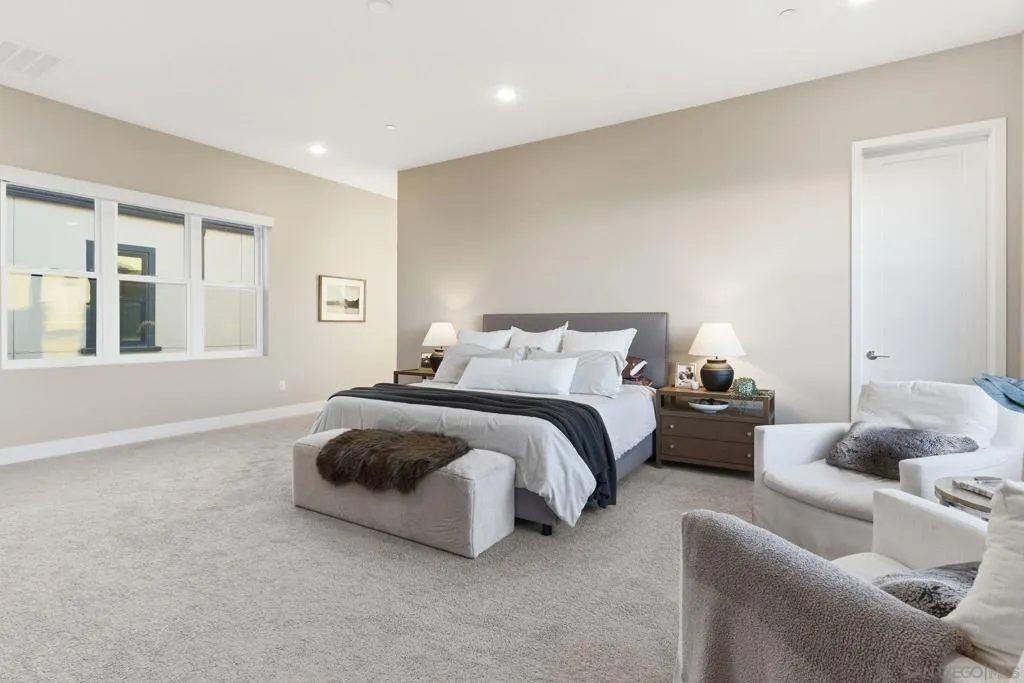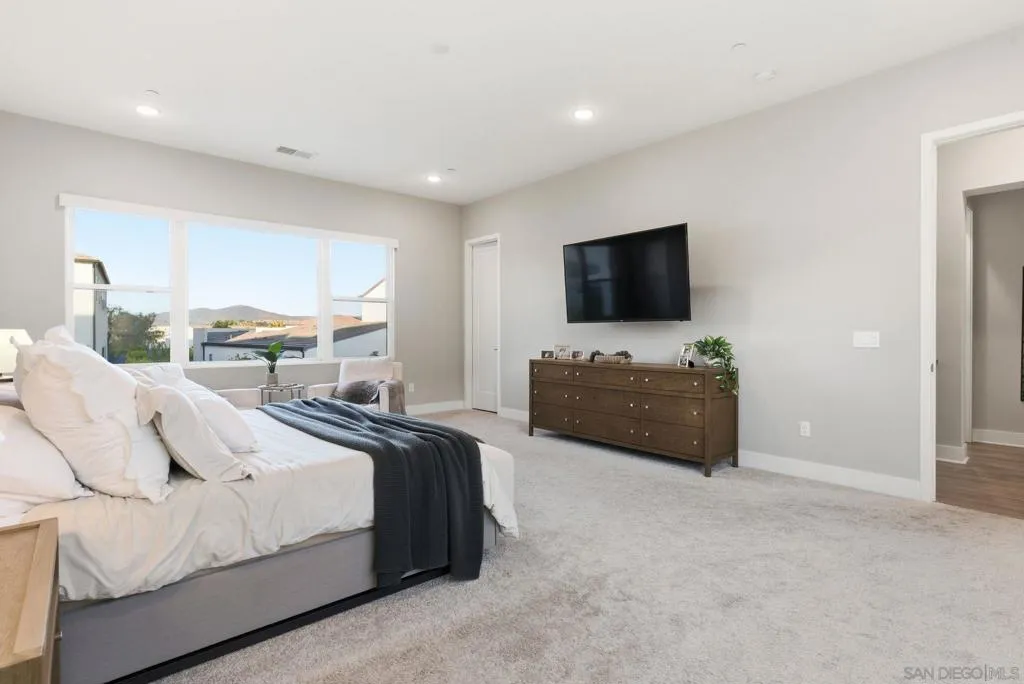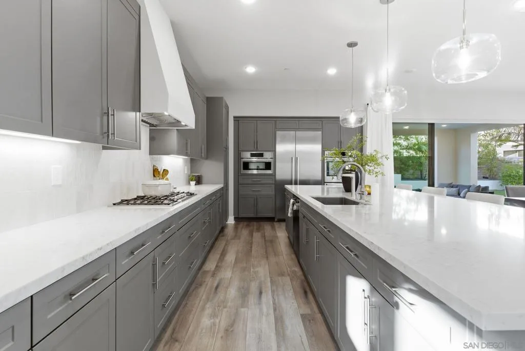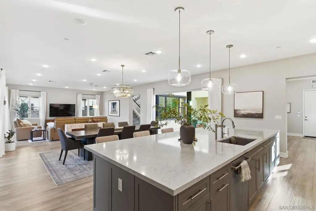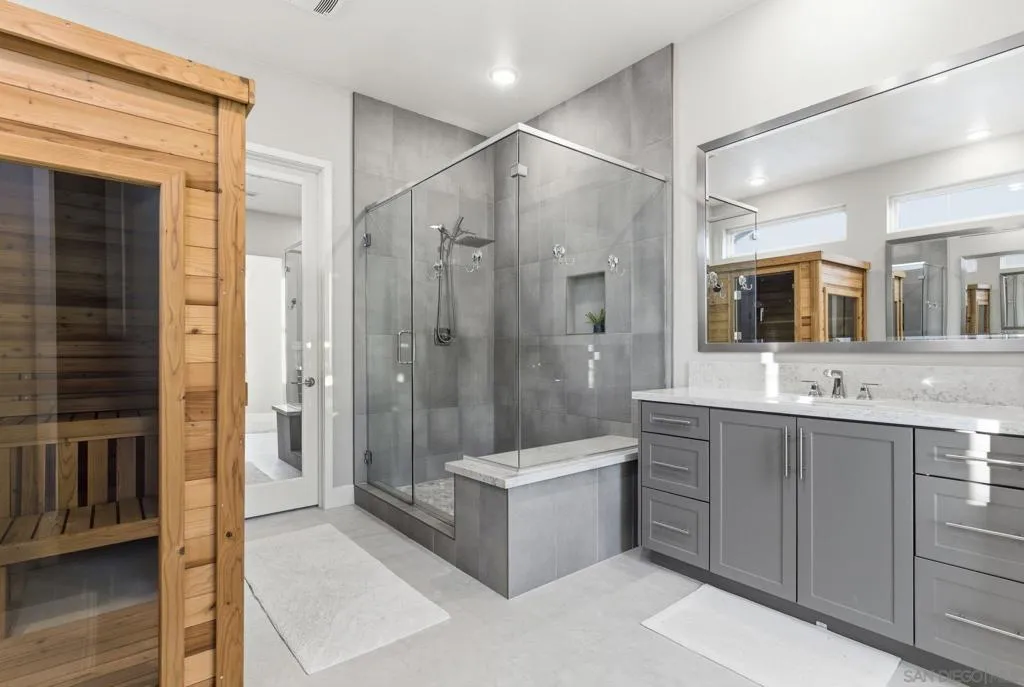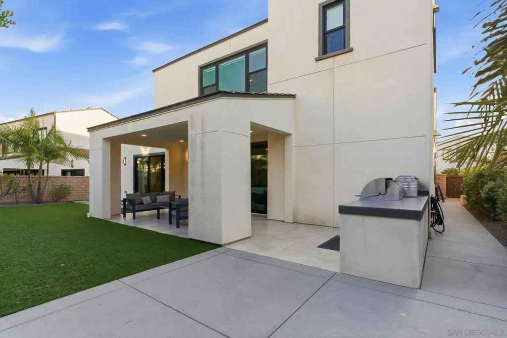 Welcome to 5328 Morning Sage Way, a meticulously crafted 2019-built luxury home in the heart of Pacific Highlands Ranch, one of San Diego's most sought-after master-planned communities. Offering 4,370 sq ft with 5 bedrooms and 5.5 baths, every inch reflects impeccable custom builder-grade finishes rarely found at this price point. Step inside to soaring ceilings, wide-plank flooring, and designer lighting that set an elevated tone from the moment you enter. The chef's kitchen is anchored by an oversized quartz island, a custom tile backsplash, premium stainless steel appliances, and a full wall of custom cabinetry, flowing effortlessly into the open-concept dining and great room. Custom La Cantina sliders span the back of the home, dissolving the boundary between indoor and outdoor living. Step outside to a covered patio with recessed lighting and a built-in BBQ, the ultimate setup for California entertaining year-round, all framed by a lush, low-maintenance artificial turf yard. The primary suite is a true retreat with spa-caliber bath finishes and a custom private sauna. Secondary bedrooms are generously sized with refined detail throughout. Perfectly positioned near top-rated schools including Canyon Crest Academy, Cathedral Catholic High School, and the prestigious Torrey Pines High School, and just minutes to the coast, shopping, dining, and major freeways. A 2-car garage and beautifully landscaped grounds complete this extraordinary offering. Luxury, lifestyle, and location, perfectly united!!