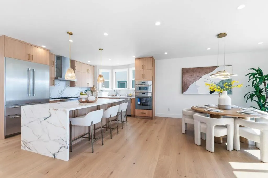 Extensively rebuilt from the studs w/ a refined modern vision, this beautifully reimagined Merced Manor home blends timeless architecture w/ elevated living. Offering 4BD 4.5BA, an open layout, and a 2-car garage, every detail has been thoughtfully executed. Designed w/ high-end finishes throughout, the home features wide-plank flooring, recessed lighting, and clean architectural lines. The chefs kitchen anchors the space w/ custom cabinetry, premium built-in appliances, a 6-burner gas range, and a striking waterfall island, seamlessly connecting to the living and dining areas and extending to a generous outdoor setting for indoor-outdoor living. The expansive living area is enhanced by custom built-ins and designer lighting, creating a refined yet inviting atmosphere. Each bedroom is well-sized for comfort and privacy, while all bathrooms are fully upgraded with spa-inspired finishes, floating vanities, and elegant stonework. The primary suite offers a tranquil retreat w/ a soaking tub, walk-in shower, and a calming modern aesthetic. Comprehensively upgraded w/ new electrical, roof, Milgard windows, and a three-coat stucco exterior, plus a newly finished yard, pavement, and fencing. Ideally located near Stonestown Galleria, Lake Merced, parks, dining, & major commute routes.