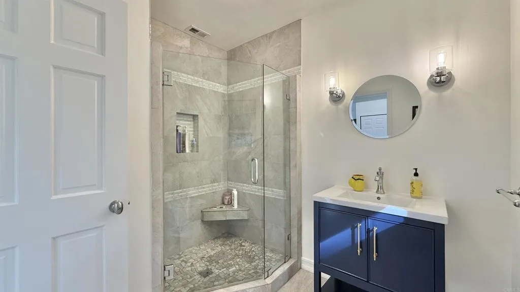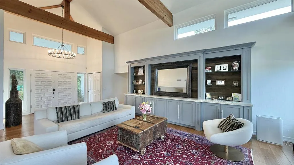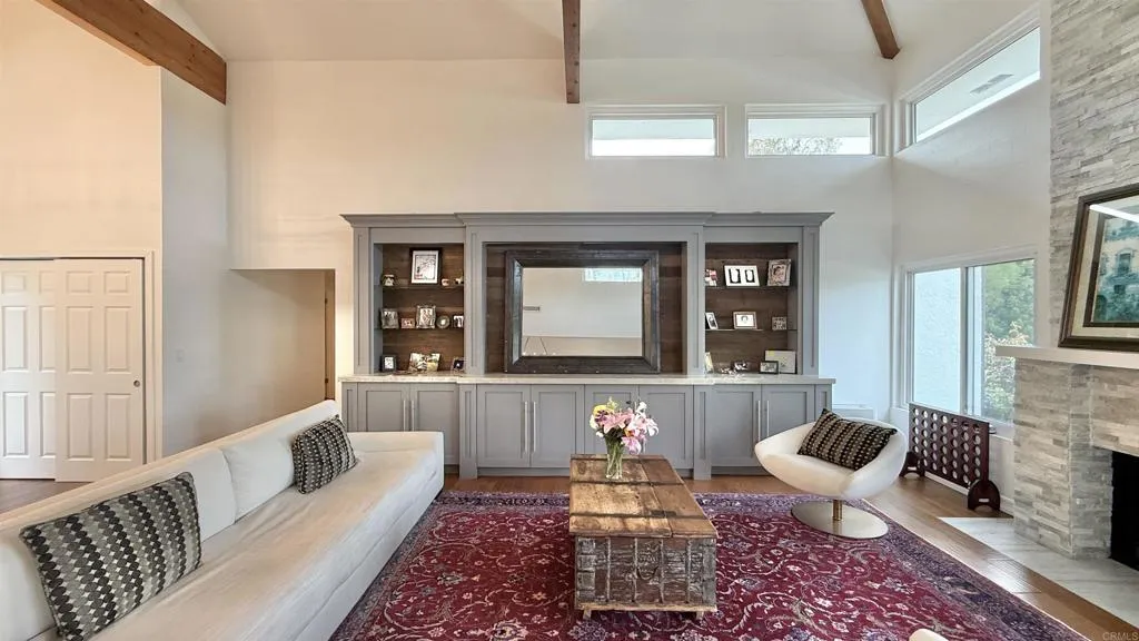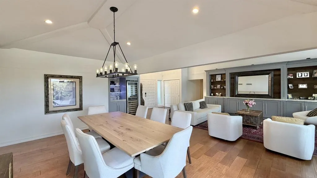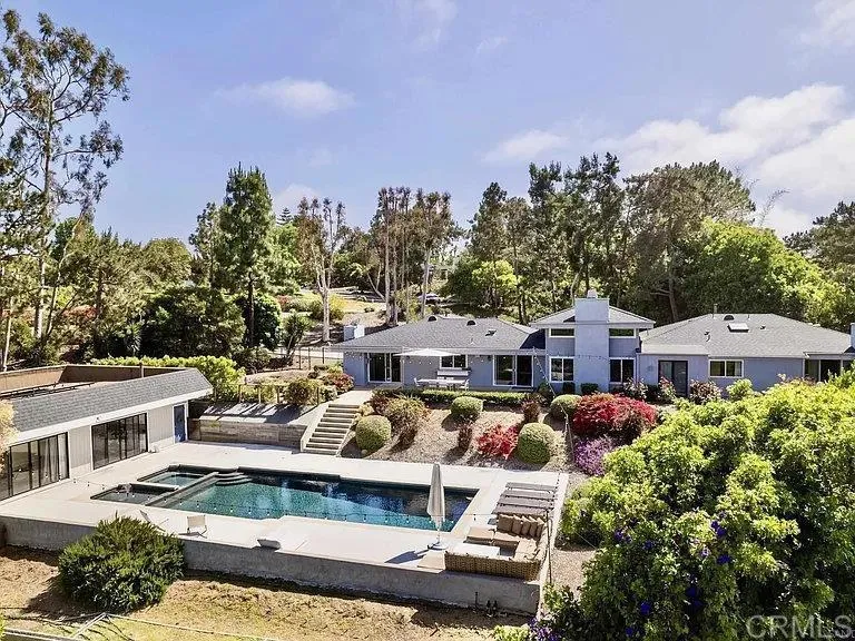 - PANORAMIC VIEWS. PRIME LOCATION. PRIVATE. LUXURY LIVING. ADU. SOLAR. - Gorgeous 7B 4B single-level home on 1.14 acre lot in Rancho Del Mar / Rural Del Mar. - Open floor plan with vaulted ceilings and abundant natural light. - Spacious kitchen with stainless steel appliances, French door fridge, breakfast bar, ample storage and wine fridges. - Primary bedroom with built-in cabinets, walk-in closet, bathroom with dual vanity, standing shower and bathtub. - Stunning panoramic views over greenery and mountains. - Completely remodeled with brand new pool house (ADU), newer kitchen and all newer bathrooms. - Designer finishes and many upgrades throughout, upgraded driveway, hardscape, landscaping, irrigation system and sport court. - 5B 3B main house plus detached 2B 1B pool house (ADU) with living room and kitchen. - ADU about 900 sq ft, fully remodeled with new kitchen, bathroom and added AC. - Newer upgraded pool, spa, hot tub and toddler pool. - Large, mostly flat and usable 1.14 acre lot with great privacy. - Backyard with fruit trees (orange, pomelo, lemon), mature landscaping, large pool deck and patio off kitchen. - Lot about 1.2 1.3 acres with around 70 trees, space for vegetable garden and pickleball court. - Attached 2-car garage plus driveway parking. - Peaceful neighborhood with large lots and quiet surroundings. - Only 3 5 minutes to Del Mar beaches, restaurants and shopping. - Great schools and highly desirable community.