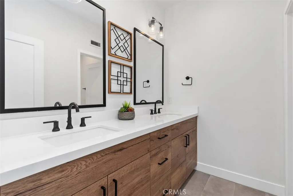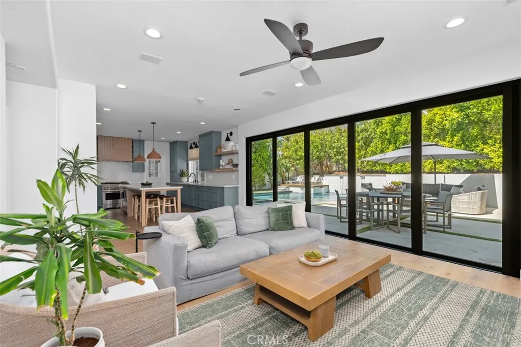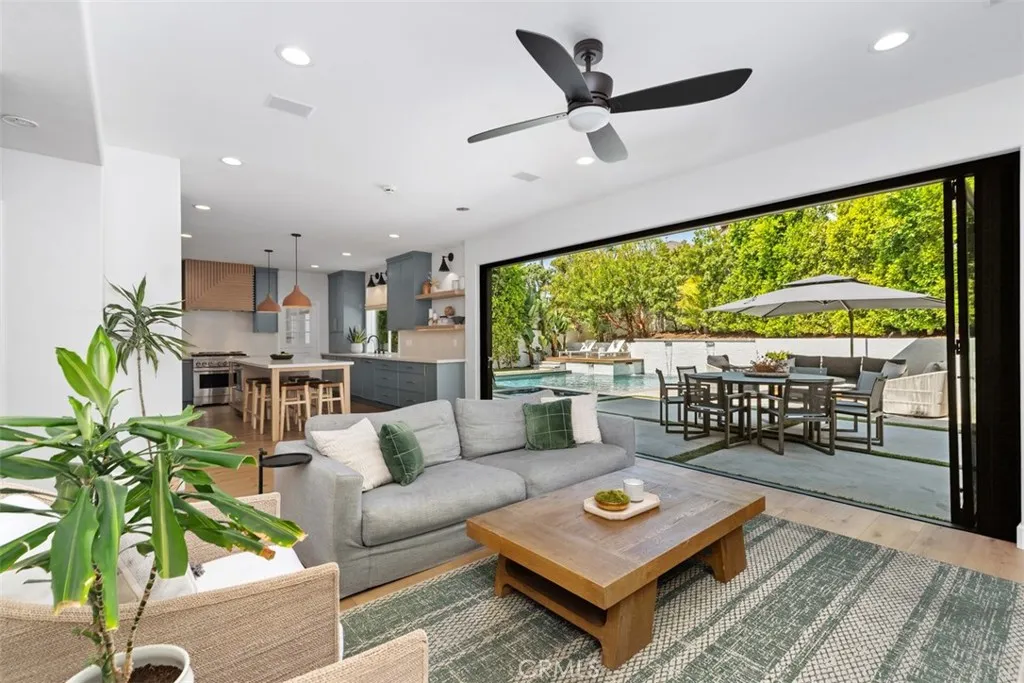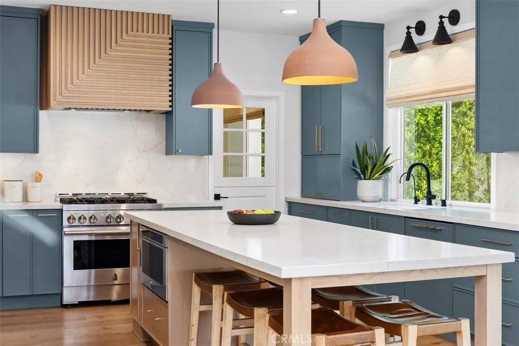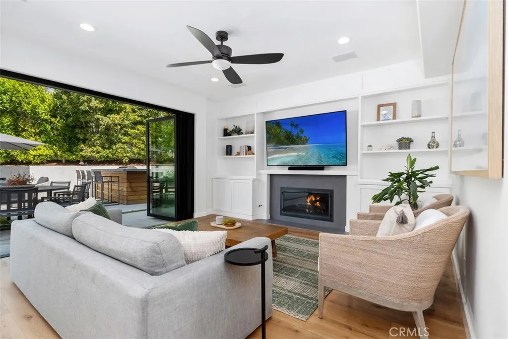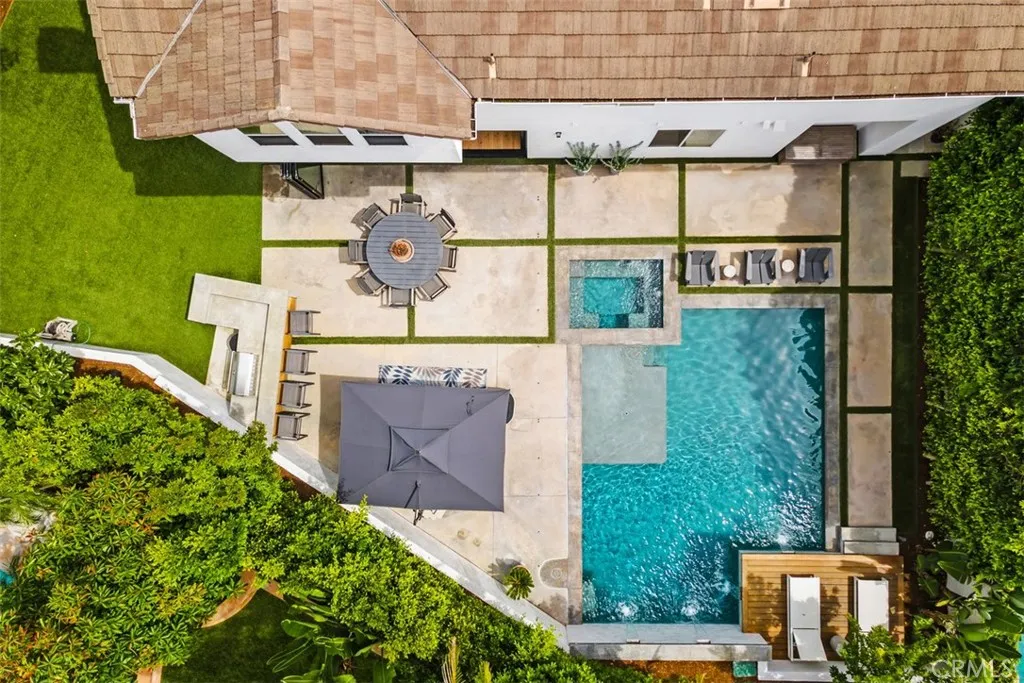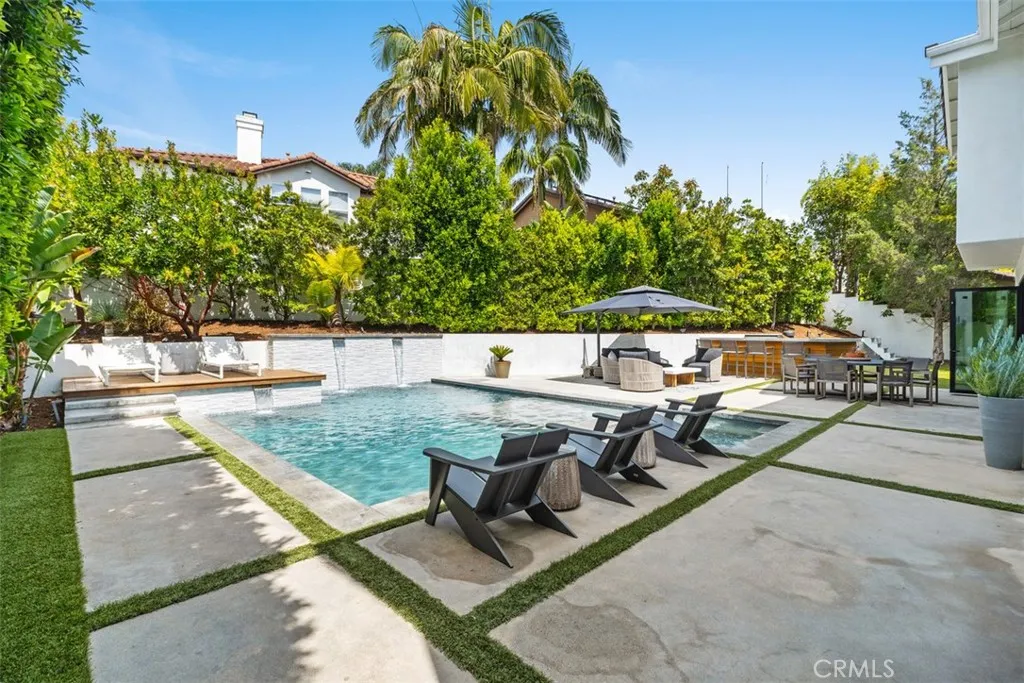 Located behind the prestigious gates of Kensington Estates and tucked within a beautiful cul-de-sac, this home immediately stands out for its rare lot size and full re-imagined indoor-outdoor living experience. Step into a fully customized, reimagined, luxury 4-bedroom, 3-bathroom residence, that can easily be converted to a 5-bedroom, 4-bathroom configuration if desired. Virtually no original builder finishes remaining. From the moment you enter, you’re greeted by wide-plank luxury flooring across both levels, recessed LED lighting, and custom designer fixtures that elevate every space. At the heart of the home is a stunning, fully rebuilt kitchen featuring expanded cabinetry, generous counter space, and seamless flow for both everyday living and entertaining. The dining room makes a bold yet refined statement with its custom board and batten accent wall—blending classic craftsmanship with contemporary style. A dedicated first-floor private office provides the ideal work-from-home setup, while an additional playroom/bedroom offers flexibility for guests or multi-generational living. Upstairs, the primary suite serves as a personal sanctuary, offering wainscoting paneling, and a flexible private retreat or gym. The remodeled primary bathroom showcases custom cabinetry, upgraded flooring, designer fixtures, and a relaxing soaking tub. One of the home’s most striking features is the 16’ La Cantina folding door system, creating a seamless indoor-outdoor experience that opens to an extraordinary backyard. Designed for both luxury and lifestyle, this outdoor space rivals resort living. Surrounded by lush Hollywood hedges for ultimate privacy, the yard features a pebble-tec pool with a Baja shelf, four dramatic fountains, and an oversized spa. Aqualink smart controls offer convenience at your fingertips, while custom concrete pavers, turf, lighting, and safety fencing ensure both beauty and function. Entertain at your built-in custom concrete bar and grill station, complete with a refrigerator, cabinetry, and a premium Lion 6-burner gas grill. An expansive side yard with synthetic grass provides even more space for play and relaxation. Behind the scenes, major upgrades provide both comfort and peace of mind, including a full home repipe, soft water system, and EV charger. Located behind the prestigious gates of Kensington Estates, this home is just minutes from major employment hubs, Irvine, Laguna Beach and Newport Beach.