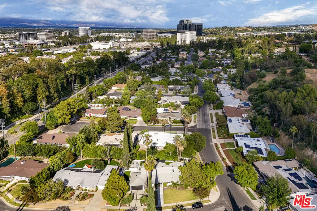 A masterclass in modern California luxury, this exquisitely reimagined single-story estate originally designed by renowned mid-century architect Charles DuBois is privately set on a tranquil cul-de-sac in the heart of Woodland Hills. From the moment you arrive, dramatic custom double doors reveal a residence defined by scale, light, and seamless indoor-outdoor living. Soaring ceilings and expansive sightlines frame an open-concept layout adorned with rich wood flooring and sophisticated Lutron lighting throughout. The grand living and dining spaces are anchored by a striking double-sided fireplace, while 12-foot folding glass doors dissolve the boundary between interior elegance and outdoor indulgence creating an effortless flow to a true resort-caliber backyard. At the heart of the home, a showpiece gourmet kitchen is designed for both elevated entertaining and everyday luxury, featuring premium Thor Kitchen appliances, a full side-by-side refrigerator and freezer, wine refrigeration, quartz surfaces, a statement pot filler, and a generous pantry. The primary suite is a private sanctuary complete with its own fireplace, direct access to the grounds, and a spa-inspired bath boasting dual vanities, an oversized multi-head shower, and a sleek LED-lit mirror. A secondary primary suite offers its own bespoke en-suite bath, ideal for guests or multigenerational living. Cutting-edge smart home integration enhances every aspect of daily living, including whole-home lighting, climate control, and a dual-zone indoor/outdoor Sonos sound system. A comprehensive Ring security system provides peace of mind. Outdoors, the estate transforms into a private oasis featuring a sparkling pool, expansive lawn, built-in fire feature, and a fully equipped outdoor kitchen with BBQ, cooktop, sink, and refrigeration perfectly curated for al fresco dining and entertaining under the California sky. No detail has been overlooked, with extensive upgrades including new windows, doors, plumbing, electrical systems, and a tankless water heater. Located just moments from the vibrant energy of Warner Center, premier shopping, and dining, this is a rare offering that embodies both timeless design and contemporary luxury.