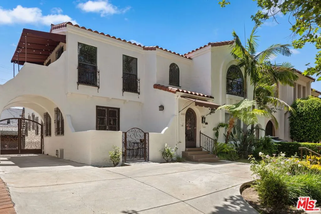 In prime Beverly Grove, this resplendent 1928 Spanish duplex dazzles with beauty and grandeur, delivering endless space where each unit lives like a large single family home - Upstairs unit delivered VACANT. Sheltered from the street by a lush front yard, the stunning residences conjure up Old Hollywood elegance, balanced by elevated modern materials. Exquisite period details include arched doorways and windows, hardwood floors, and vintage tile work. The living spaces are capacious and filled with natural light, perfect for repose or socializing. The grand kitchens feature full walls of cabinetry, generous counters, eat-in bars and open to the breakfast room and formal dining - the upstairs unit has a large covered patio and the downstairs a private front yard. Three bedrooms included for each unit featuring large closets and five baths. The flat yard has a large grassy area to lounge, play, and dine alfresco. Amenities include central AC/heat, private laundry rooms and ample storage. Separately metered for gas and electric. Two 2 car garages and plenty of off street parking. You're moments from KazuNori, The Little Door, Magnolia Bakery, Good Intentions, The Grove, LACMA and everything Beverly Grove has to offer.