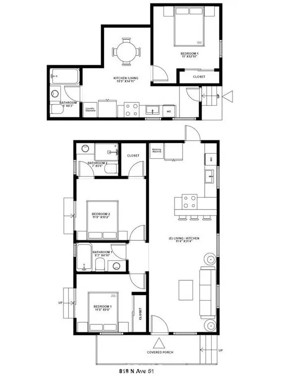 TURN-KEY DUPLEX | FULLY REMODELED | INCOME + FLEXIBILITY. Welcome to this beautifully renovated duplex offering the perfect opportunity for both owner-users and investors. Whether you’re looking to live in the 2 bed unit and rent the 1 bedroom unit, or maximize rental income, this property delivers versatility and strong upside. The front unit features 2 bedrooms and 2 bathrooms (approx. 777 sqft), designed with an open and inviting layout filled with natural light. The rear unit offers 1 bedroom and 1 bathroom (approx. 559 sqft), ideal for additional income, extended family, or a private workspace. Both units have been thoughtfully upgraded with modern finishes throughout, including new interior and exterior doors, updated lighting fixtures, and stylish wood flooring that creates a warm and cohesive feel. The kitchens have been remodeled with white shaker cabinets, marble countertops and backsplash, farmhouse sinks, open wood shelving, and brand-new stainless steel appliances including stove, dishwasher, and microwave—perfect for everyday living and entertaining. Bathrooms have been tastefully redesigned with honed marble tile flooring, upgraded Delta fixtures, and contemporary wood-acrylic vanities, offering a clean and modern aesthetic. The property is fully enclosed with a wood fence, providing added privacy. Turn-key condition, move-in ready, and positioned for strong rental potential. A must-see opportunity for investors and owner-occupants alike. Property is occupied at the moment, and it will be deliver vacant.