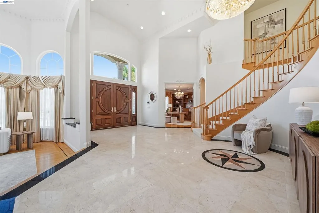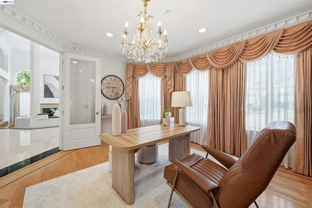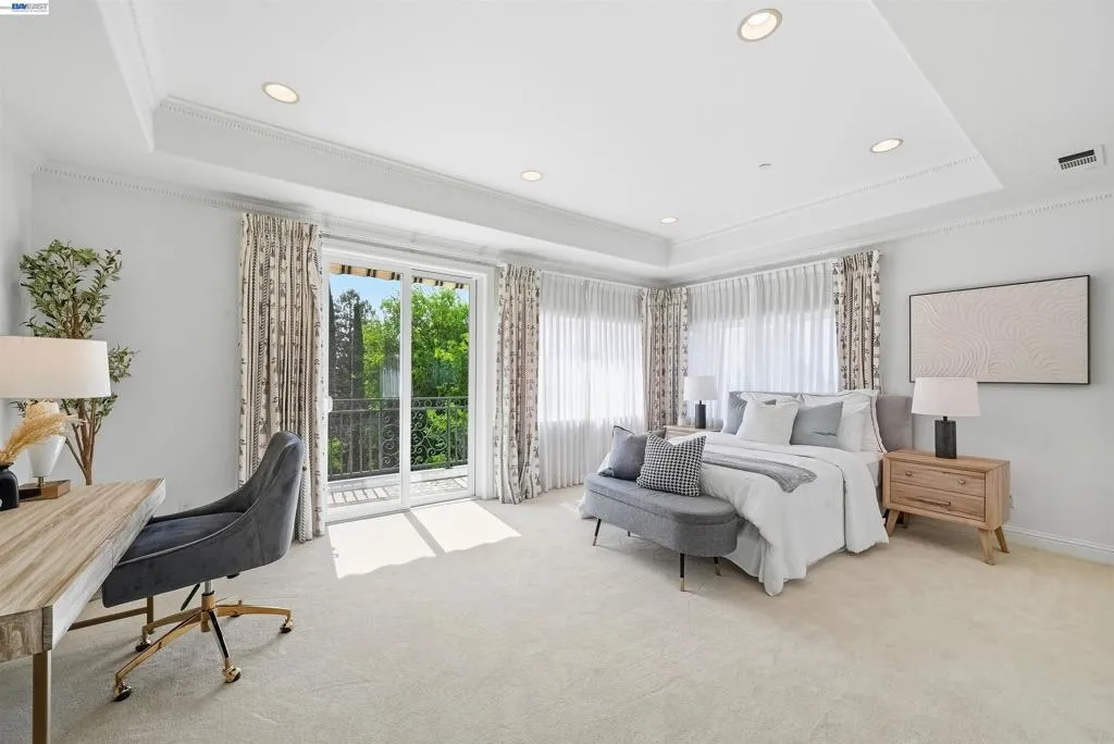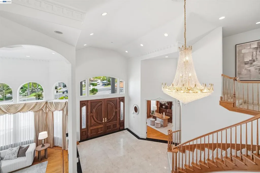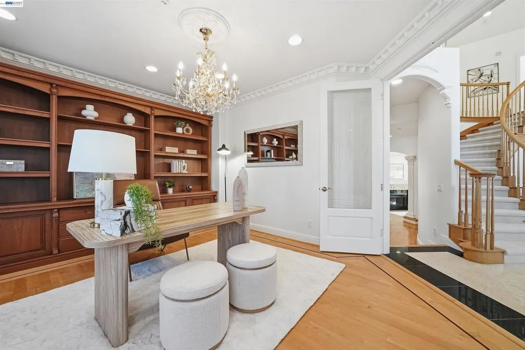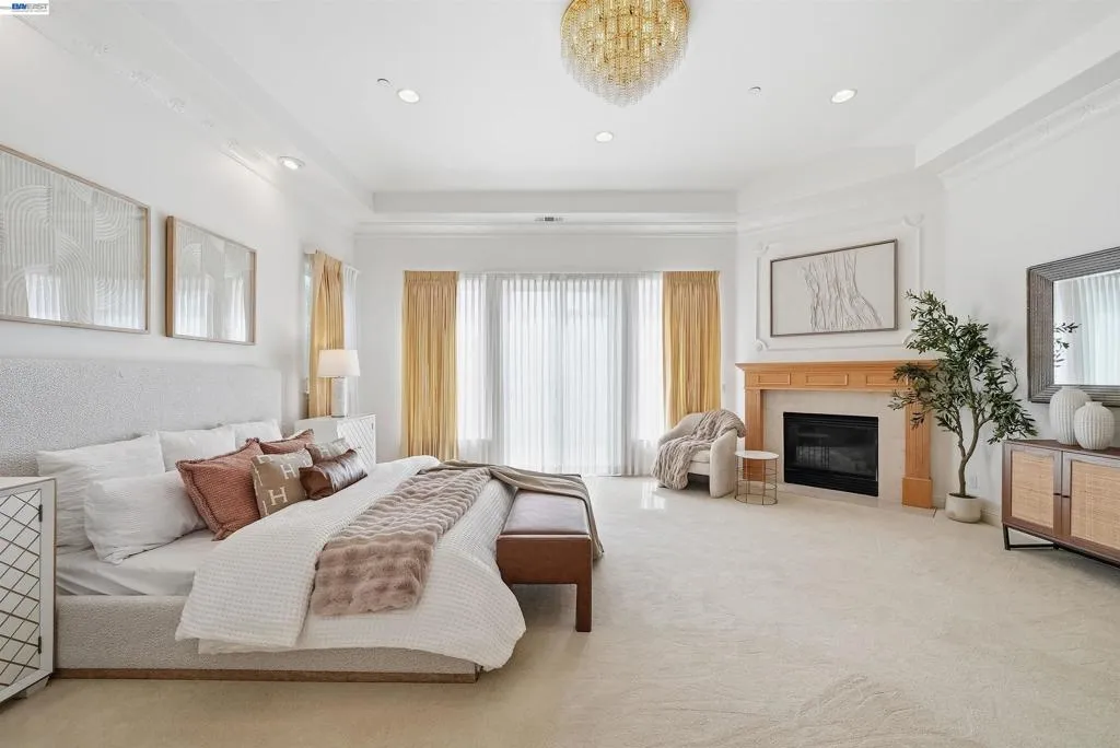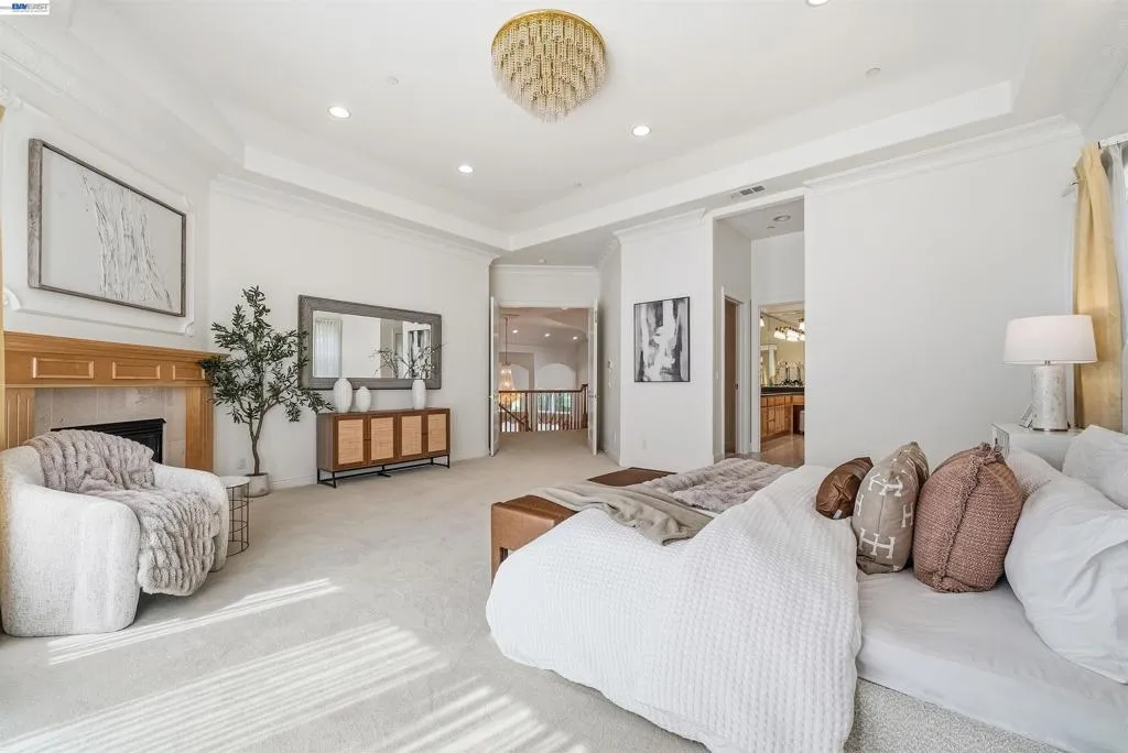 Discover luxury in the prestigious Mission San Jose neighborhood. Located in a desired gated community, the house spans an impressive 5,548 sqft of exquisite design with a water view. The 5B/5.5B residence seamlessly blends modern sophistication with timeless charm. Enter through grand double doors into a space defined by soaring ceilings and an open, light-filled layout. Three en-suite bedrooms are thoughtfully arranged across two levels, complemented by multiple open living areas that invite relaxation and connection. The chef’s kitchen features a central island, abundant cabinetry, and top-tier stainless steel appliances, including a brand-new Thermador refrigerator. A downstairs bedroom with a full bath is perfect for guests, while the formal private office with built-in luxury shelving, offers an inspiring workspace. The upstairs primary suite is your personal sanctuary, featuring a spa-like bath with a steam shower, a fireplace, and a spacious walk-in closet designed to meet all your wardrobe needs. Step outside to enjoy two expansive decks, a large backyard ideal for entertaining, and an extra-wide lot. The house comes with a 3-car garage. Recent upgrades, including plush luxury carpet on the second floor and a fresh paint throughout, ensure the home move-in ready. Located conveniently from the BART and Highways 680 and 880, commuting from the house is effortless. The community is located close to the top-rated schools—Mission San Jose Elementary, William Hopkins Middle School, and Mission San Jose High School. Don’t miss your chance to own the luxury living in one of the Fremont’s most coveted neighborhoods!