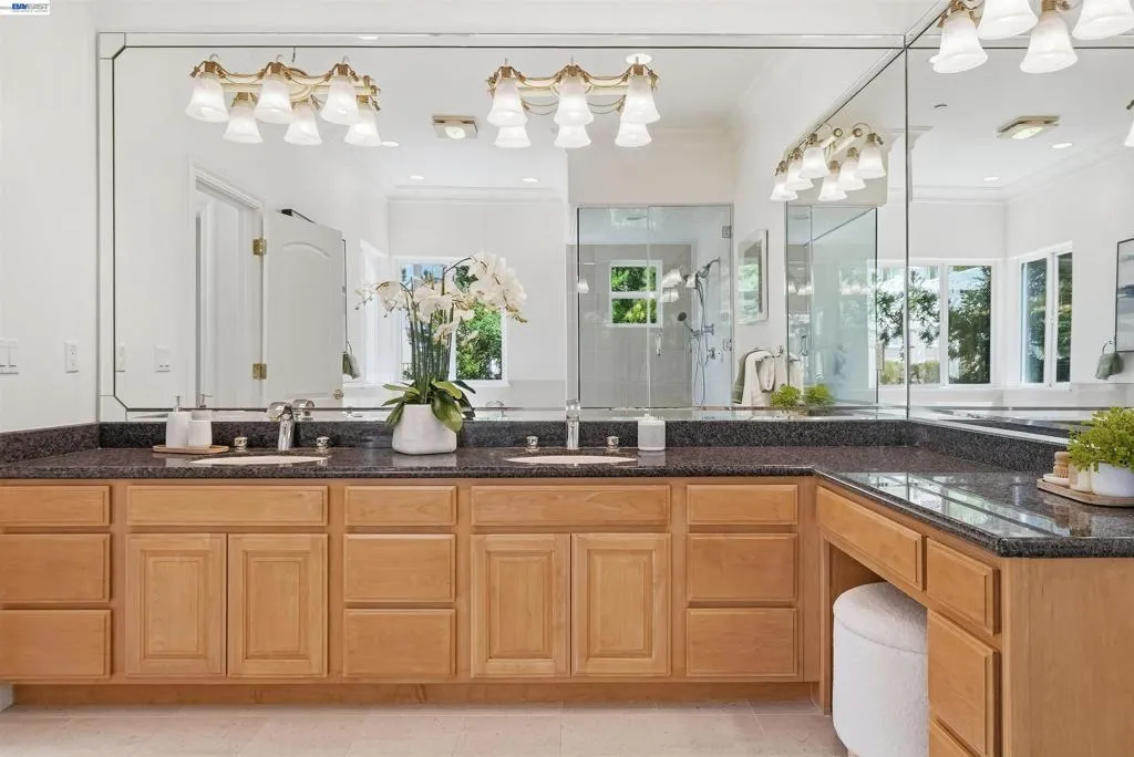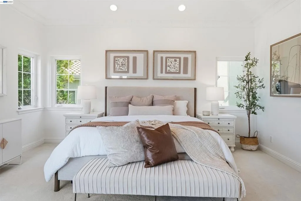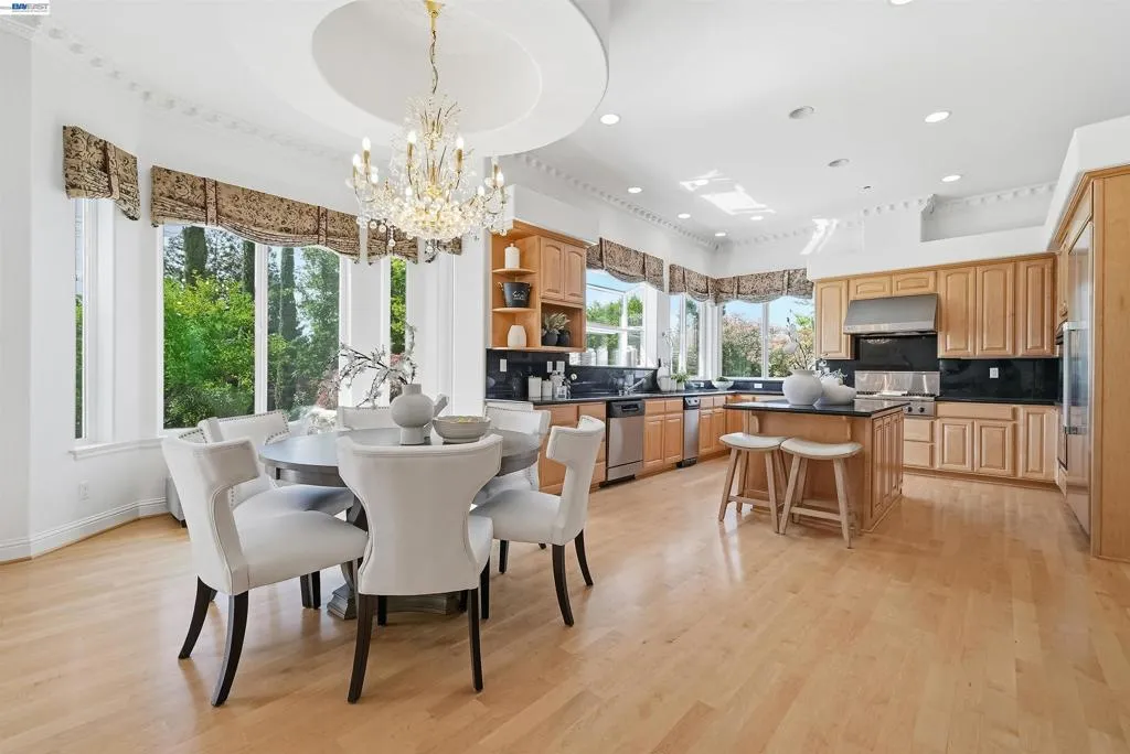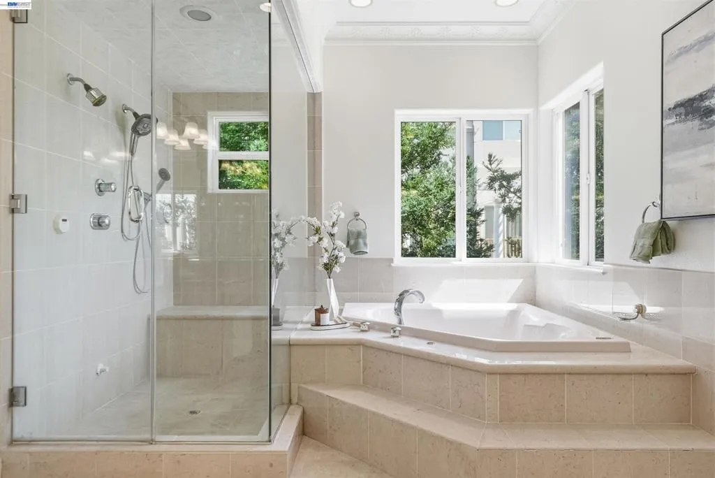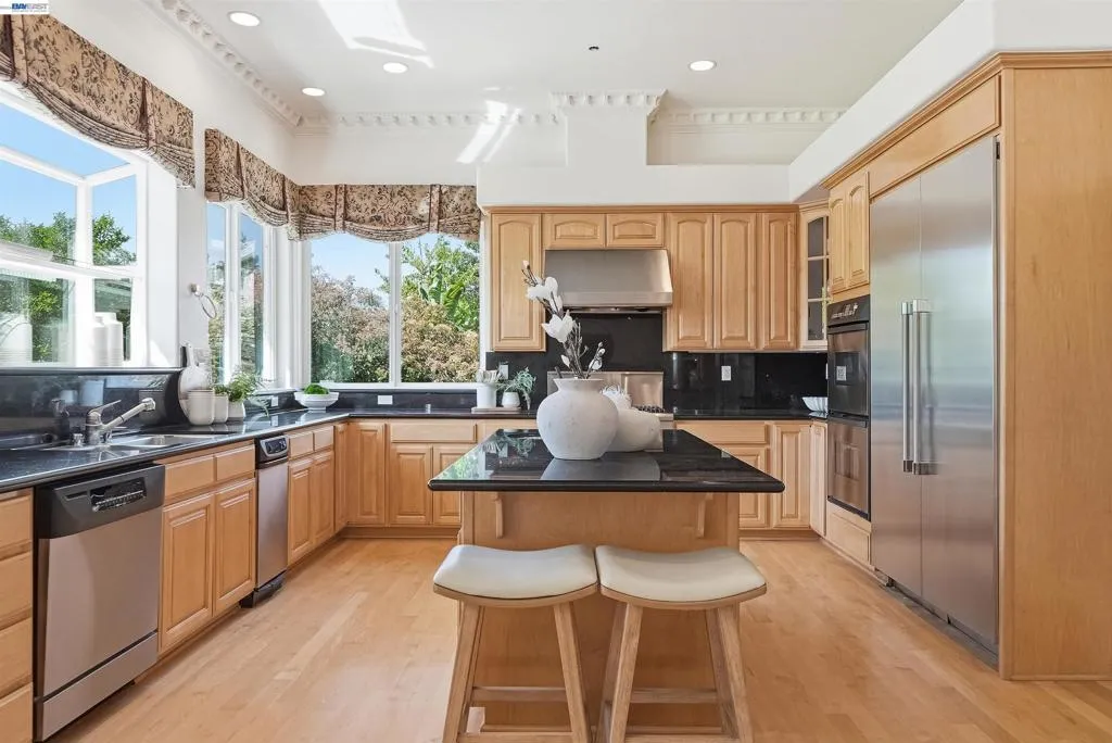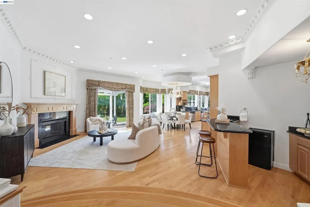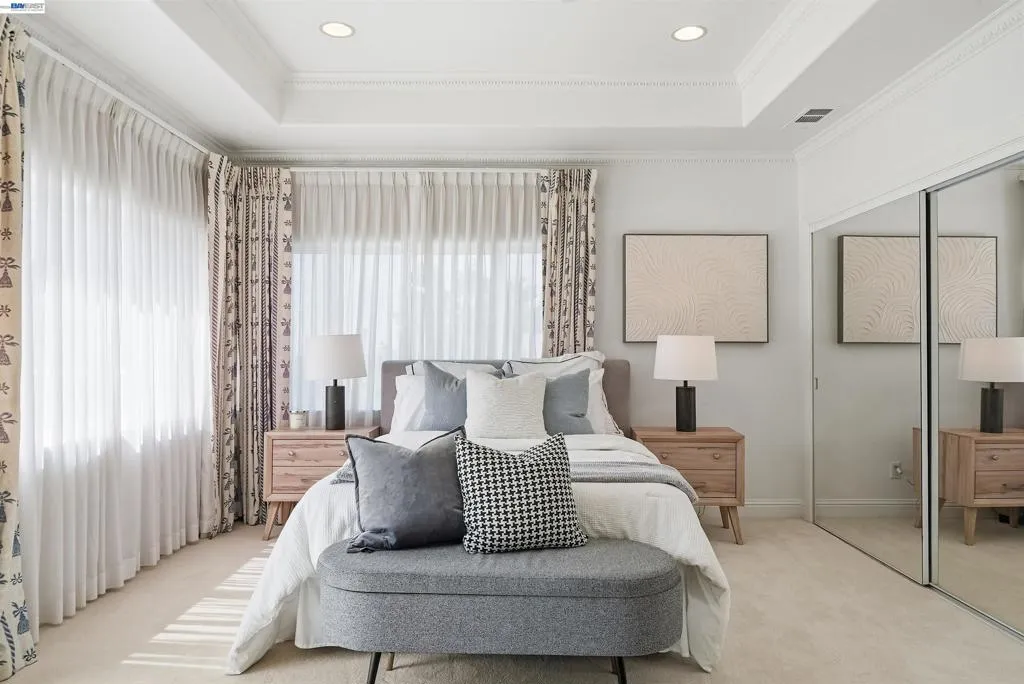 Discover luxury in the prestigious Mission San Jose neighborhood. Located in a desired gated community, the house spans an impressive 5,548 sqft of exquisite design with a water view. The 5B/5.5B residence seamlessly blends modern sophistication with timeless charm. Enter through grand double doors into a space defined by soaring ceilings and an open, light-filled layout. Three en-suite bedrooms are thoughtfully arranged across two levels, complemented by multiple open living areas that invite relaxation and connection. The chef’s kitchen features a central island, abundant cabinetry, and top-tier stainless steel appliances, including a brand-new Thermador refrigerator. A downstairs bedroom with a full bath is perfect for guests, while the formal private office with built-in luxury shelving, offers an inspiring workspace. The upstairs primary suite is your personal sanctuary, featuring a spa-like bath with a steam shower, a fireplace, and a spacious walk-in closet designed to meet all your wardrobe needs. Step outside to enjoy two expansive decks, a large backyard ideal for entertaining, and an extra-wide lot. The house comes with a 3-car garage. Recent upgrades, including plush luxury carpet on the second floor and a fresh paint throughout, ensure the home move-in ready. Located conveniently from the BART and Highways 680 and 880, commuting from the house is effortless. The community is located close to the top-rated schools—Mission San Jose Elementary, William Hopkins Middle School, and Mission San Jose High School. Don’t miss your chance to own the luxury living in one of the Fremont’s most coveted neighborhoods!