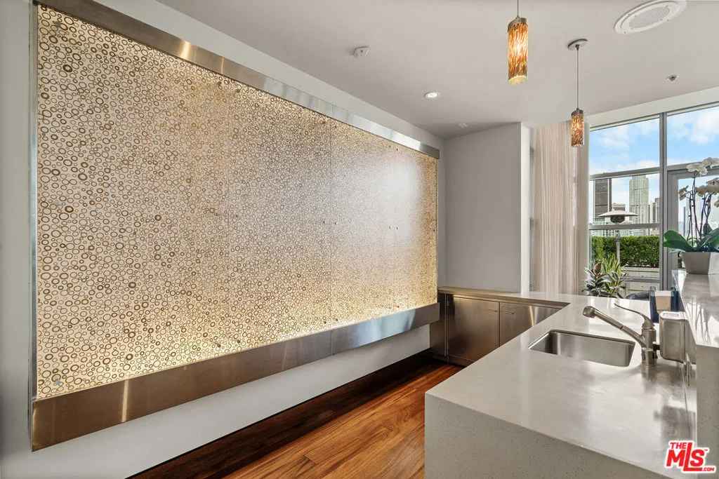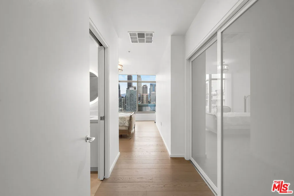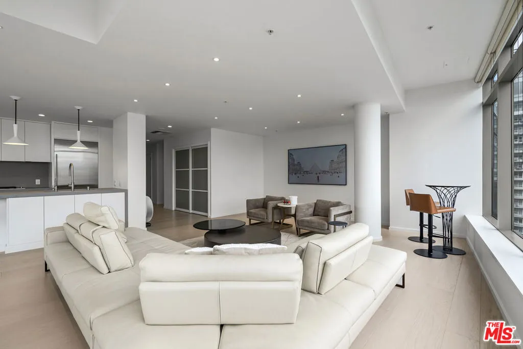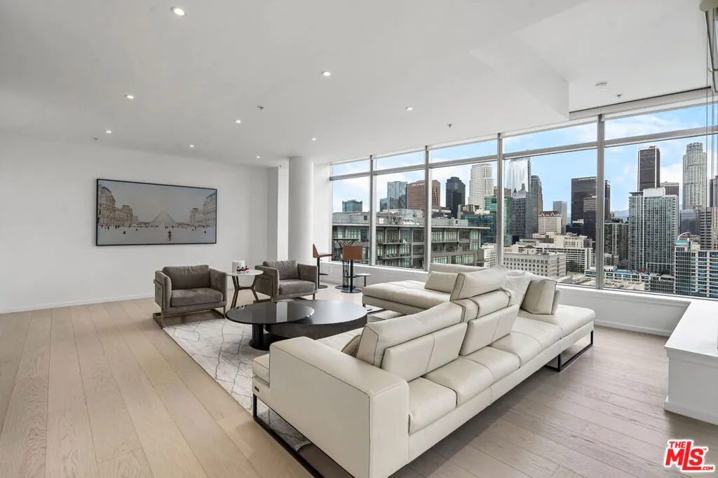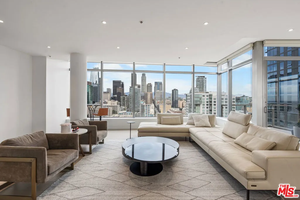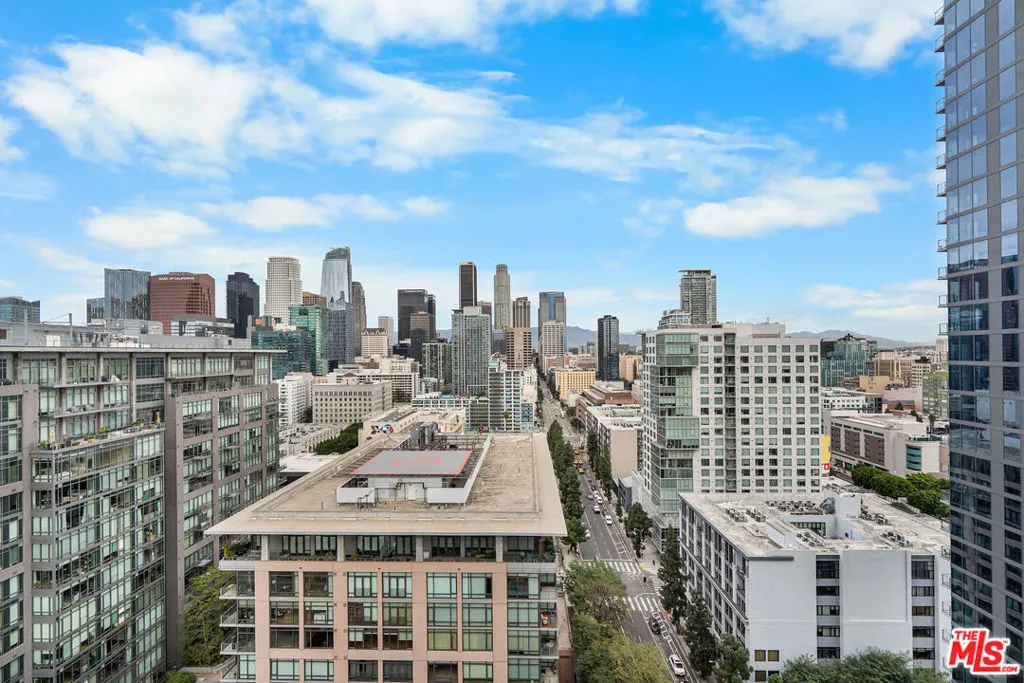 VIEW! VIEW! VIEW! Experience breathtaking panoramic skyline views from this exceptional northeast-facing corner residence at EVO, one of South Park's most sought-after modern high-rise communities. Flooded with natural light, this home offers a rare blend of privacy, openness, and dynamic city scenery from multiple vantage points. Recently transformed with approximately $300,000 in high-end upgrades, the residence showcases a refined contemporary design with thoughtfully curated finishes throughout. Expansive floor-to-ceiling windows and soaring 11-foot ceilings create an impressive sense of volume, enhancing the airy, loft-style living environment. The fully remodeled interior features premium materials, designer details, and eco-conscious enhancements. A sleek, modern kitchen is equipped with top-tier appliances and elegant finishes, seamlessly combining functionality with sophisticated style. Every detail has been carefully selected to deliver both comfort and visual appeal. Built in 2008 and LEED Silver certified, EVO is known for its iconic glass-and-steel architecture and resort-style amenities. Residents enjoy a 6th-floor sun deck with pool, spa, outdoor kitchen, lounge areas, and fire features, as well as a rooftop lounge with sweeping city views. Additional amenities include a state-of-the-art fitness center, 24-hour security, concierge services, and secured parking. Impeccably maintained and truly move-in ready, this residence presents a rare opportunity to own a fully upgraded corner unit in one of Downtown Los Angeles' premier lifestyle buildings ideal for those seeking design, comfort, and elevated urban living.