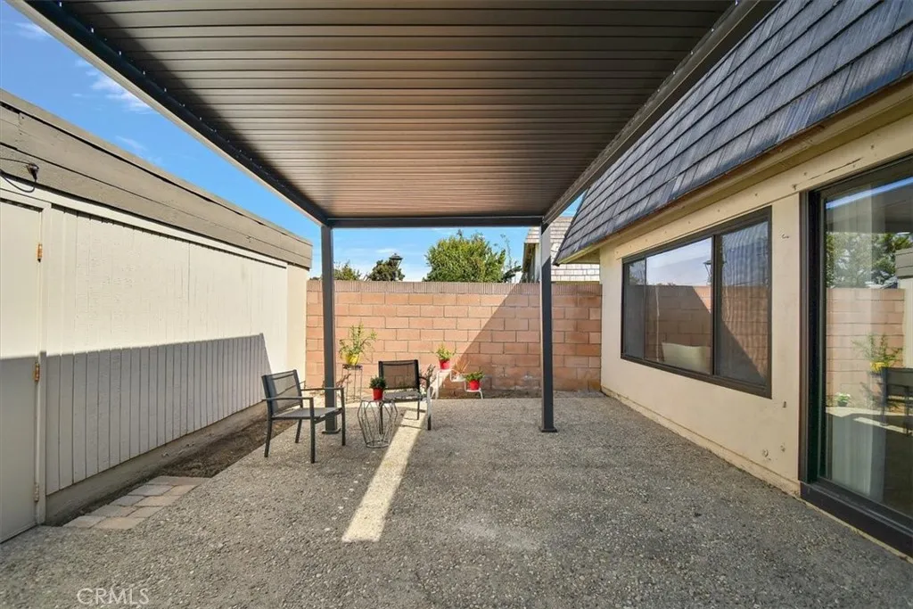 Honey, this is the one!Tucked gently within the beloved Tiburon community, this highly sought after single-level end-unit townhome feels like a quiet story waiting to be lived. Set on a premium lot with only one shared wall,it offers a sense of a single family home privacy that's both rare and comforting. Just steps from the sparkling pool and surrounded by extra reserved resident parking,convenience meets serenity at every turn. A detached 2-car garage and an additional reserved space by the front door welcome you home with ease. Bathed in natural light, the home unfolds in an inviting, flowing layout where each space gently blends into the next. A thoughtfully reimagined front bedroom now lives as a graceful den—its built-in counter and cabinetry blending seamlessly into the living space, creating an airy, versatile setting-perfectly suited for a home office, reading retreat, or lively gatherings. Warm gleaming wood flooring flows effortlessly through the living and dining areas, hallway, and den, tying each space together with elegance.The refined kitchen invites connection, adorned with granite countertops, a raised breakfast bar, stainless steel appliances, and generous cabinetry. It opens naturally to a flexible dining or family area, where conversations linger and moments gather, all extending toward the private backyard beyond. Both bathrooms are beautifully updated with granite vanities, custom cabinetry & mirrors, and tasteful tile finishes. Each bedroom is filled with soft natural light and serene views of lush greenbelts, while the primary suite offers a charming window seat—an intimate corner for reflection and rest. Beyond the walls, the backyard becomes a sanctuary. An expansive paved patio sits beneath a modern louvered pergola, its adjustable cover allowing sunlight or shade to dance as you wish—perfect for year-round enjoyment, from golden afternoons to gentle rainy evenings. Other exceptional upgrades: New 200-amp electrical panel & sub-panel,dual-pane windows,recessed lights,sensor shop light in garage, crown molding & baseboards, and termite clearance-details that quietly elevate everyday living. All within the award-winning ABC Unified School District and moments to shopping, dining, and freeway access, the Tiburon community offers 2 pool/spa areas, clubhouse, playground, and peaceful greenbelt paths.With so much to give and so much to feel…this isn’t just a home—it’s where your next chapter begins. MAKE THIS AMAZING HOME YOURS TODAY!
