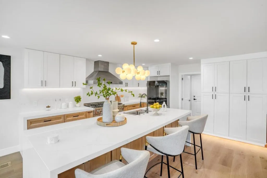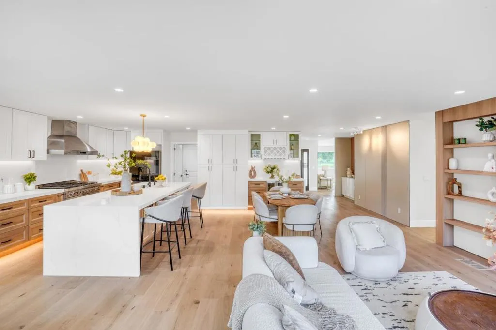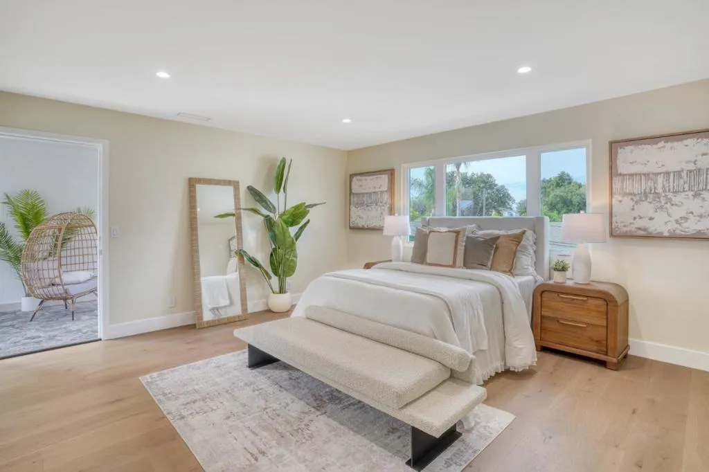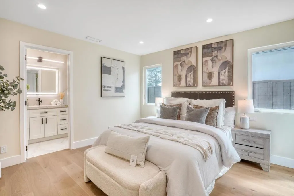 Exceptional Comprehensive Rebuild: This is a true back-to-the-studs transformation. The home features an entirely reconfigured floor plan and a brand new design, complete with all new plumbing, electrical, and insulation. It is essentially a brand new home from the inside out, providing the efficiency and peace of mind expected from new construction. This fully permitted Willow Glen residence offers 5 bedrooms, 5 bathrooms, and a dedicated den. The chefs kitchen shines with quartz countertops, a massive waterfall edge island, and refrigerator. A built in linear fireplace is seamlessly integrated into the custom wood feature wall. Engineered hardwood flows throughout. Every bathroom features a smart toilet, and downstairs bedrooms all offer ensuite baths. Sliding glass doors open from the living area to the backyard, inviting in natural light. The expansive primary suite includes a bright adjacent flex space that opens to fresh air. Located near Willow Glens beloved Lincoln Avenue shops and top rated schools, this is the forever home you have been waiting for.