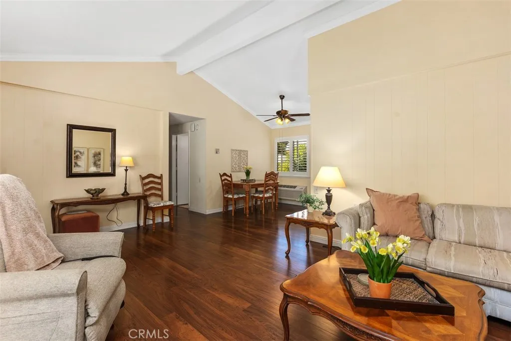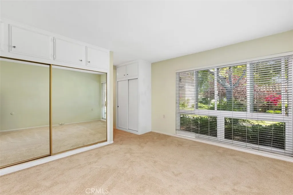 Don’t miss this desirable “SAN SEBASTIAN” model, offering the feel of a single-level, stand-alone home with no one above or below. The "C" Unit is attached to only one wall, enhancing privacy and livability. Ideally located with GREAT CURB APPEAL, enjoy convenient front access with nearby parking. A gated front patio welcomes you into a peaceful, greenbelt setting surrounded by mature trees. The home features both front and rear entries, a shared courtyard, and an additional large private patio—perfect for indoor-outdoor living and wonderful cross ventilation! The kitchen offers abundant cabinetry and counter space, a window over the sink, and direct outdoor access. The well-designed layout includes two separate bedrooms for privacy. Both bedrooms feature brand-new carpet, with the primary suite offering mirrored closet doors and a tranquil view. A unique opportunity: both bathrooms can be fitted with windows, increasing natural light and ventilation. One bath features a tub/shower combo; the other, a step-in shower, both with large vanities and grab bars. Additional features include cathedral ceilings, laminate flooring, plantation shutters, smooth ceilings, excellent natural light, nearby carport parking with guest spaces, and exterior storage. Add all this to the amenities offered by Laguna Woods Village, a 55 plus community with a 27 hole championship golf course and 9 hole executive course, tennis and pickleball, fitness centers, pools, an equestrian center, community gardens, an art studio, a world class woodshop, over 200 clubs and organizations, free community bus service, economical RV storage, guard gated security, and an ideal location approximately 6 miles from Laguna Beach. Country Club living at its best. Carport 2096, Space 5. See the virtual tour for more details.