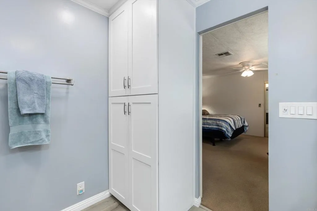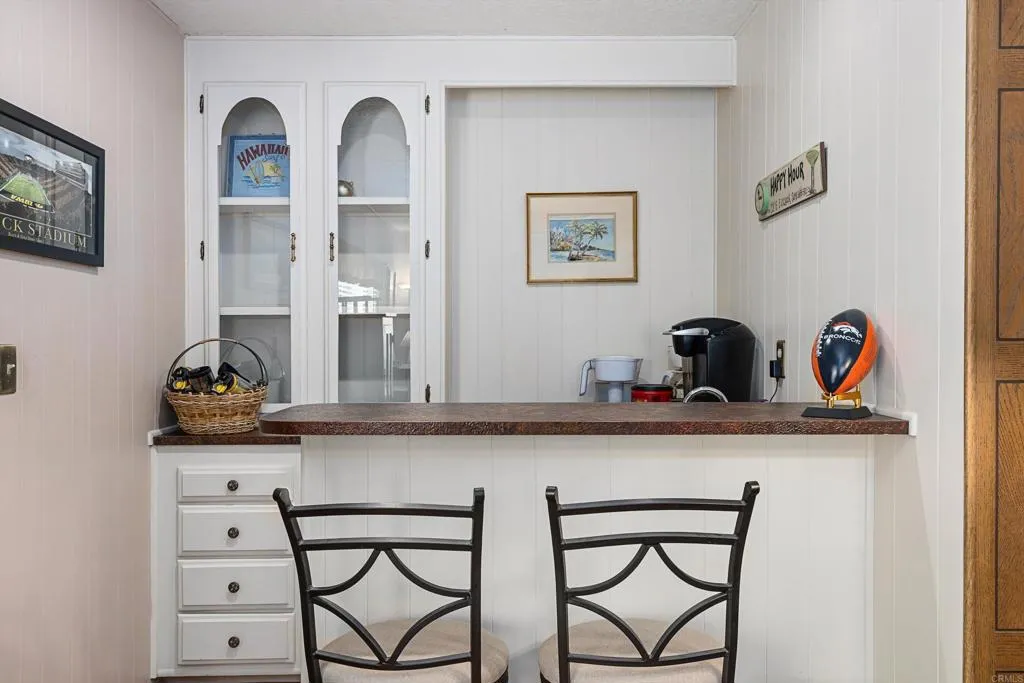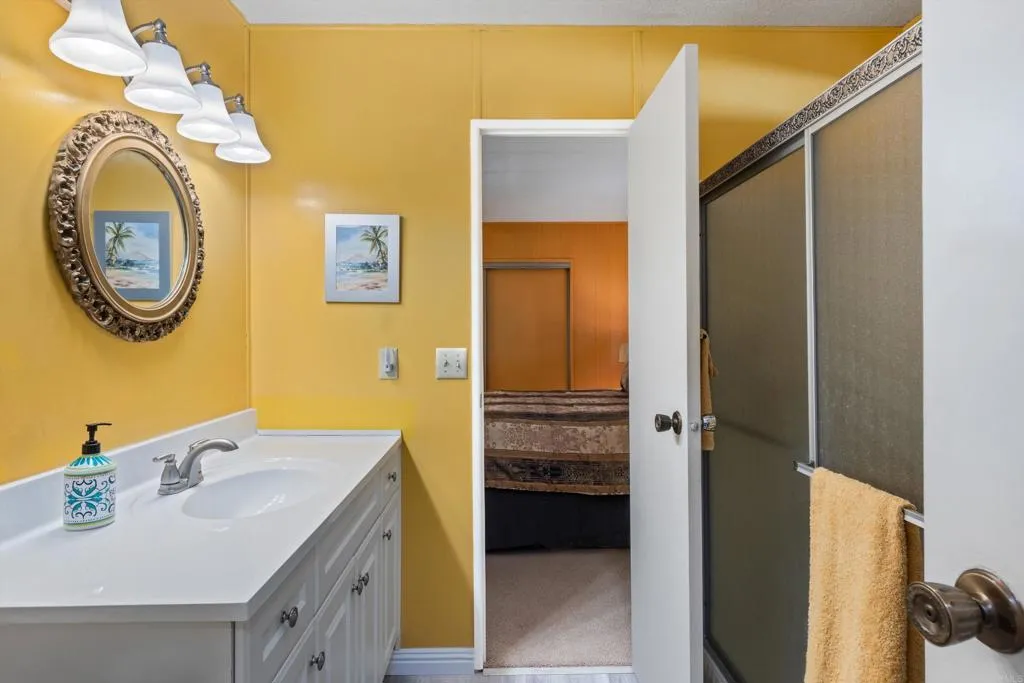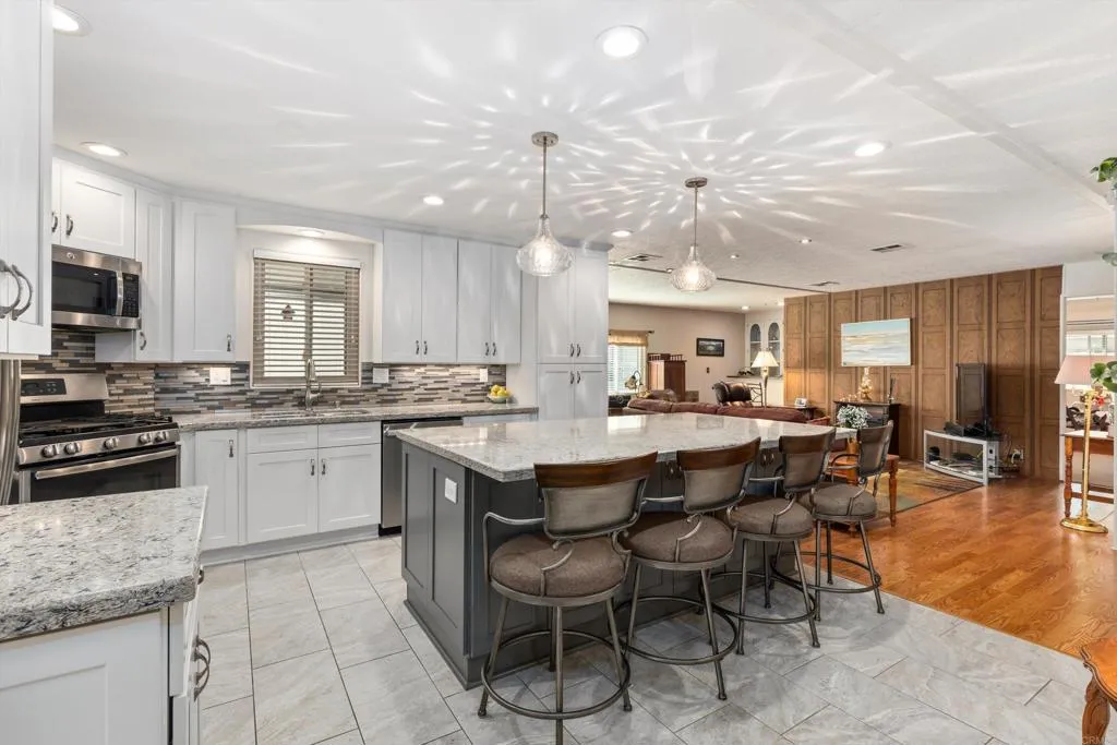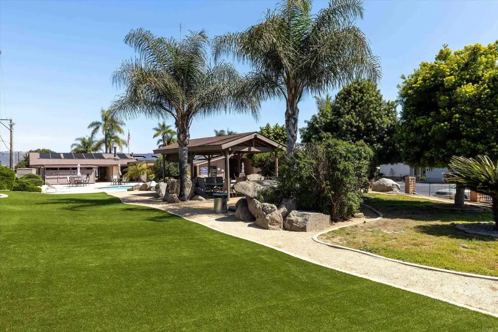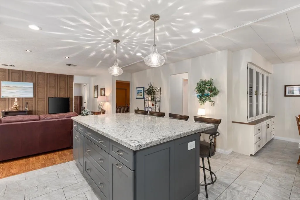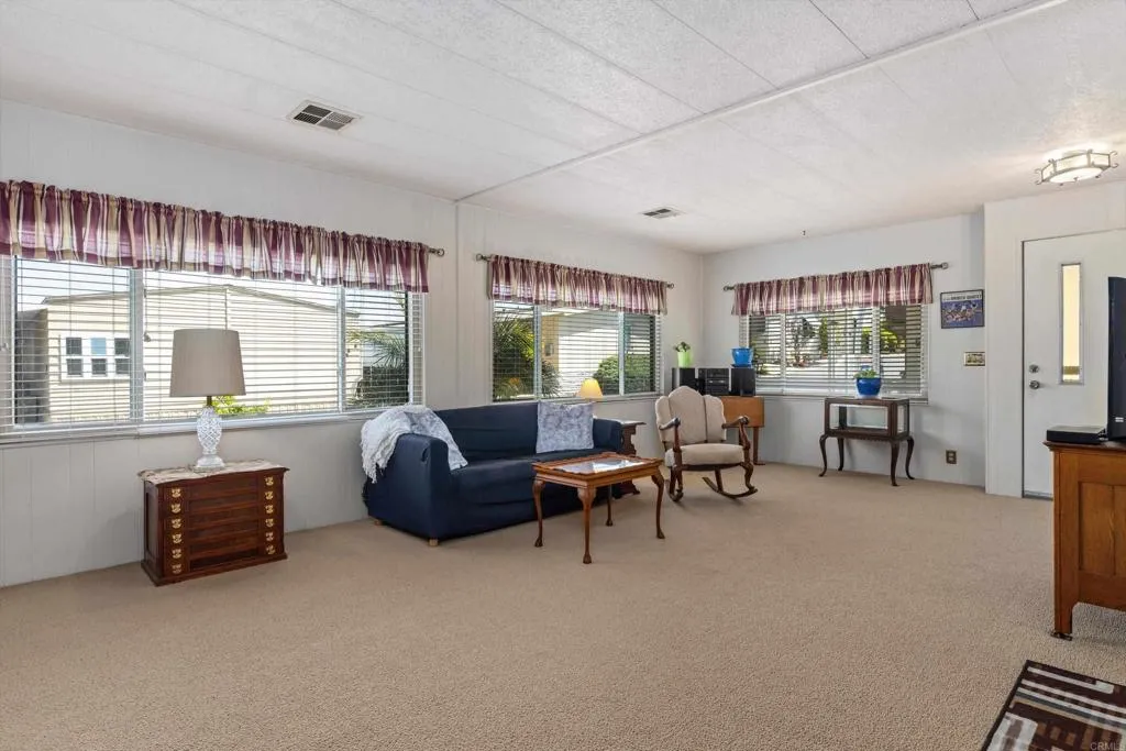 Updated corner-lot home in a highly desirable 55+ resident-owned (land-owned) community—no space rent and eligible for VA & Fannie Mae financing! This spacious three-section POST HUD manufactured home offers a well-designed floorplan with separate living and family rooms, ideal for both relaxing and entertaining. The fully remodeled kitchen (2017) features a large island with bar seating, stainless steel appliances, and convenient pull-out drawers, opening seamlessly to an expansive family room with a wet bar. Both bedrooms are generously sized and feature en-suite bathrooms, including a primary suite with dual sinks and a walk-in closet. Recent upgrades include a newer roof, dual-pane windows, and fresh exterior paint. Additional highlights include a large storage shed, lemon tree, and a prime location near guest parking and the community laundry room. Low HOA of approximately $272/month includes water, trash, cable, and high-speed Spectrum internet. Enjoy resort-style amenities including a clubhouse, pool, indoor spa, gym, library, billiards room, RV parking (subject to availability), and beautifully maintained greenbelts with picnic and BBQ areas. Ideally located near shopping, dining, medical facilities, Costco, and Jack’s Pond Park & Nature Center, with convenient access to Highways 78 and I-15—offering both accessibility and a peaceful setting.