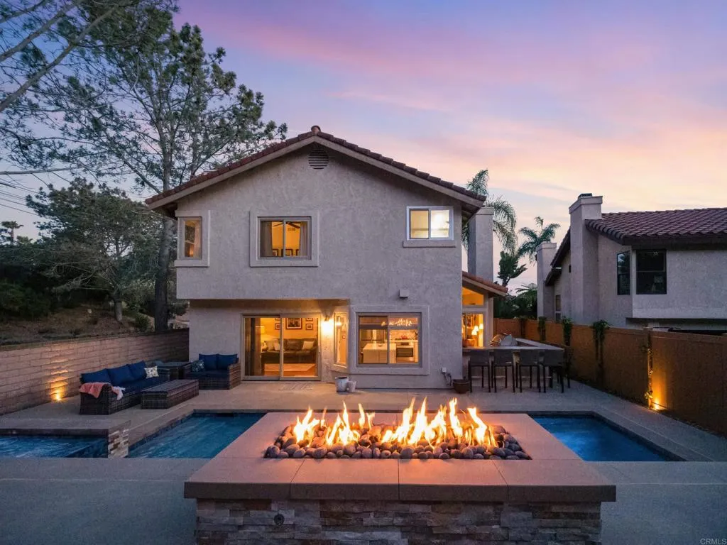 Nestled at the end of a quiet cul-de-sac in the highly desirable San Remo community of Carmel Valley, this beautifully remodeled home offers a rare blend of privacy, luxury, and natural beauty. Backing onto a serene greenbelt with access to scenic hiking trails, the property provides a peaceful retreat while still being close to everything San Diego has to offer. The setting is ideal for those who value both tranquility and convenience, creating a true sense of escape without sacrificing accessibility. Inside, the home features thoughtful upgrades and elegant finishes throughout. A modern chef’s kitchen is equipped with sleek stainless steel appliances, while stylish laminate flooring adds warmth and durability to the open, light-filled living spaces. Designed with both comfort and entertaining in mind, the layout seamlessly connects indoor and outdoor living, making it perfect for everyday living as well as hosting guests. The backyard transforms the home into a private resort-style oasis. A stunning state-of-the-art pool with a cascading waterfall serves as the centerpiece, complemented by lush landscaping that enhances both beauty and privacy. The outdoor living experience is elevated with a fully equipped cooking area featuring premium LYNX appliances, including a high-performance gas grill with infrared capabilities—perfect for entertaining and al fresco dining. As the sun sets, the custom fire pit creates the perfect ambiance for relaxing evenings or gathering with friends, capturing the essence of Southern California living at its finest. Located within walking distance to Carmel Creek Elementary School, Carmel Valley Middle School, and just minutes from Torrey Pines High School, the home is positioned within one of the area’s top-rated school districts. Residents also enjoy close proximity to One Paseo, a vibrant destination for dining, shopping, and entertainment, along with easy freeway access and a short drive to San Diego’s renowned beaches. Carmel Valley is known for its exceptional quality of life, offering a family-friendly atmosphere, beautiful parks and trails, and a strong sense of community. With its prime location, luxurious upgrades, and stunning indoor-outdoor living spaces, this home represents the perfect opportunity to experience the very best of coastal San Diego living.