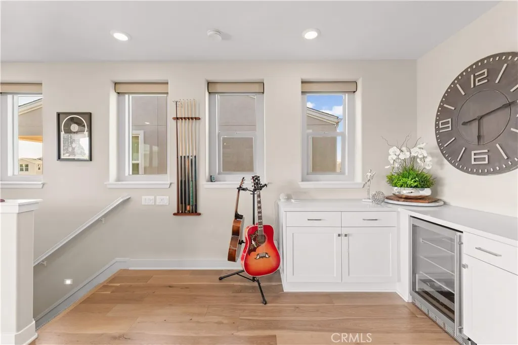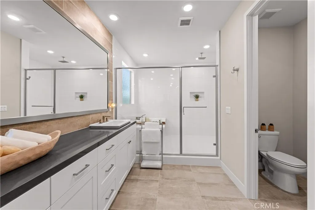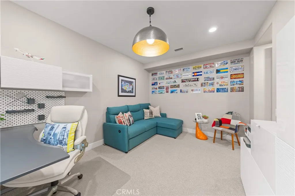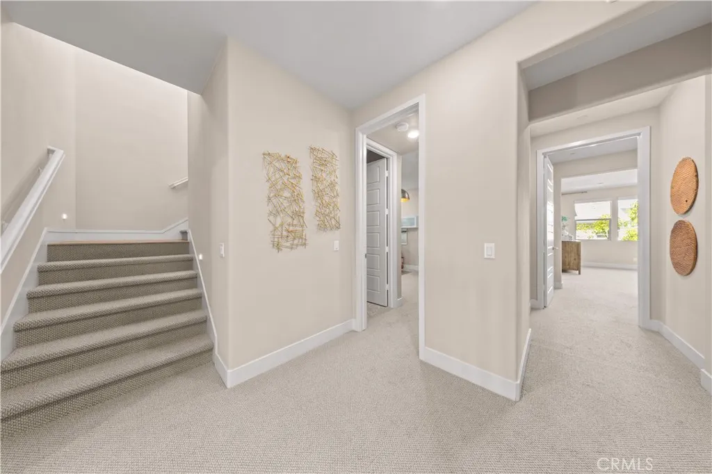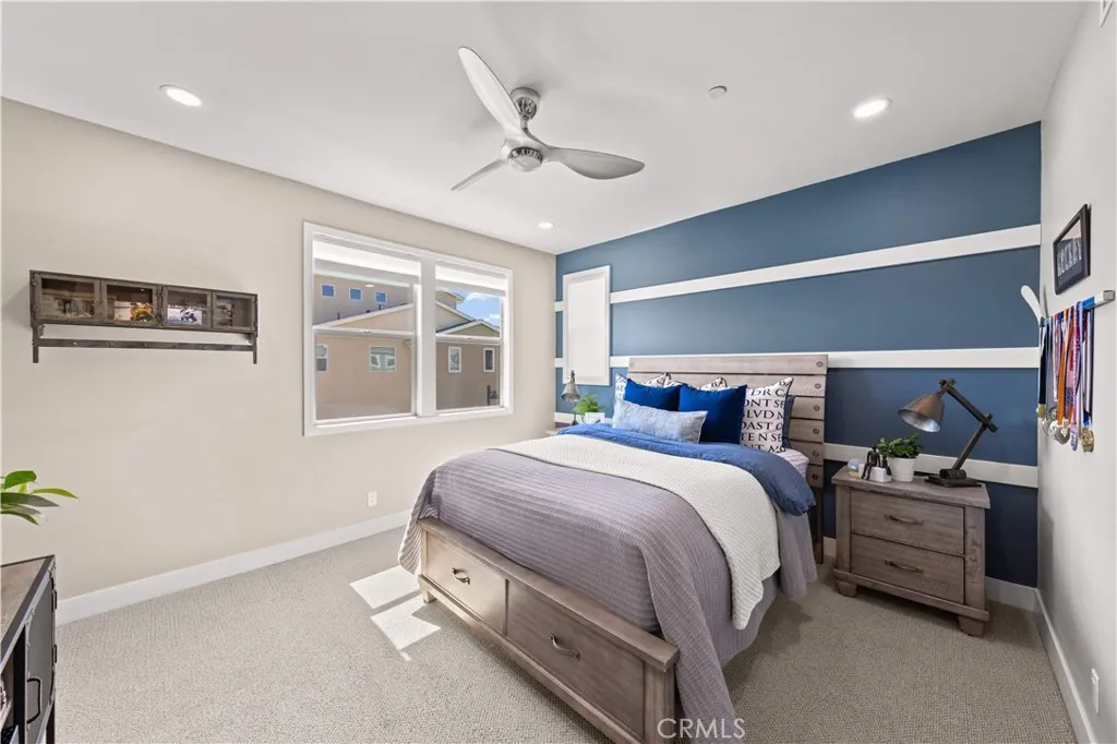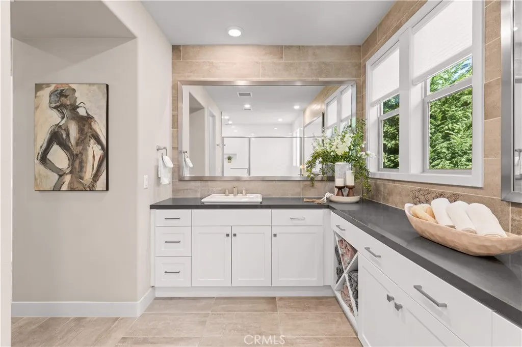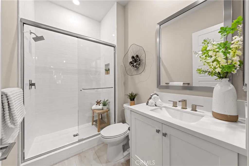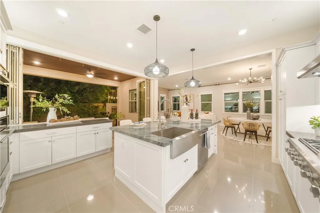 Former model home with designer upgrades, a fully integrated smart home system, a resort-style backyard, and a rare third-floor retreat with open views—ideally positioned on a premium lot with no drive-through traffic and no direct front-facing neighbors, directly across from park and community amenities. This extensively upgraded and meticulously maintained residence offers approximately 3,134 square feet of refined living space, featuring 4 bedrooms, 4 full bathrooms, and 2 powder rooms across three thoughtfully designed levels. A dramatic two-story entry, abundant natural light, and an open-concept layout create a bright and welcoming atmosphere, delivering a true like-new living experience. The gourmet kitchen serves as the centerpiece of the home, showcasing top-of-the-line appliances, upgraded cabinetry, an expanded porcelain island, and a sleek porcelain backsplash—seamlessly connecting to the living and dining areas for both everyday living and entertaining. A desirable first-floor bedroom suite with a full bath offers flexibility for guests or multi-generational living. Designed for modern convenience, the home features a fully integrated smart system with automated blinds, Lutron lighting and fan controls, and app-based access for AC and entry. Step outside to a private, resort-style backyard retreat featuring a built-in kitchen, fireplace, water features, and lush landscaping—creating an exceptional outdoor living experience. Upstairs, the primary suite offers generous space, natural light, and a spa-inspired bathroom with upgraded finishes. Two additional bedrooms complete the second level, and notably, every bedroom features its own en-suite bathroom and custom built-in closet system. The third floor offers a versatile entertainment space with direct access to a private outdoor patio, enhanced with an awning and privacy fence—perfect for a lounge, office, or media room with beautiful open views. Additional highlights include a finished garage with epoxy flooring, built-in cabinetry, overhead storage, Tesla charger, and an expanded driveway. Ideally located within walking distance to Cadence K-8, minutes to Portola High School, and near the future Great Park development, including botanical gardens, lakes and the library. Select furniture and designer decor may be included, offering a turnkey opportunity.