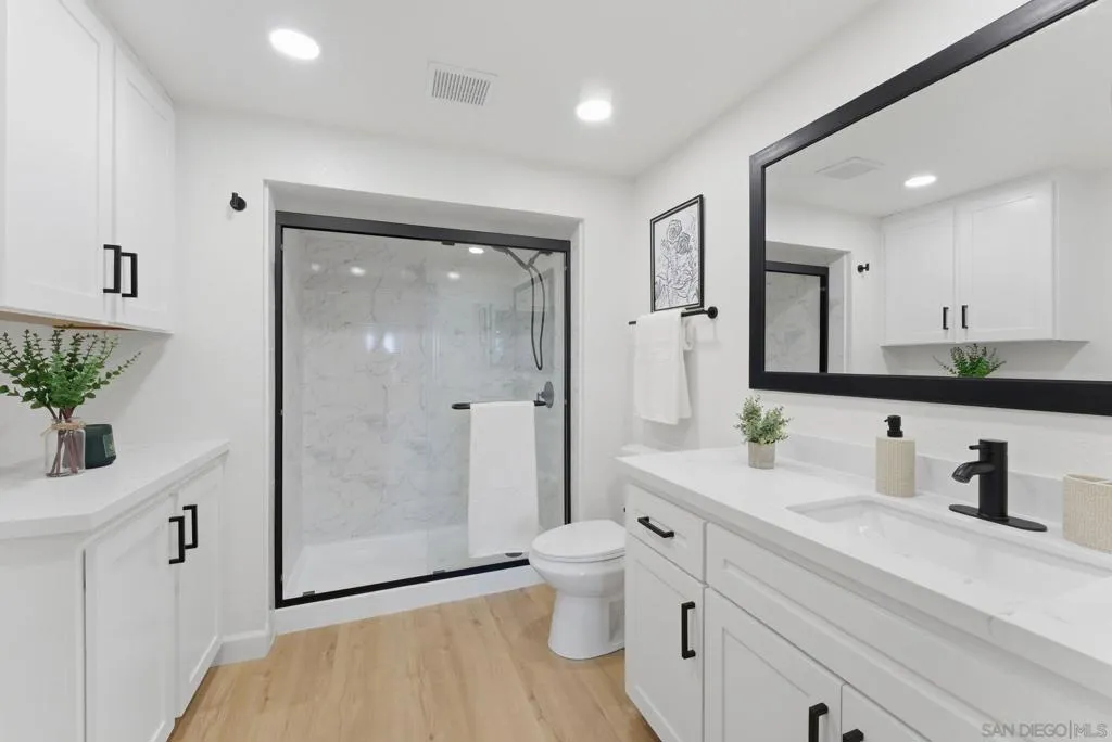 Experience resort-like coastal living in this completely remodeled condo in Sea Point Tennis Club of La Costa. Recently renovated with a new kitchen, new bathrooms, LVP flooring, includes dual pane windows/sliders, and more. The spacious living room includes a custom fireplace and a wet bar. In the back you have a private patio with no neighbors behind, and elevated views of the surrounding hills with a partial view of the lagoon. Full size washer/dryer is included in the hallway closet. This unit includes one private detached garage, as well as one assigned parking space. Sea point Tennis Club of La Costa is known for its beautifully maintained grounds and exceptional amenities, including multiple tennis courts, pool, spa and scenic walking paths. Don't miss out on your chance to enjoy all that La Costa/Carlsbad has to offer- just minutes from top-rated schools, pristine beaches, golf courses, shopping, dining, and freeway access.