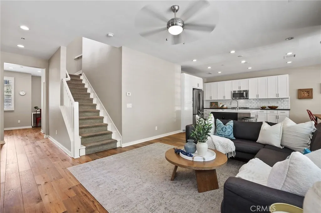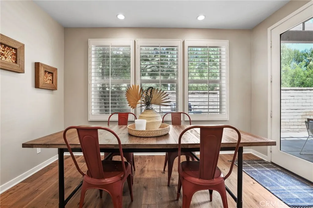 Absolutely Stunning On-Trend Home located on a Premium Private Lot! Featuring 3 bedrooms, 2.5 bathrooms, plus a versatile Office Nook, this Model-Quality Residence has been Meticulously Maintained offering the best of California Outdoor Indoor Living. Step inside to find a Warm Modern Vibe with upgraded Neutral Toned Wood Flooring throughout the first level. The Open-Concept great room is designed for modern living, showcasing Recessed Lighting, Custom Neutral Toned Paint, and a Bright Inviting Interior. Sunlight fills the space, highlighting the Private Backyard Oasis just beyond. A Spacious Designated Dining area makes entertaining easy and seamless. The Gourmet Kitchen is a true showstopper, complete with Upgraded Stainless Steel Appliances, White Cabinetry, Quartz Countertops, Artisanal Mosaic Tile, and Quartz Center Island. Outside, the Tranquil Backyard delivers serious WOW factor with professionally designed with Wood Trellis, Pavers, Built-in Fire Pit, and a Gas BBQ area. Gorgeous Lush Landscaped Views this Backyard Retreat is perfect for Relaxation and Entertaining. The first floor also offers a Highly Desirable Versatile Office Nook and convenient half bath. Upstairs, you’ll find all three bedrooms and a laundry room. The Primary Suite is Light, Bright, and Spacious. Indulge in with Sweeping Mountain Views and Upgraded On Trend Engineered Hardwood Flooring. Start your New Wellness Routine in the Spa-Like Primary Bathroom features Quartz Countertops, Stylish Tile, a Restorative Glass Walk-InSshower, and Spacious Walk In Closet. This home comes packed with Modern Upgrades including Solar, Tankless Water Heater, Spacious 2-Car Garage w/ Work Bench and Storage. Residents of Baker Ranch enjoy Resort-Style Amenities, including 3 Sparkling Pools, 8 Parks, Scenic Hiking and Biking Trails, Tennis Courts, Beach Volleyball, Basketball, a Dog Park, Clubhouse, and more. With NO MELLO ROOS AND LOW HOA...this property is truly a rare find. Come see it today!