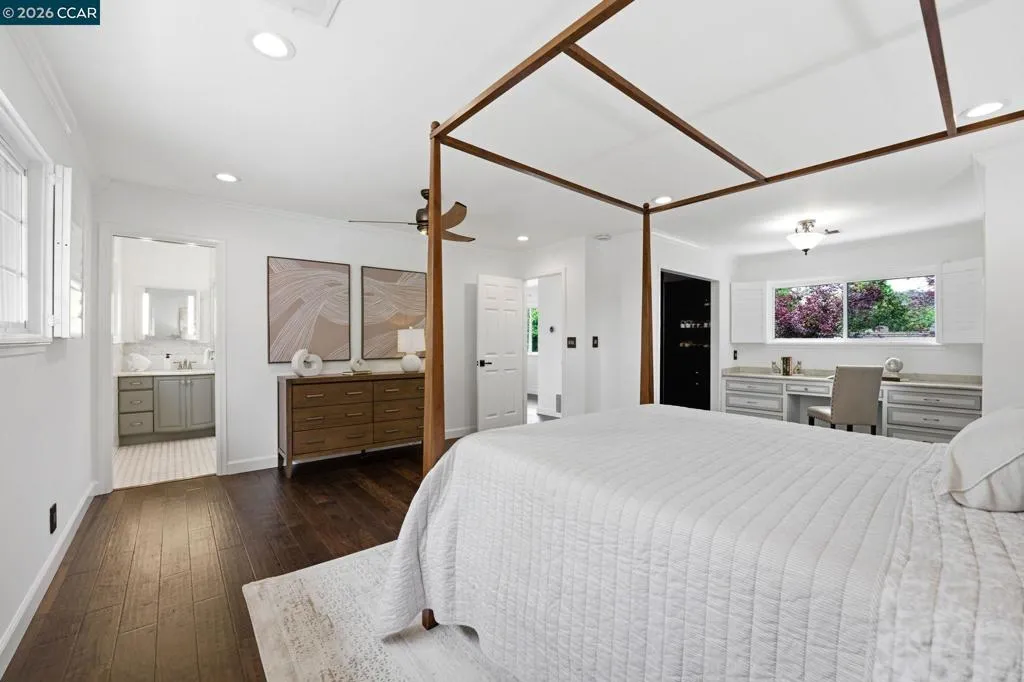 Step inside and you’ll feel it—this is home. Thoughtfully maintained and upgraded over the years, this 4-bedroom, 3-bath Northgate residence sits on over a flat quarter-acre and reflects true pride of ownership. It’s not just what you see, it’s how everything has been cared for. The remodeled kitchen is both functional and inviting, featuring a walk-in pantry, granite counters, soft-close cabinetry, stainless appliances, and gas cooking—opening seamlessly to a light-filled family room where everyday living happens. Formal living and dining spaces offer flexibility, highlighted by engineered hardwood floors, crown molding, plantation shutters, recessed lighting, and a classic white-brick fireplace. A full bedroom and bath on the main level creates options—perfect for guests, extended family, or a private office setup. Upstairs, a loft landing adds an additional living space and overlooks the backyard. The primary suite is spacious and filled with natural light, complete with custom built-in closets. Additional bedroom also include built-ins and extra storage—something you don’t always find but truly appreciate over time. You’ll also find updated bathrooms, a generously sized laundry/utility room, whole-home water filtration, and an attached 2-car garage with a solid wood door and bonus attic storage. There is also potential for RV or additional parking—adding flexibility for your lifestyle needs. And then there’s the backyard. Designed for real living, not just looks—lush lawn, mature trees, a covered gazebo, bocce-style court, and intentional landscaping with lighting throughout. This is where you host, unwind, and enjoy staying home. Located in the highly desirable Northgate community with access to top-rated schools, nearby hiking trails, Heather Farm Park, Boundary Oak Golf Course, BART, and downtown Walnut Creek. Homes like this aren’t just about features—they’re about how they live. And this one truly delivers. Come experience it for yourself.