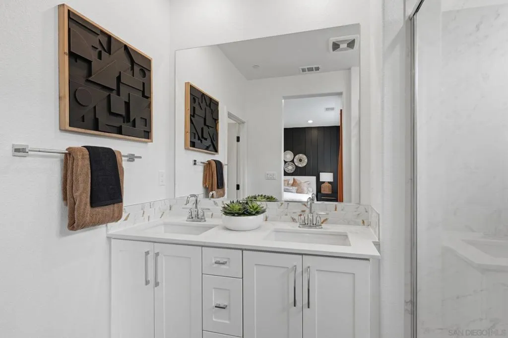 This home is a former model with an upgraded backsplash and upgraded flooring, and is ready for moving in. On the first floor of this new three-story townhome, a convenient office offers a versatile space ready to be transformed to meet the needs of the home. On the second floor, the kitchen, dining area and Great Room share a footprint in the open-concept layout, with a deck offering convenient outdoor access. Three bedrooms can be found upstairs, including the expansive owner's suite. A two-bay garage completes the home. The Trails is a brand-new masterplan with single-family and attached homes in Carmel Mountain Ranch, San Diego, CA. Five communities of attached homes now selling! Lavender is a collection of brand-new townhomes for sale within The Trails masterplan in San Diego, CA. Residents enjoy a great central location and easy access to I-15 and 56 freeways for simplified commutes and getting around. The community is conveniently close to shopping at Carmel Mountain Ranch and UTC, 4S Ranch, Del Sur and more. Students will attend schools within the Poway School District.