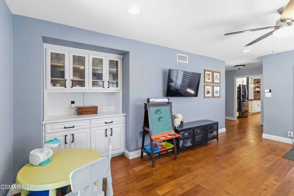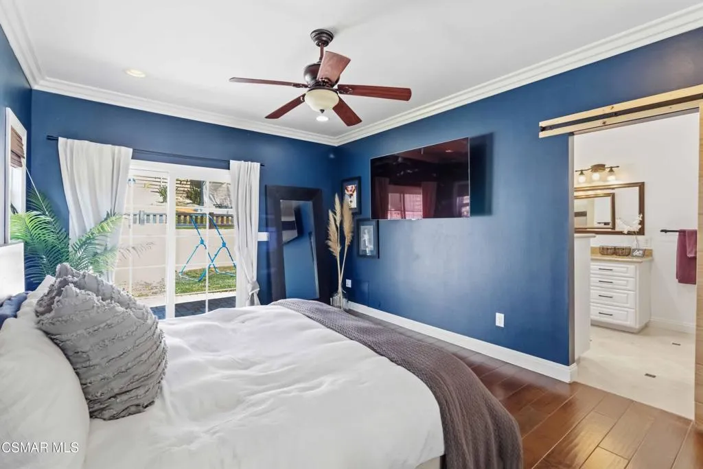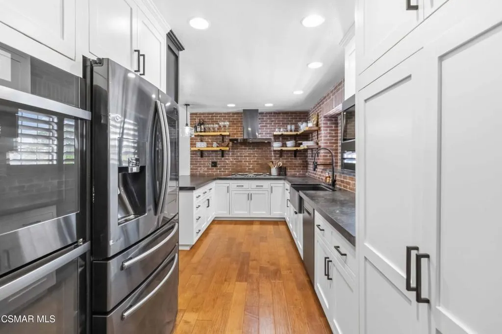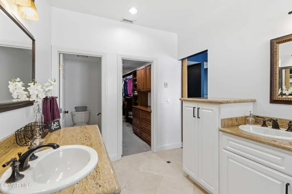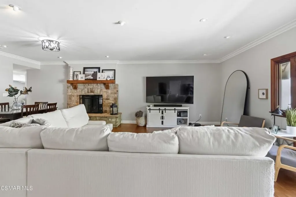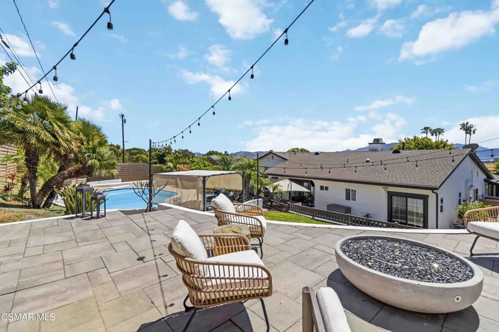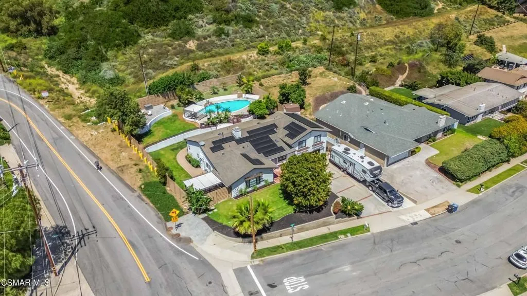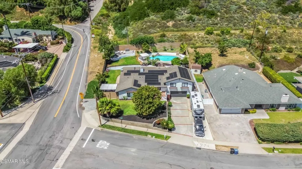 Welcome to your private sanctuary in prestigious Camarillo Heights. Incredibly spacious, the home offers four bedrooms, a dedicated office, nursery or potential fifth bedroom, two and a half bathrooms, and separate living and family rooms designed for optimal comfort. The primary bedroom is located on the first floor with luxury bath featuring granite countertops & heated floors, walk in closet and additional mirror wardrobe. Office/ nursery/room also located on the first floor. Three secondary bedrooms up a short flight of stairs share a second floor. This impeccably renovated residence situated on a spacious corner lot offers the perfect blend of high-end aesthetics and cutting-edge sustainability. The heart of the home is a chef's dream featuring a newly renovated kitchen anchored by soapstone countertops, custom parota floating shelves and a classic brick backsplash. High-performance dark stainless appliances--including a smart double oven with built in dual air fryers, convection & kosher features--pair perfectly with a smart range hood and convection microwave to elevate your culinary experience. All this opens to the family room with fireplace and dining area which make it great for entertaining. Beyond the kitchen, the home is a fortress of efficiency and security: -Energy Independence: A massive 36-panel Tesla Solar system with two backup batteries and a dedicated Tesla vehicle charging station ensures your home stays powered and prepared. Dual pane windows and upgraded insulation throughout. -Smart Security: Fully integrated Abode alarm (Google & Alexa compatible), Ring & Google cameras, Nest thermostat with Nest smoke/CO detectors in every room and the garage provide ultimate peace of mind.-Misc Features: Ample RV parking, Rachio smart sprinkler/water conservation system & paid whole home water softener.-Outdoor Oasis: Enjoy a private pool, avocado, mandarin & lemon trees, multiple conversation areas including patio with integrated natural gas fire pit and a gorgeous sunset view.This turnkey tech-haven is a rare find in the Heights and is ready for its next owner.