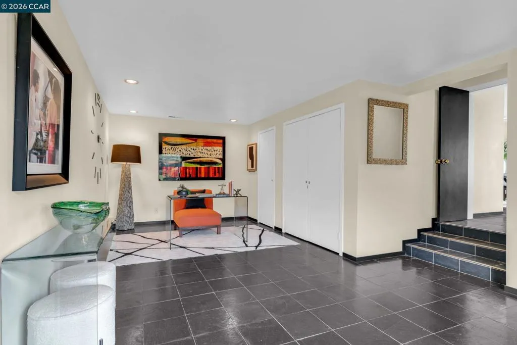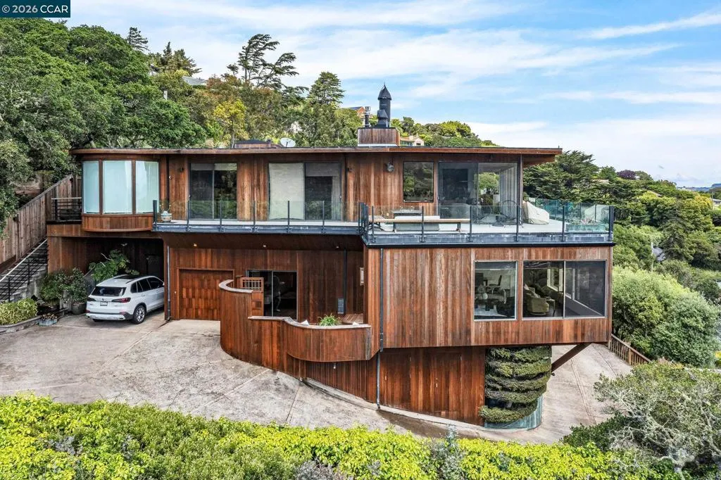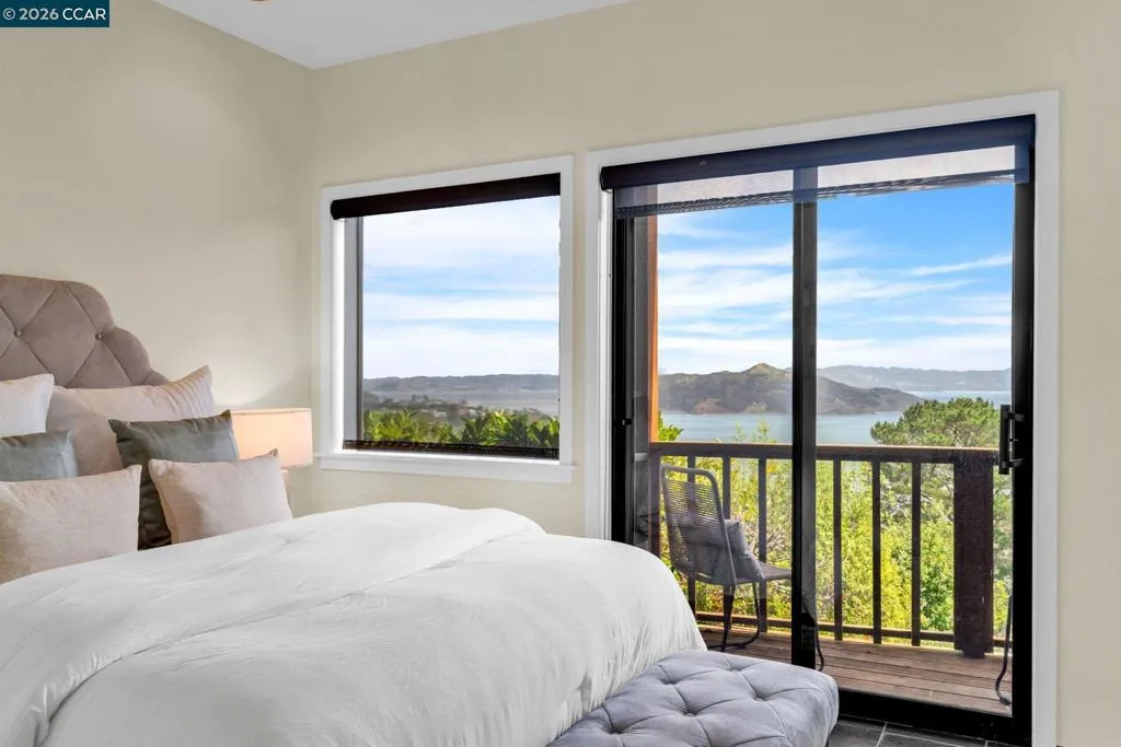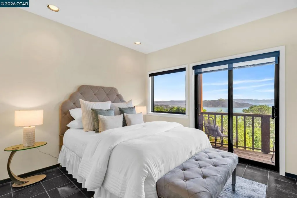 Sweeping views of San Francisco, the Bay Bridge, and Belvedere set the tone for a home defined by light, water, and perspective. This 2 bedroom, 2 bathroom residence offers approximately 1,774 square feet of single-level living, with an open floor plan that flows effortlessly between kitchen, dining, and living spaces—designed for easy living and relaxed entertaining. The bedrooms are efficiently designed, while the living spaces extend to multiple balconies and a private enclosed sitting area at the entry—perfect for taking in the views. An updated kitchen and baths, black slate flooring, and a wood-burning fireplace with a striking metal accent wall add warmth and modern character. Set in the hills of Sausalito, just moments from downtown, the home offers close proximity to waterfront dining—including The Trident—along with boutique shops, galleries, and outdoor recreation. A two-unit architectural building with no monthly HOA dues (shared expenses 50/50), plus an attached garage and additional outdoor parking. A lifestyle driven by views, design, and location.