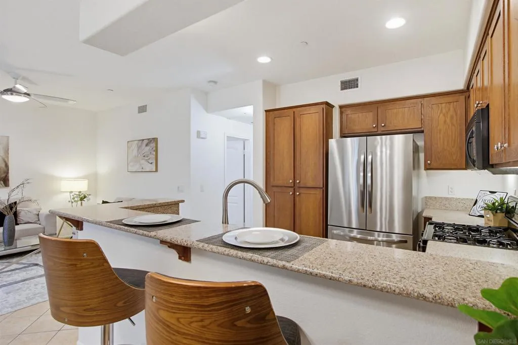 Welcome home to Tribeca. A gorgeous community in the heart of Kearny Mesa. Walk into a great room - open layout. It has a modern kitchen with a dine at counter, that is open to the dining and living room. The space is great for cozy nights at home or entertaining friends. Master bedroom is generously sized with a walk in closet. Stacked laundry closet right off the kitchen. It has a tandem 2 car garage downstairs, with direct access. Enjoy the community pool and spa just in time for Summer. Top it off it's centrally located, get to most of SD within 15 min. It's close to the frwy, great dining and shopping.