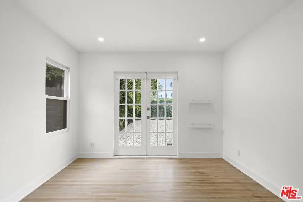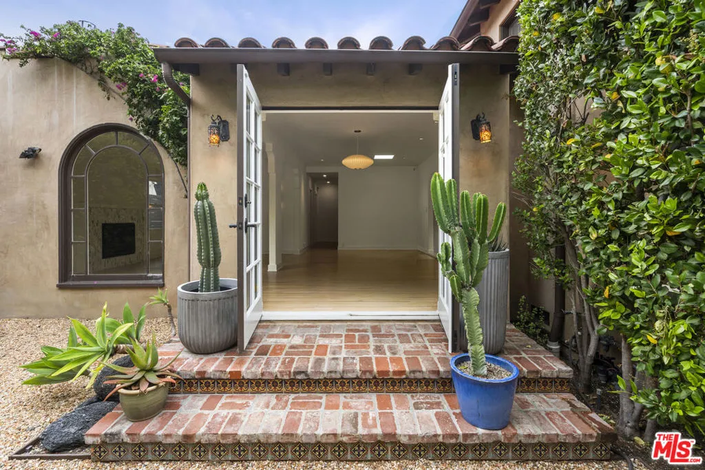 Quintessential Spanish with a modern twist, 3 bedrooms & 2 baths situated in prime West Hollywood West location (south of Rosewood at end of cul-de-sac) - exterior features include a Spanish tower entry, a carved wooden door, ornate tile work, soft arches, lush greenery allowing for ultimate privacy, a pebble stone courtyard allowing for indoor-outdoor living and off street parking. Interior features include large open living spaces, including barreled ceiling in formal living room, custom archways, hardwood floors, oversized windows allowing for dramatic sunlit days and romantic evenings filled with ambiance, skylights, Kelly Wearstler wall sconces and fireplace backsplash. Galley kitchen includes custom cabinets, quartz countertops, large picturesque windows, stainless steel appliances, additional under-counter integrated refrigerator / cooler, ample storage / pantry space, Miele stackable washer / dryer located in laundry closet off of kitchen. Minimalism bathrooms, spacious bedrooms, recessed lighting throughout, french doors in living space and both rear bedrooms, ample built-in storage / custom closet spaces in all bedrooms, heated floors in primary bedroom ensuite, central A/C, and security system. The owner reserves access to the ADU + one (1) adjacent parking space at property rear when intermittently visiting California. Tenant has access to driveway for off street parking. No pets allowed.