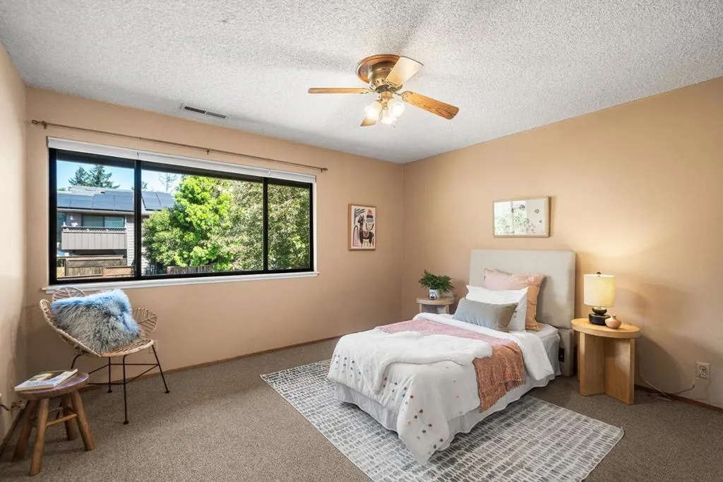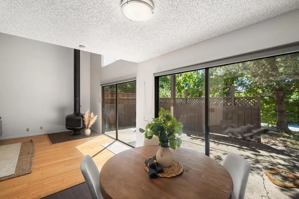 Sunflower Solarhouses in Scotts Valley is where comfort, convenience & lifestyle come together. Easy access to HWY 17 near the Granite Creek exit, this 3-bedroom townhome offers the perfect balance of commuter convenience and serene community living. Enjoy a well-maintained HOA & resort-style amenities: a newly remodeled pool, spa & outdoor BBQ area. Residents can reserve this community space for private gatherings. Inside, the home is filled with natural light thanks to dramatic, soaring two-story ceilings and south-facing windows that brighten the spacious living room. Once home to a professional chef, the kitchen includes a high-end Wolf range, ideal for everyone who loves to cook. The layout features three upstairs bedrooms, which overlook the main living space, creating an open and airy feel. The primary suite is bright and includes its own vanity sink and a private back deck. The backyard is spacious, and some neighbors have expanded the footprint, increasing the appearance and appeal. Others have added a bathroom and additional interior floor space. There is ample storage in the garage and adjacent storage room. This home is an excellent opportunity.