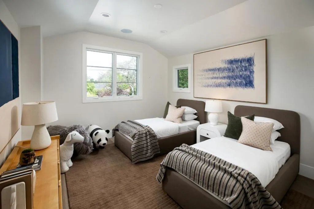 CREEKSIDE MODERN FARMHOUSE ESTATE IN NORTH LOS ALTOS | Completed in 2019, this tri-level custom estate offers modern Napa farmhouse style in a tranquil creekside setting near Shoup Park, just moments from Downtown Los Altos. Designed for both everyday living and large-scale entertaining, the home features a dramatic gallery staircase, expansive open living spaces, and a chefs kitchen with premium appliances and custom finishes. Six bedrooms are thoughtfully arranged across three levels, including a flexible guest or office suite on the main level and three ensuite bedrooms upstairs. The luxurious primary suite offers vaulted ceilings, a boutique-style dressing room, and spa-inspired bath. The lower level is an entertainers destination with a temperature-controlled wine cellar, theater, wet bar, and multiple lounge spaces. Outdoor terraces with built-in barbecue overlook lush grounds, mature trees, and the tranquil creekside backdrop. Minutes to downtown Los Altos, top-rated schools, Stanford, and major Silicon Valley employers.