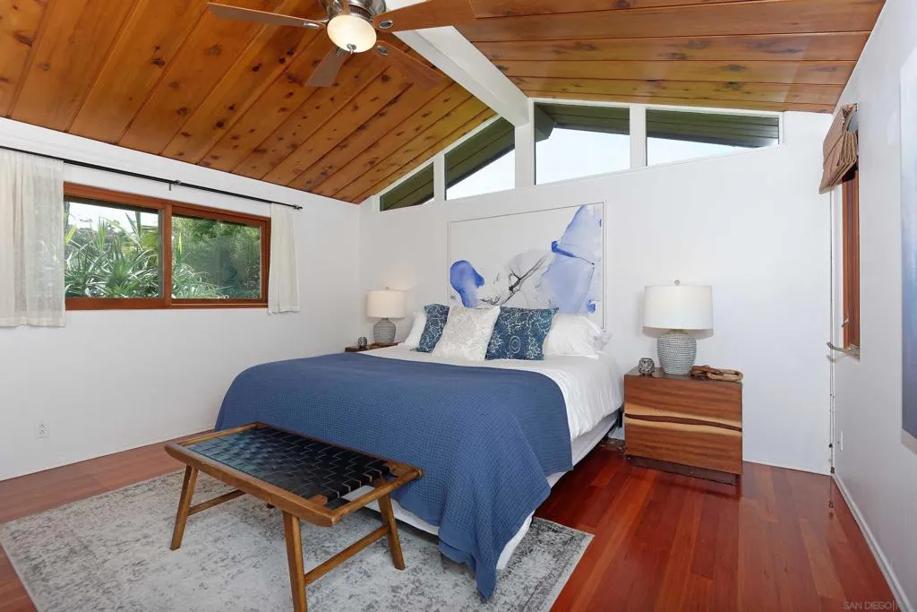 The right house in the right location—This gated and fully fenced two story four bedroom, four bath ocean view home of approximately 3083 square feet with pool is walking distance to Wind n Sea beach and La Jolla High School and Middle School. The floorplan is inspired with the second story devoted exclusively to the master suite including a study alcove and a luxe bathroom. Additionally, there is a sweeping ocean view from the bedroom and its second story balcony. As you enter the property and pass through the well landscaped grounds and a koi pond, you get that resort vibe that is so welcoming. There is a slate entry to the house along with wood flooring, an open kitchen, dining and family room and a more formal living room with fireplace. The center island kitchen boasts top of the line appliances by Viking, Dacor, Subzero, and Bosch, and has views of the garden which is accessible through many sets of French doors. There is a full-sized laundry room, three car garage, outdoor shower for the pool or for use after a day at the ocean. This might be just what you have been looking for. Come see for yourself.