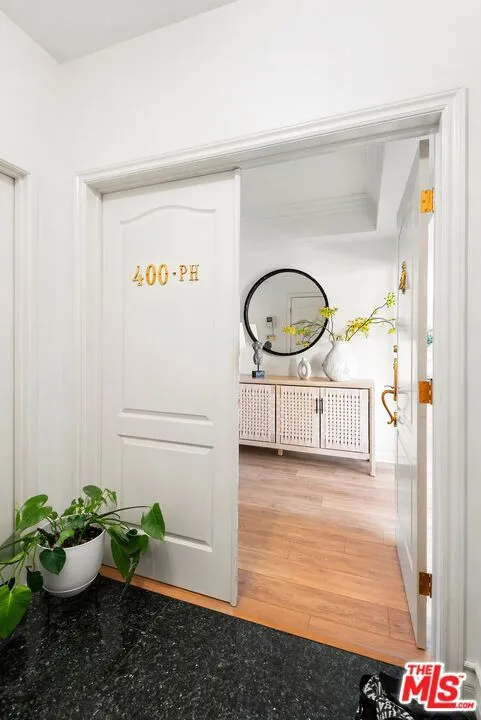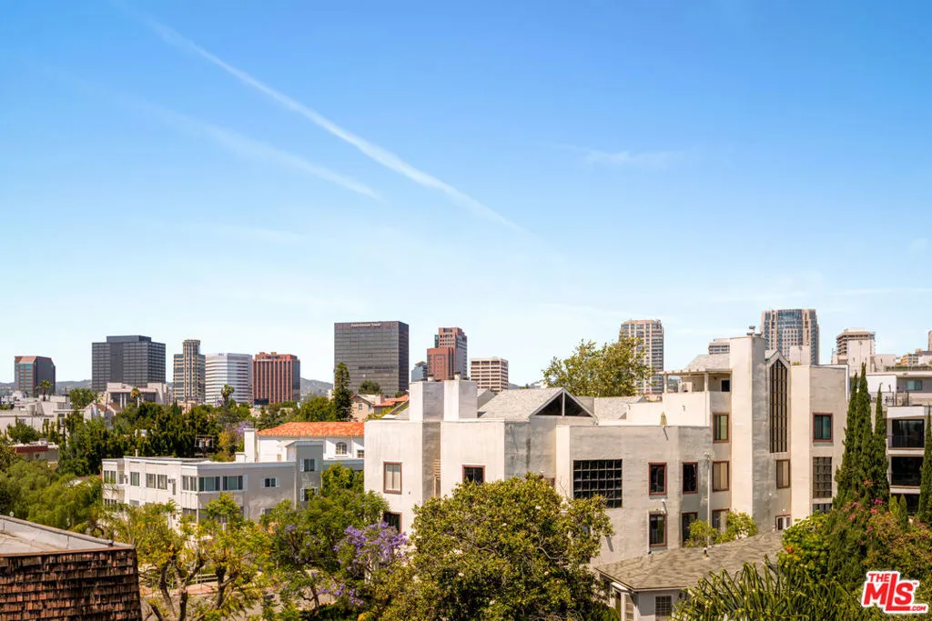 This unique penthouse occupies the entire top floor of a very well located condominium building in the heart of Westwood. The expansive 3 bedroom, 2.5 bath residence offers exceptional privacy, scale, and sweeping wraparound city views. With exclusive direct, key-controlled elevator access opening into its own private foyer, the home lives like a true sanctuary flooded with natural light from every angle. From the foyer, a gracious double door center entryway invites you into this exceptional unit that features no common walls and windows on all sides. Spanning approximately 2,240 square feet with the addition of four balconies, the thoughtfully updated interior features new flooring, oversized bedrooms and abundant storage. The living room expands through glass doors onto a spacious balcony. The full-sized dining room also has a balcony and room for entertaining large parties. The versatile den with fireplace and built-in bookshelves provides the perfect space for a home office or additional living area. The chef's kitchen features stainless steel appliances and a double oven. The primary suite has a spa-like bathroom and a walk in closet. There is a spacious utility/laundry room. Four large balconies significantly expand the living space, creating seamless indoor-outdoor flow and maximizing the home's open very bright ambiance. The residence is located in the highly sought-after Fairburn Avenue School District and is just moments from Beverly Hills, UCLA, and the 405. The unit includes three assigned parking spaces in a gated garage, a rare and valuable amenity in this prime location. Enjoyment of the rooftop deck is a bonus. A truly exceptional opportunity to own a private, light-filled penthouse occupying the entire top floor in one of Westwood's most desirable neighborhoods.