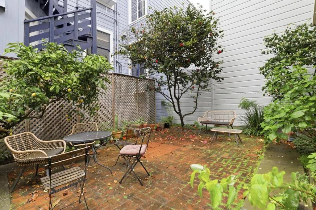 Steps from the Panhandle and just moments to Golden Gate Park, this beautifully updated 1913 San Francisco condo blends timeless character with modern functionality in the heart of NOPA. One of only two residences, the home offers a well-designed layout with a sense of privacy and comfort. Warm hardwood floors lead into a bright living room centered around a classic wood-burning fireplace. A formal dining room provides an elegant space for hosting, while the updated kitchen features granite countertops, stainless steel appliances, and ample cabinetry. Period details preserve architectural charm while integrating modern upgrades. The spacious primary bedroom opens to a private deck overlooking a shared backyard with a brick patio and mature camellia treesideal for relaxing or entertaining. A well-proportioned second bedroom offers flexibility for guests or a home office. Additional highlights include a remodeled full bathroom, updated half bath, in-unit laundry, one-car garage parking, and generous storage. Wide sidewalk frontage enhances accessibility. Enjoy close proximity to cafes, restaurants, boutique shopping, and nightlife, all while surrounded by iconic green spaces. A rare opportunity to own San Francisco charm in the historic Panhandle district
