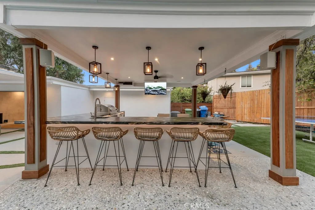 Perched atop prestigious Don Juan Place at the end of a quiet cul-de-sac just south of Wells Drive, sits this remarkable one-of-a-kind contemporary masterpiece, offering the ultimate in privacy and pure serenity. The interior is absolute architectural splendor, with an extraordinary open floor plan boasting European oak floors, gorgeous smooth stucco fireplaces, sophisticated lighting, and amazing skylights. This exquisite estate also features smart technology lighting, a gorgeous formal dining room, a sprawling master suite with his-and-her custom closets, and a gourmet chef kitchen with top-of-the-line Viking appliances, quartzite countertops, and pristine white oak cabinets. Slide open either of the dramatic La Cantina accordion doors to marry interior and exterior living spaces with truly graceful flow into the enchanting entertainer’s backyard complete with a brand new charming gazebo and impressive stainless steel BBQ area. The entertainer's yard is spectacularly immaculate with turf lawn, basketball court, lush putting green, vibrant landscaping, massive saltwater pool with Baja step, barstools and adjoining Jacuzzi, built-in state-of-the-art speaker and home security system, and a romantic subterranean gas-controlled fire pit. This A+ high-end luxurious contemporary entertainer’s dream home will not last. Also available furnished for $13,500/month