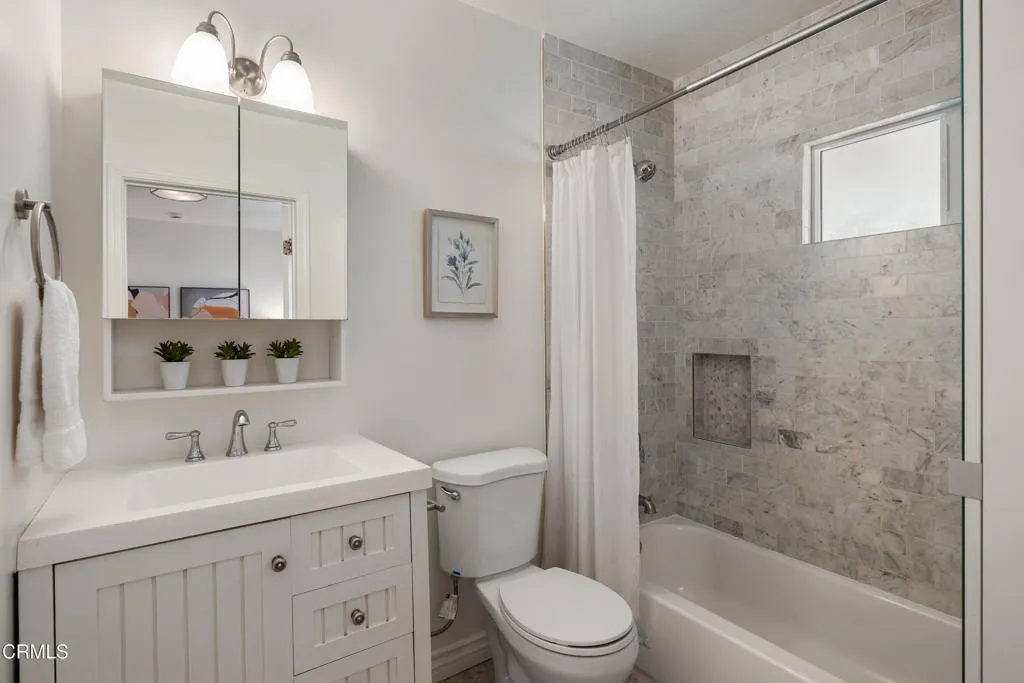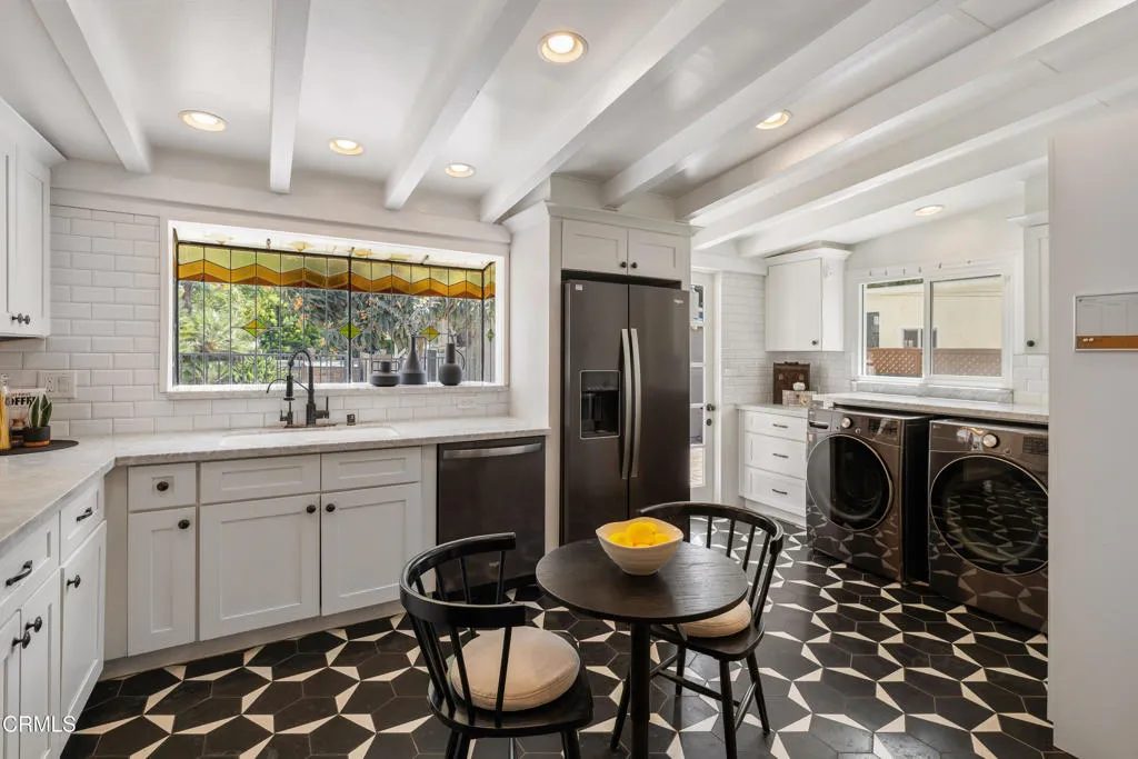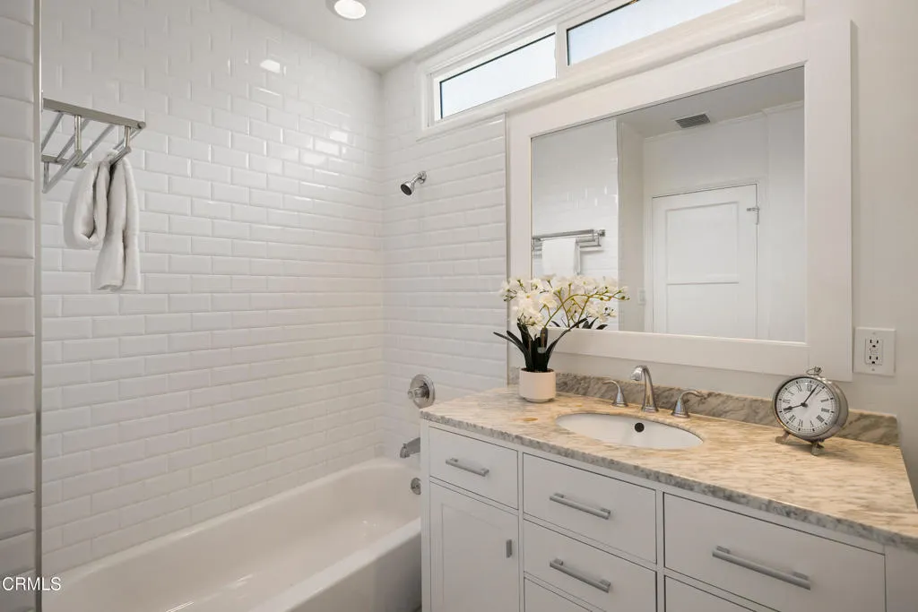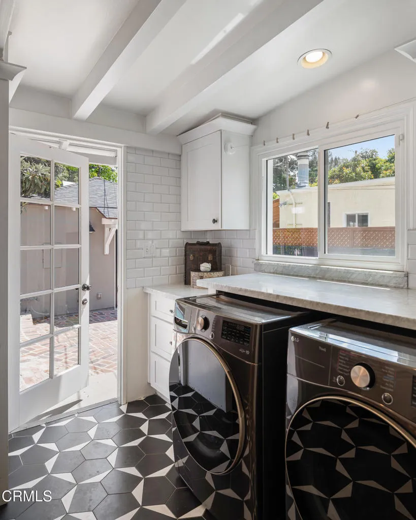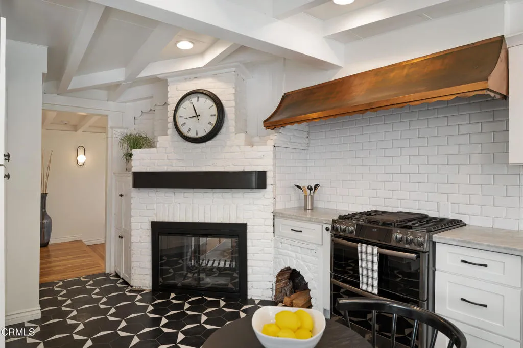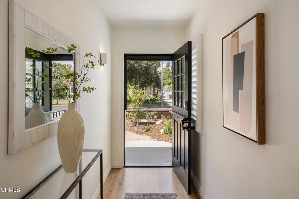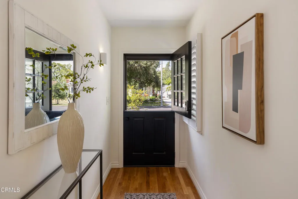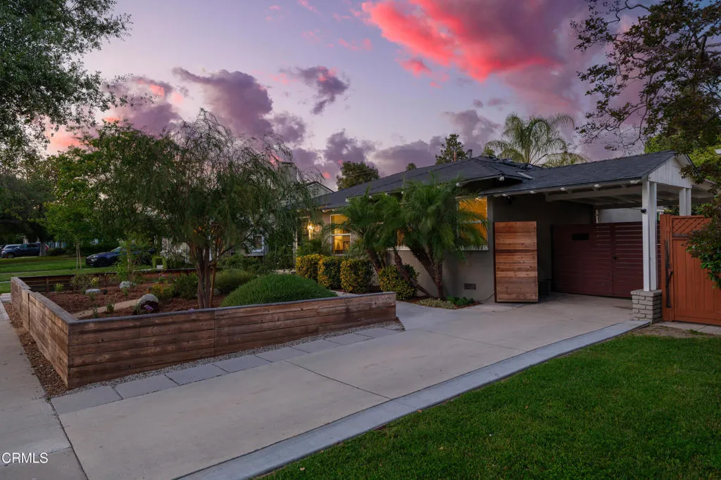 Set on a charming tree-lined street in the heart of Burbank, just moments from the studios, local parks, the Chandler bike path, and the shops and dining along Magnolia Boulevard, this beautifully updated 3-bedroom home offers style, comfort, and versatile living. Entering through a welcoming Dutch door, newly refinished hardwood floors lead into an expansive living space that seamlessly flows into a sun-filled, glass-enclosed family room with skylights. A custom-tiled fireplace with a stylish hearth anchors the main living area, creating a warm and inviting atmosphere. The updated kitchen is thoughtfully designed with tile flooring, stone countertops, a subway tile backsplash, and a stainless steel appliance suite. A standout feature is the custom copper hood above the five-burner range, complemented by abundant cabinetry and recessed lighting. A convenient laundry area with side-by-side front-loading washer and dryer is also located within the kitchen. The primary suite offers a comfortable retreat with wood-louvered shutters and a walk-in closet complete with built-in shelving and drawers. The ensuite bathroom features penny-tile flooring, a single-sink vanity, and a tub and shower combination with custom tile extending to the ceiling. Two additional bedrooms are well-sized and feature crown molding and charming coved ceilings. One includes a walk-in closet with built-ins, while the other offers ample closet space. A centrally located full bathroom serves these bedrooms and includes tile flooring, a stone countertop vanity, a tub and shower combination with subway tile surround, recessed lighting, and clerestory windows for natural light. Just outside the kitchen is a private backyard designed for both relaxation and entertaining. A brick patio and artificial turf area provide space for dining and play, while the gated pool area and a permitted covered patio offer a true outdoor retreat. Adding exceptional value is a fully permitted detached ADU, complete with wood-like flooring, a kitchenette with cabinetry, a refrigerator, and a bathroom featuring a walk-in shower with river rock flooring and tile to the ceiling. Sliding doors open to the pool deck, and a mini-split air-conditioning system ensures year-round comfort. This turnkey property combines classic charm with modern updates in one of Burbank's most desirable locations.